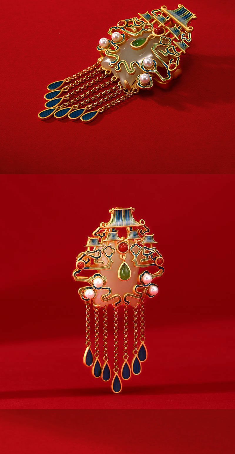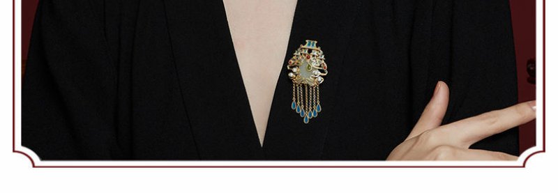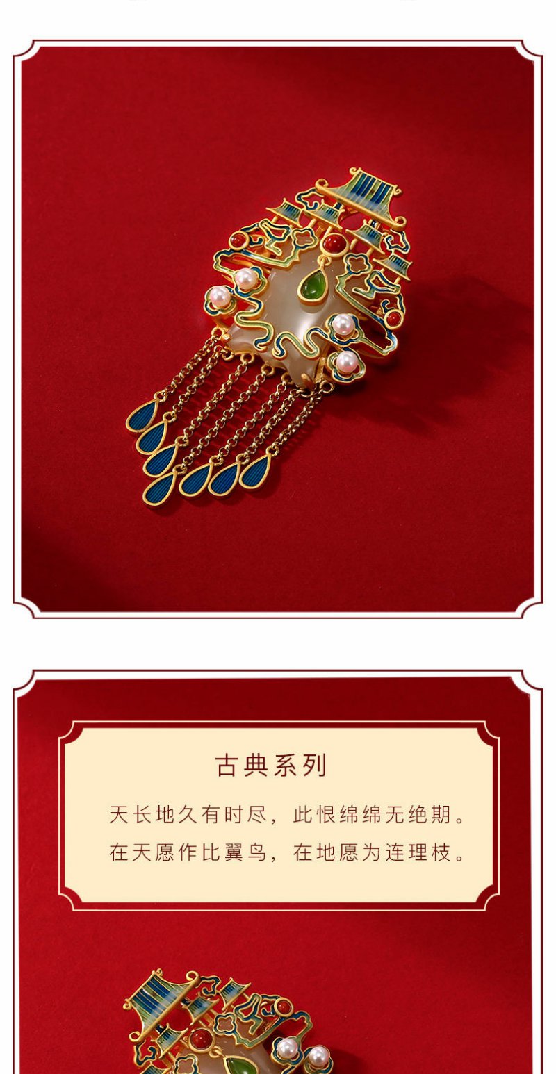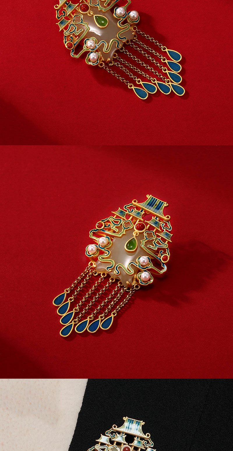 天然和田玉南天门胸针镶S925纯银复古流苏胸花奢华冷珐琅胸针饰品