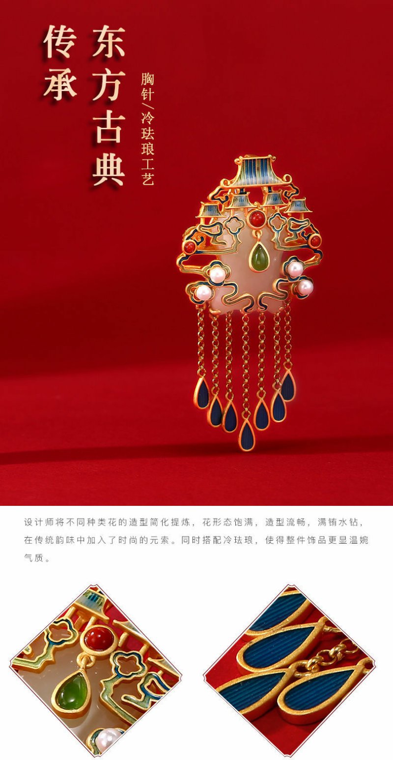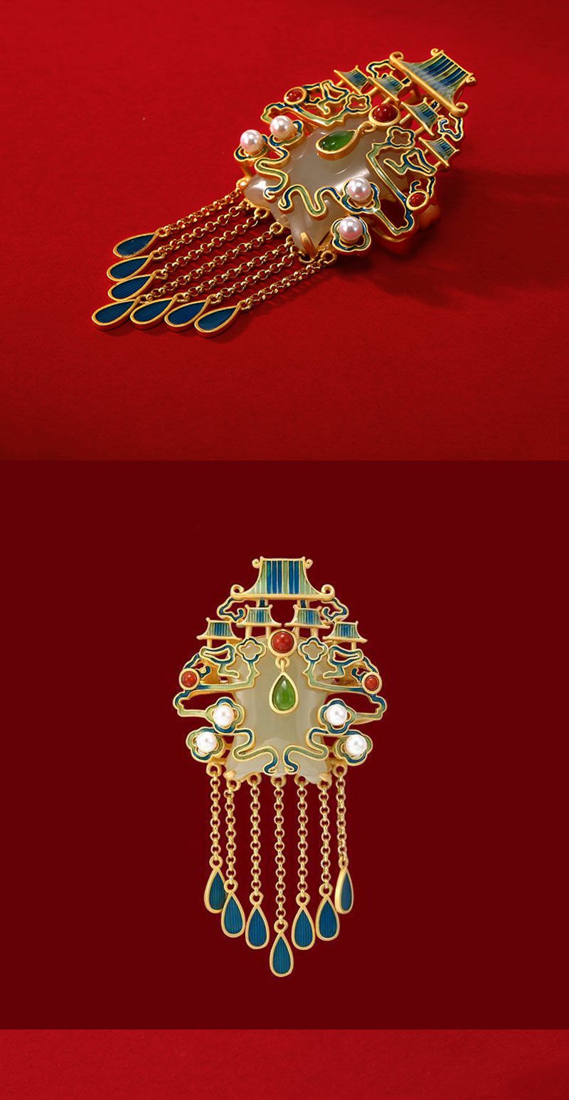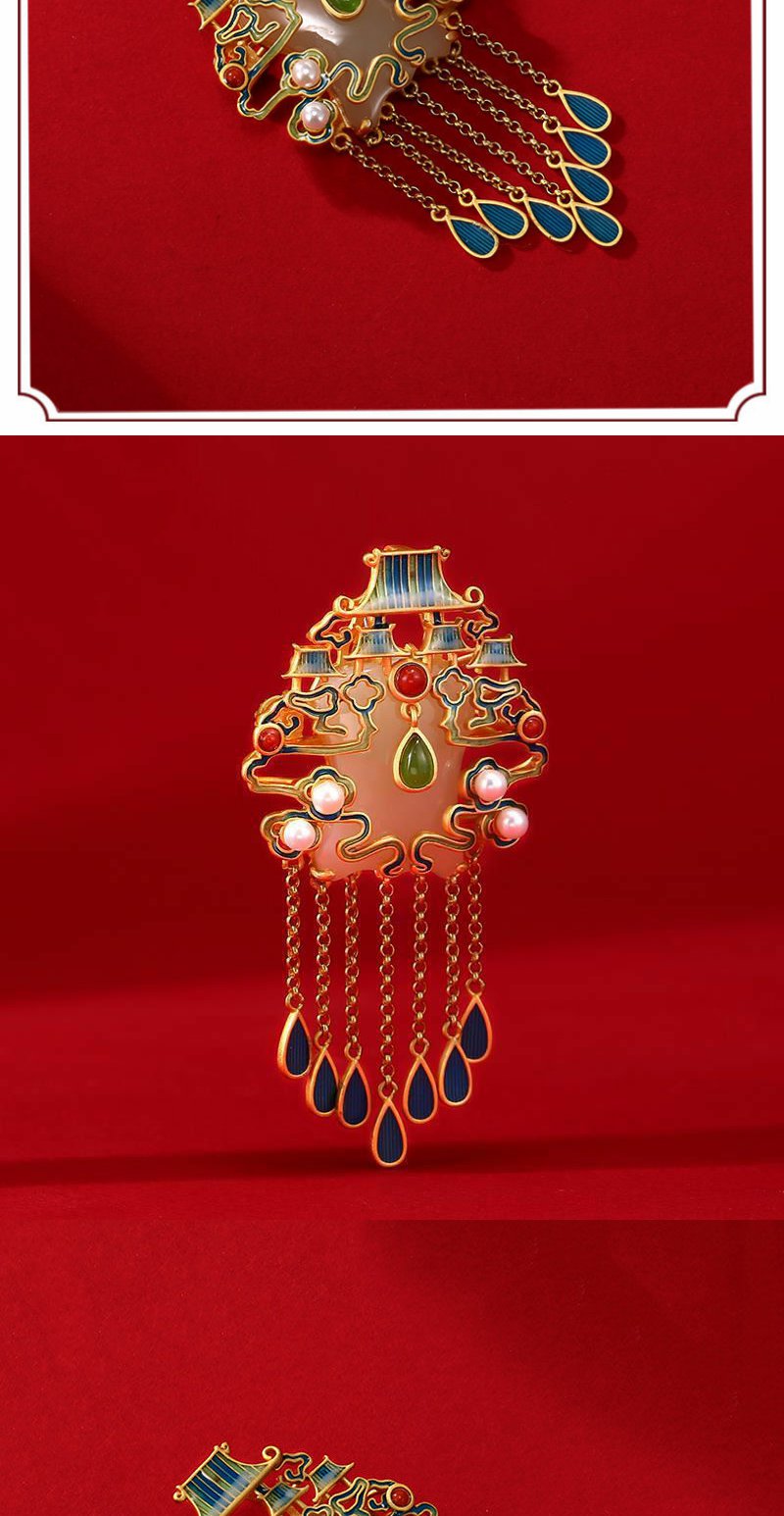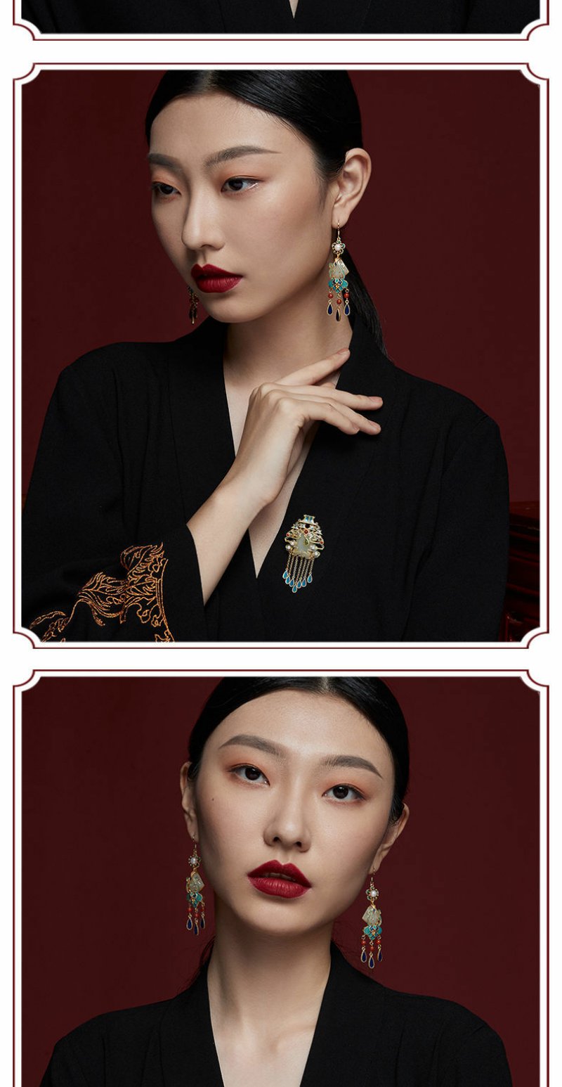 天然和田玉南天门胸针镶S925纯银复古流苏胸花奢华冷珐琅胸针饰品