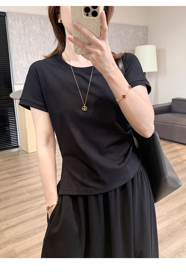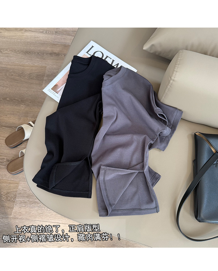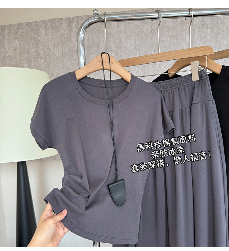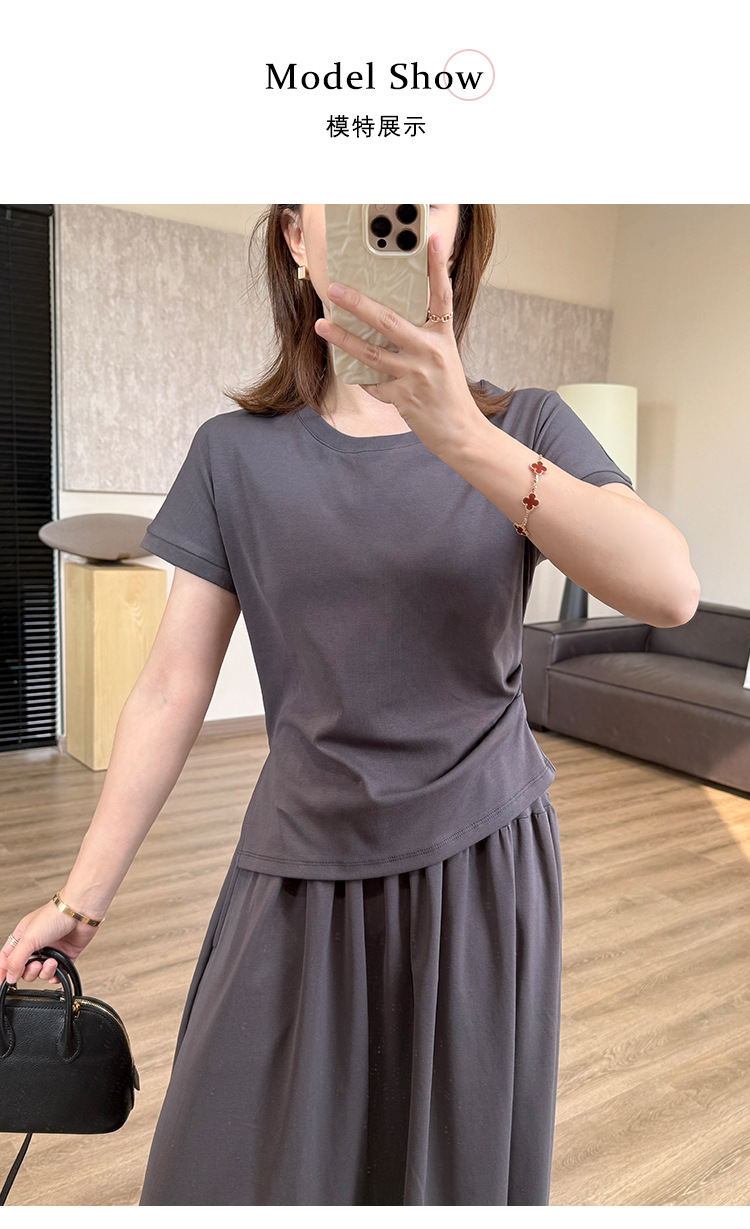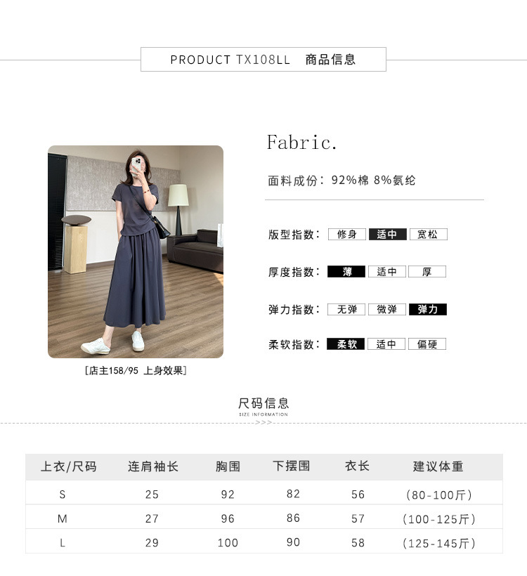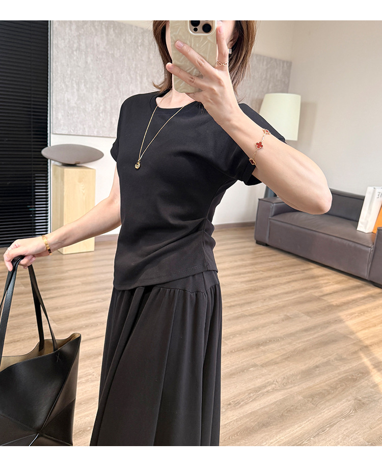 重塑腰线松弛套装裙!2025遮肉收腰开叉短袖T垂感口袋A字裙T裙