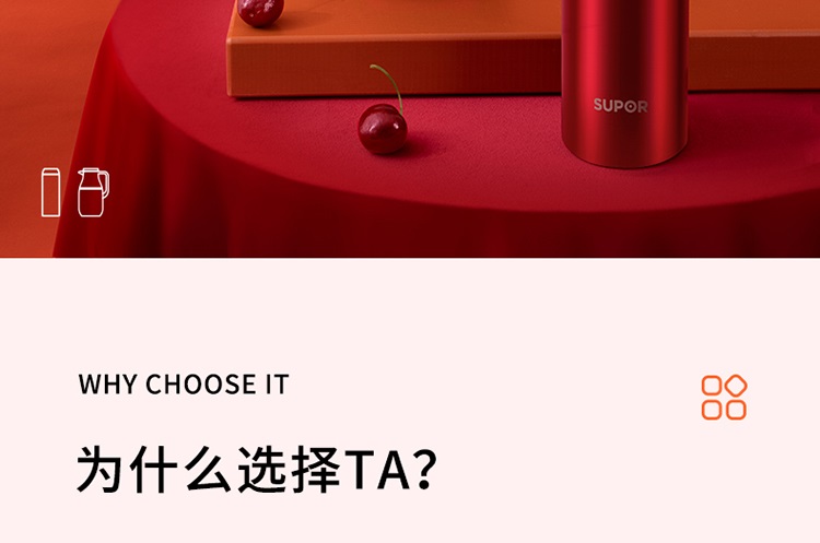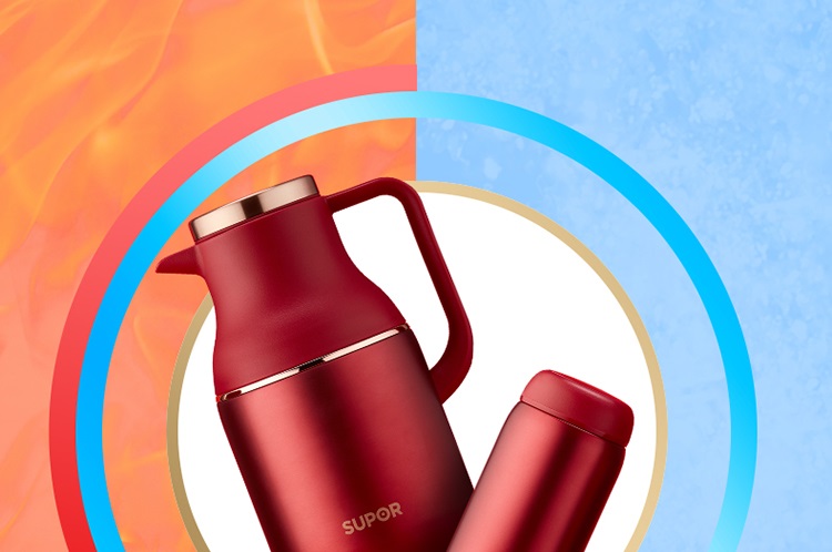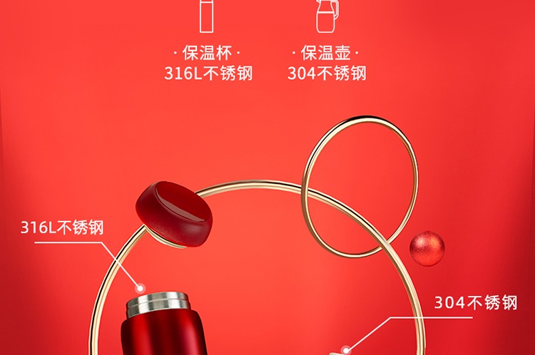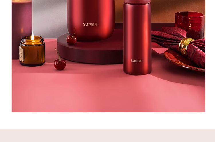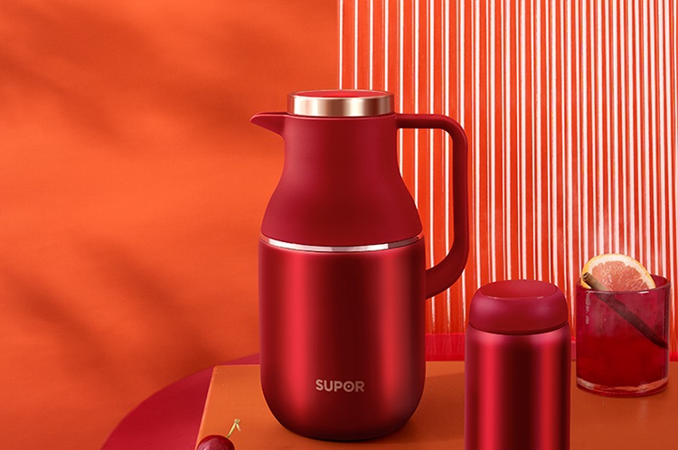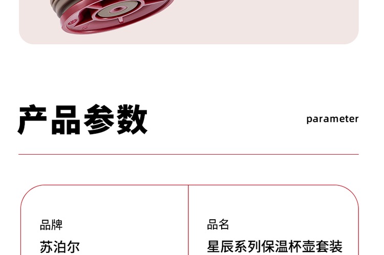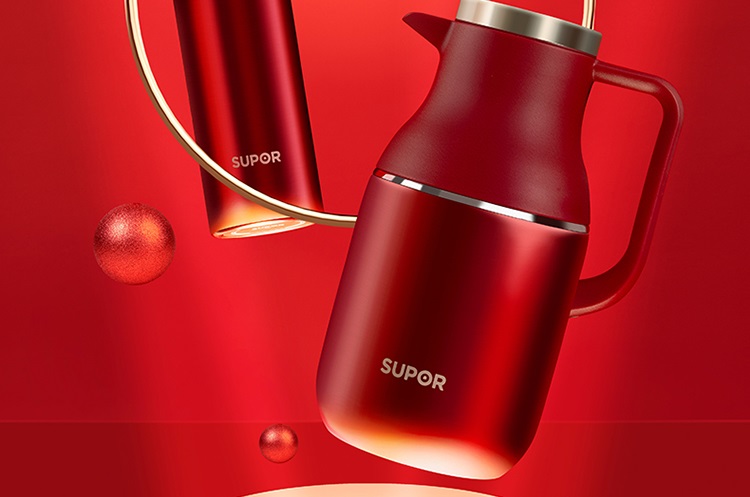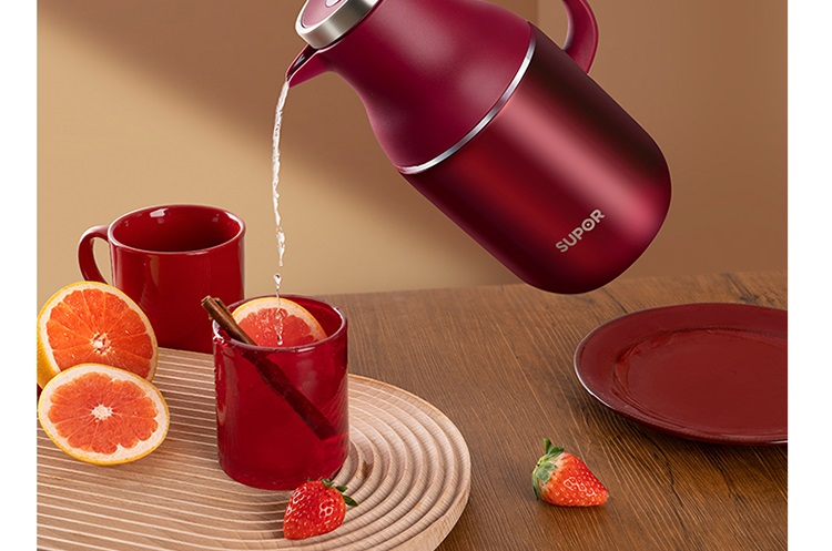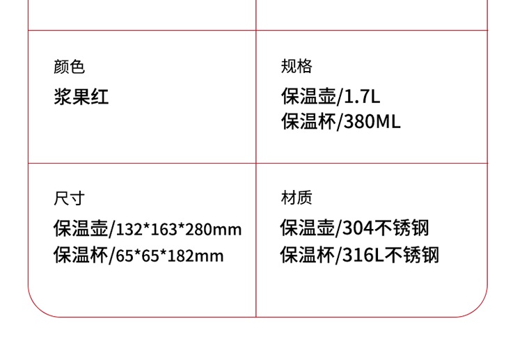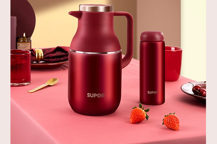 苏泊尔(SUPOR)家用暖水壶大容量热水开水暖瓶 304不锈钢真空保温壶套装 1.7L+380ml 星辰红TK2058Q