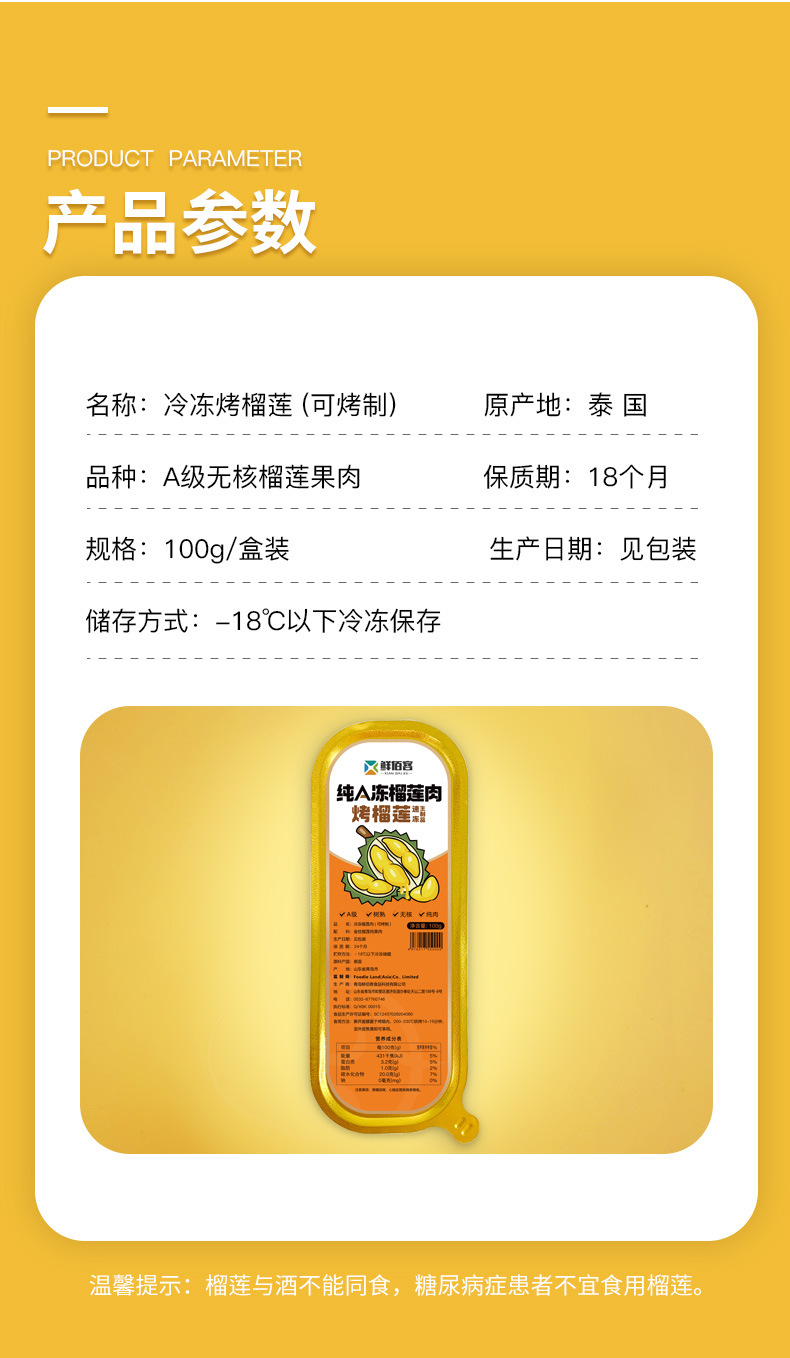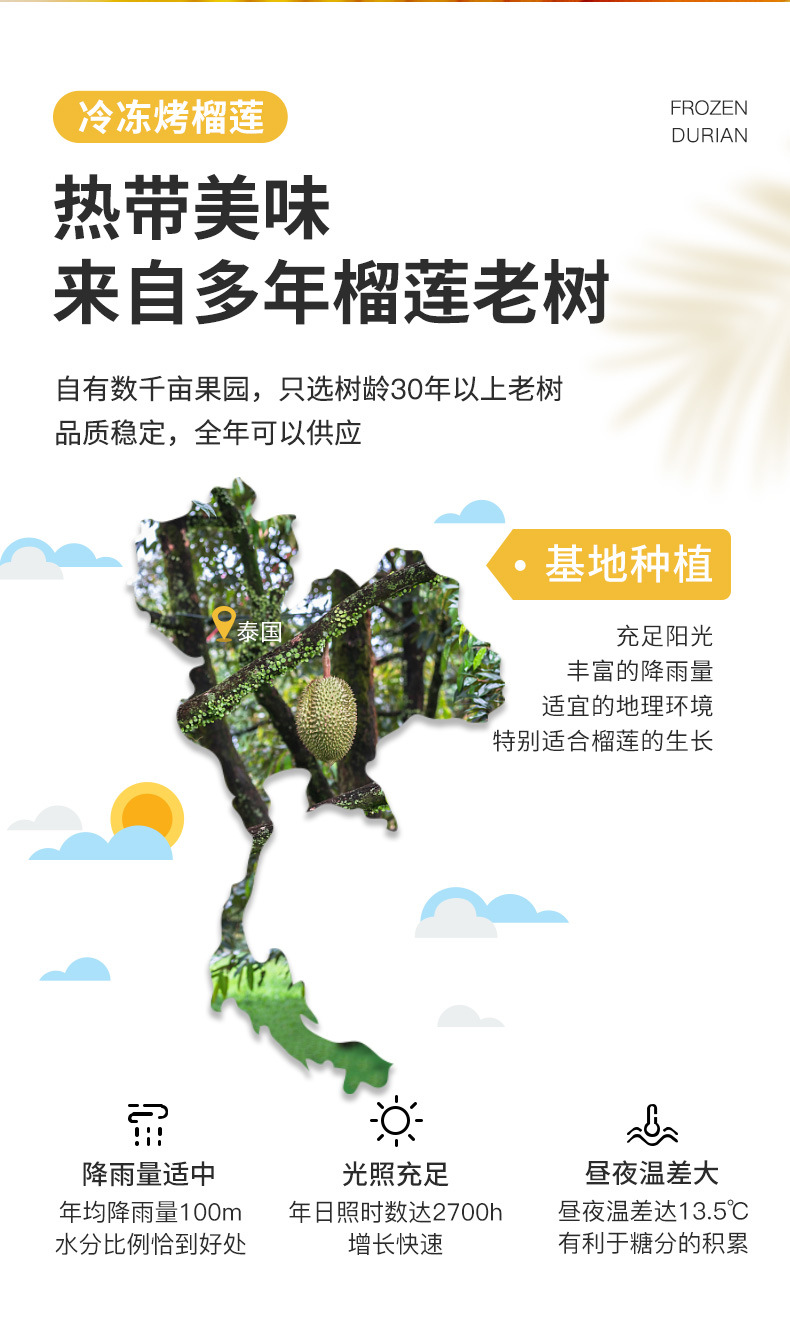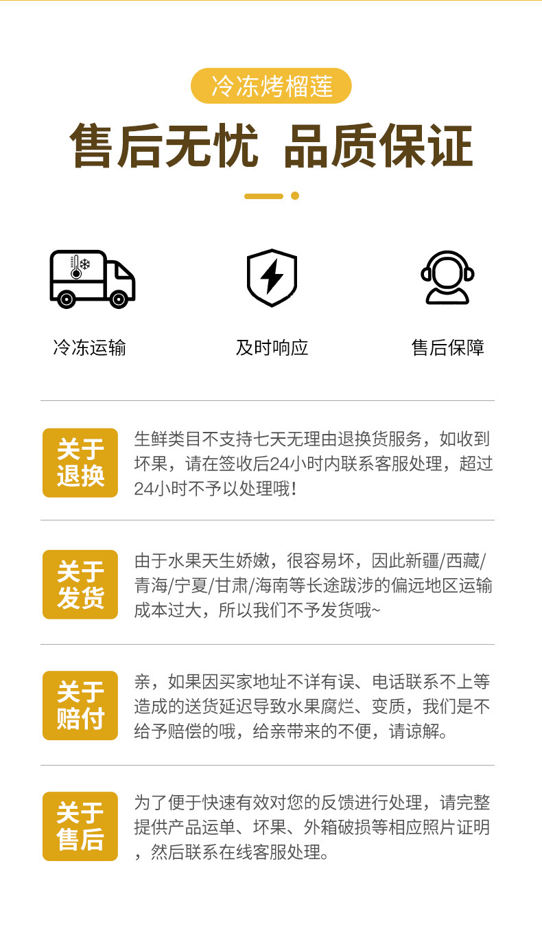 泰国金枕头冷冻榴莲原味烤榴莲网红小金条顺丰冷链发货