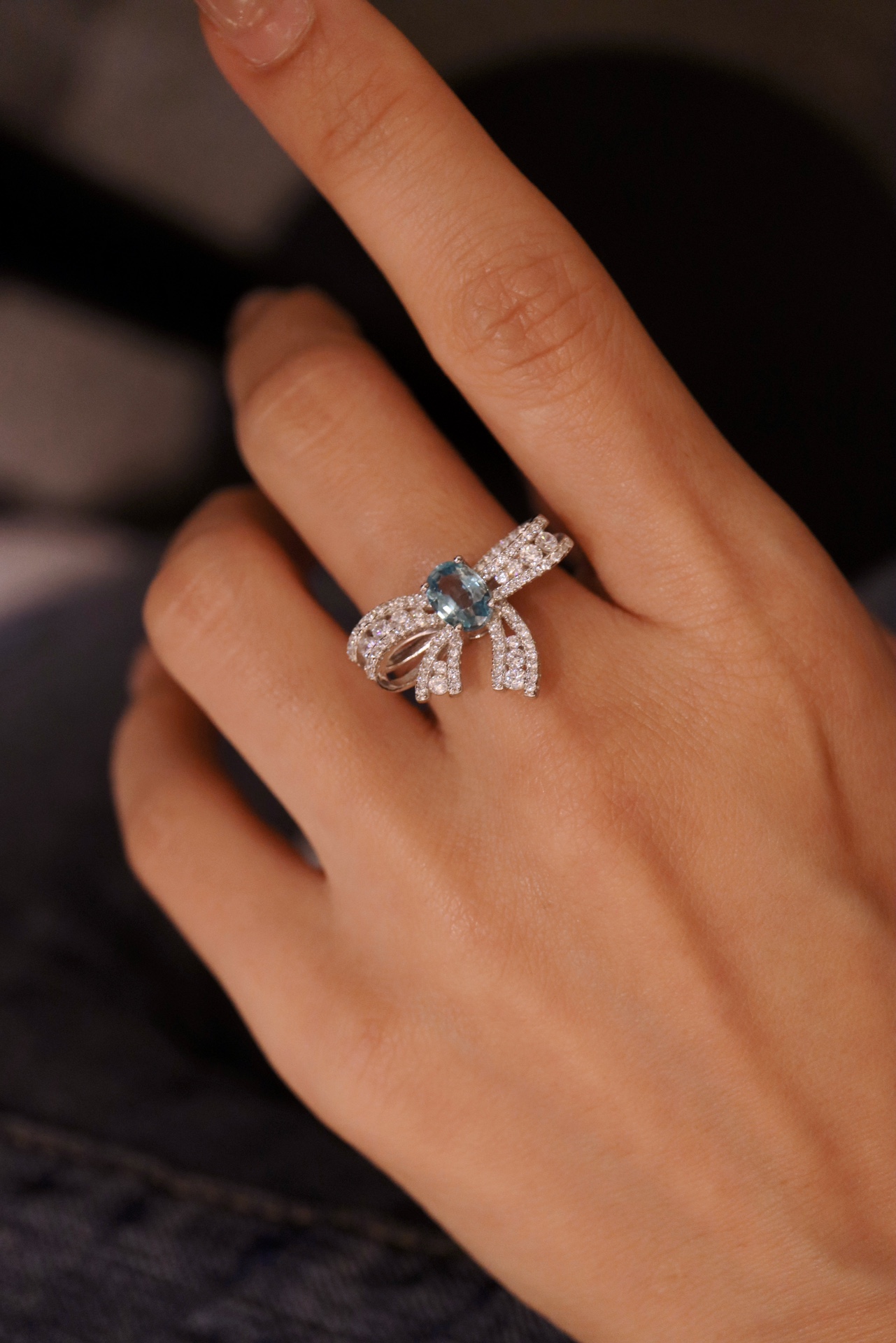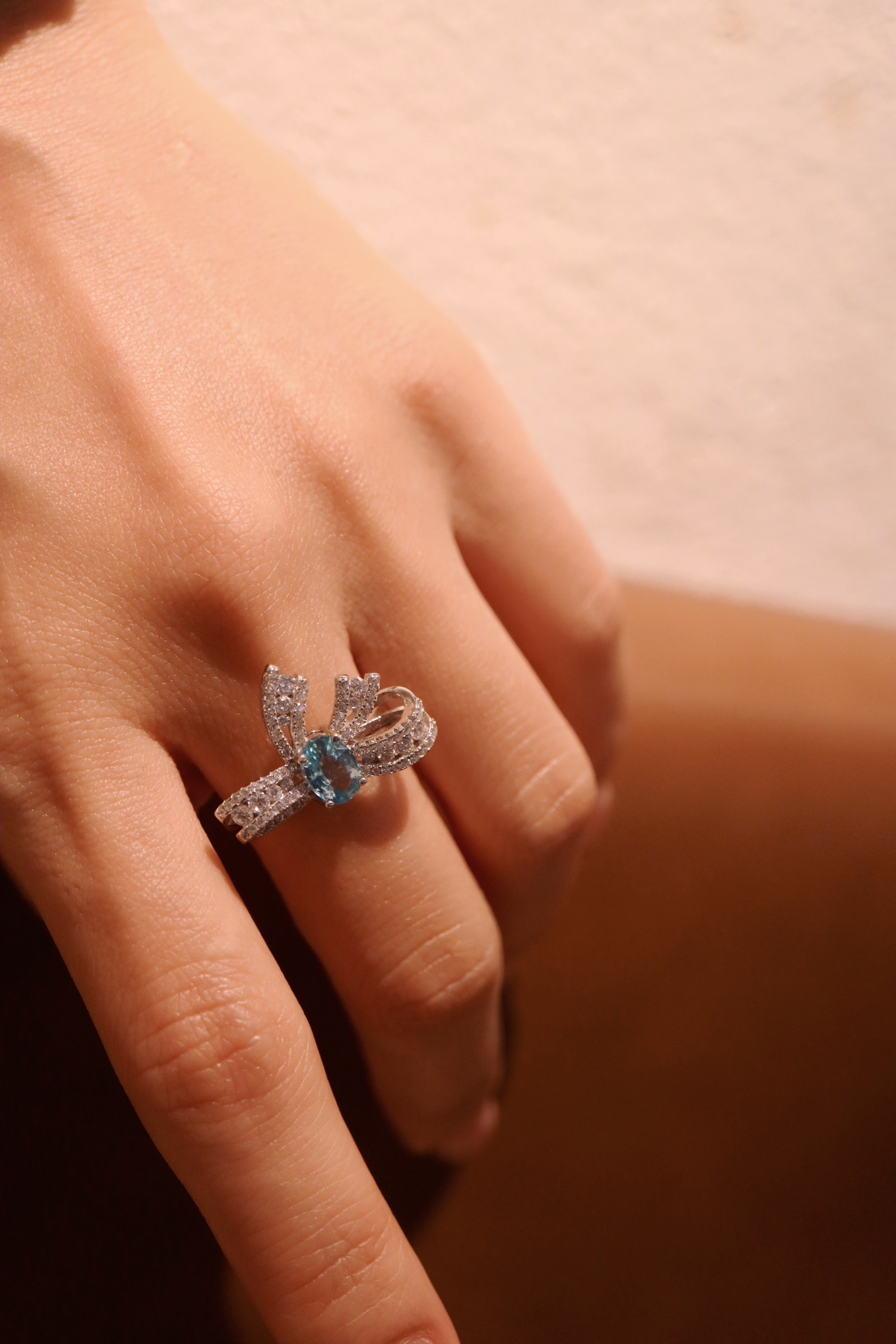 象征成功的风信子石,属于地球古老的宝石之一。925纯银镶嵌蝴蝶结奢华款,主石1.2克拉左右