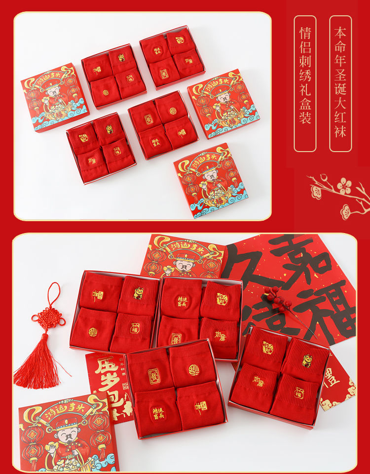 【纳福开运❗️国潮鸿运年袜礼盒装】新年蛇年限定,过年就得穿年袜❗️高颜值男女圣诞袜情侣袜套装,春节本命年大红色转运袜子,贴合不勒脚不磨脚年货七夕伴手礼父亲节礼物新年礼盒年货礼盒