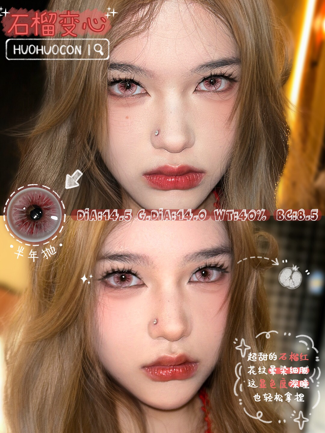 混血款 HUOHUOCON 半年抛 石榴变心 直径14.5/染色14.0 商品图0