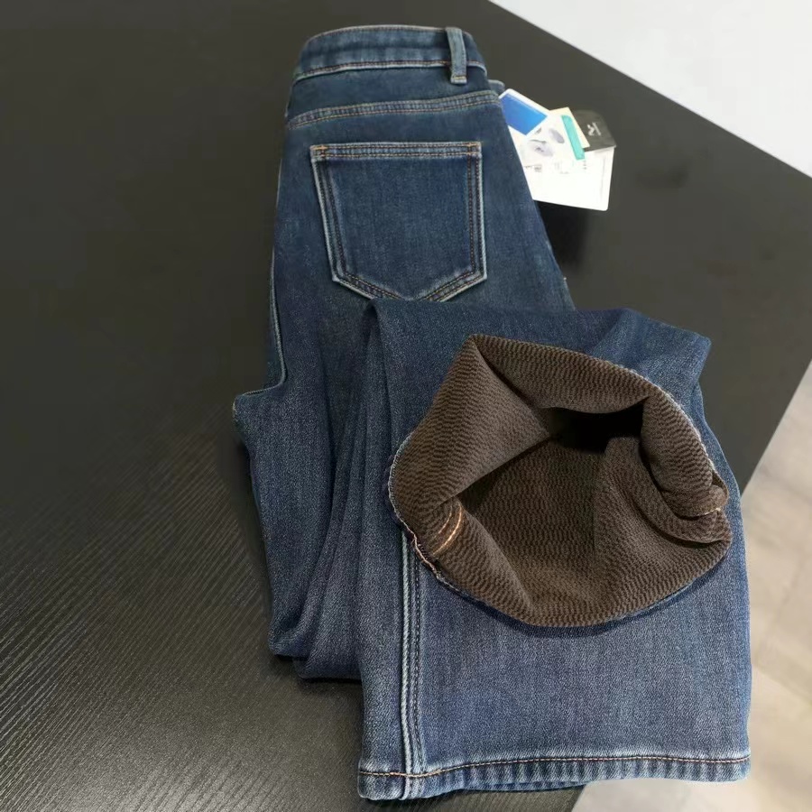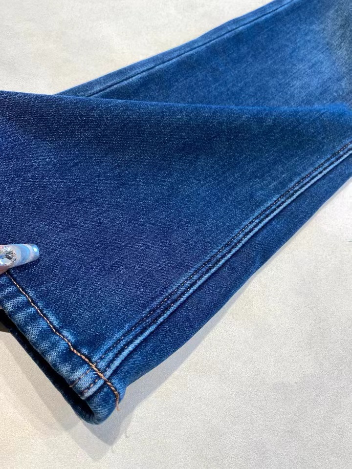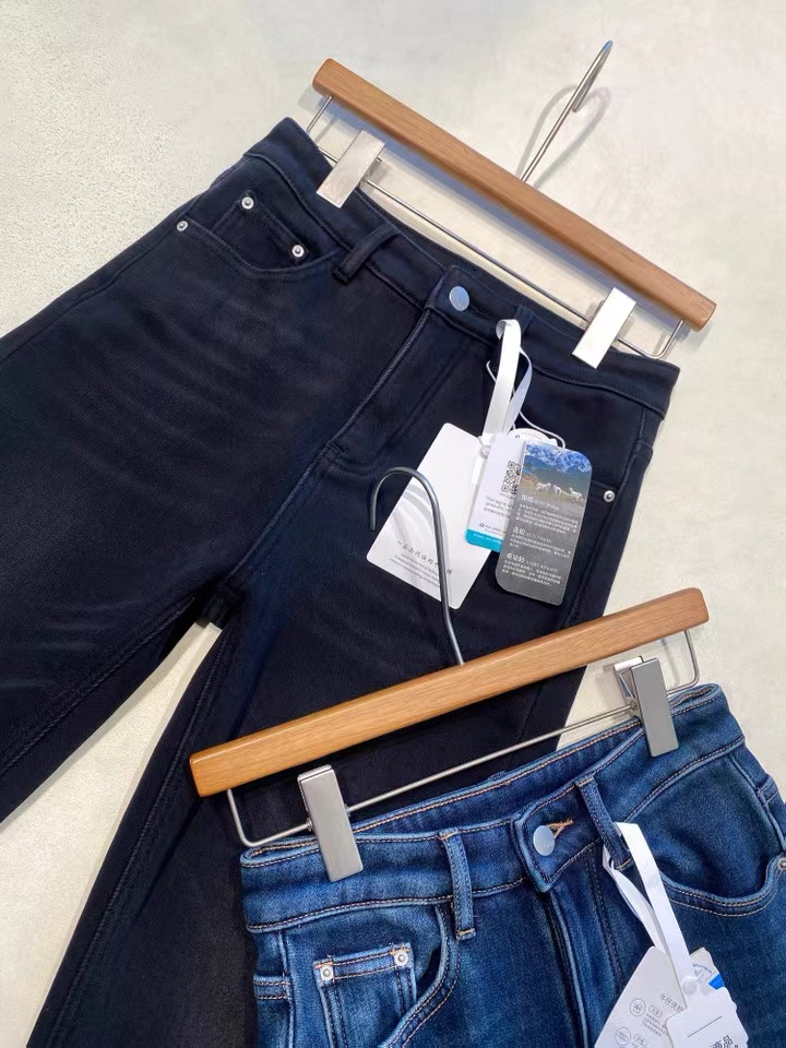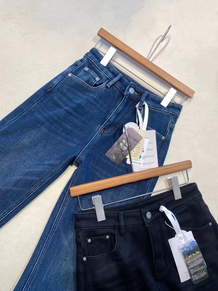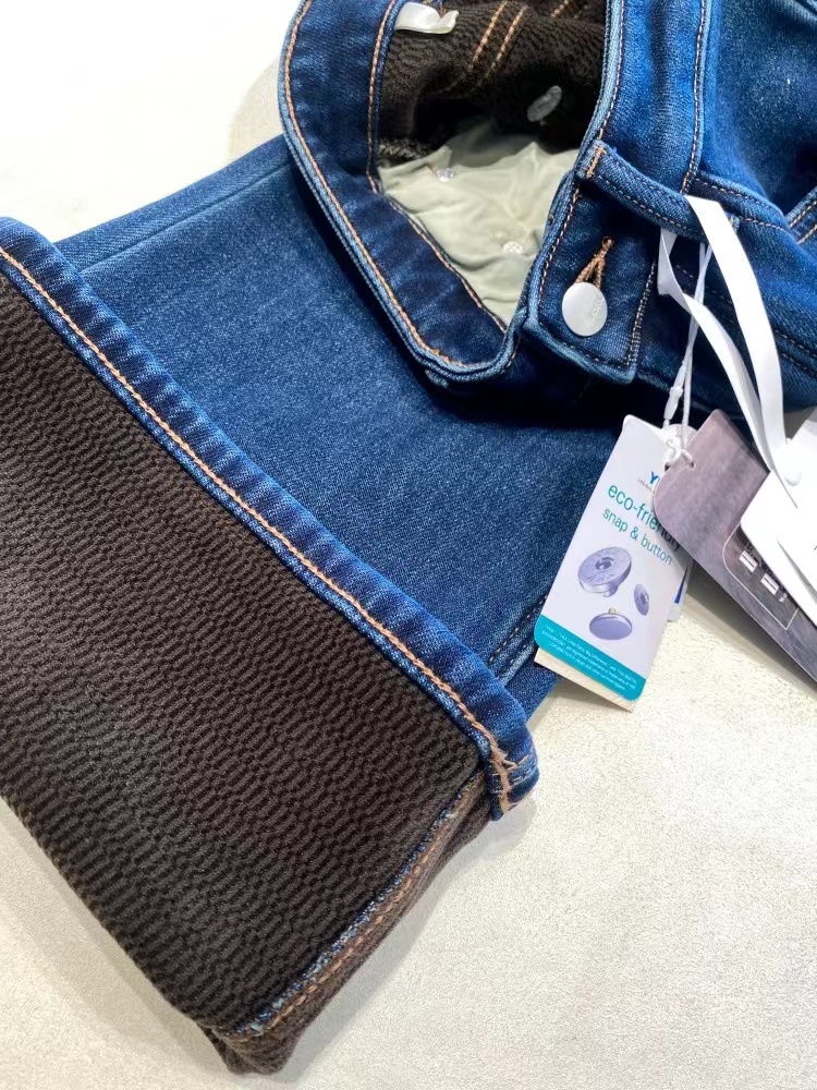 垂坠感强 久坐不易起皱面料厚度丸荃可以一条过冬!上身完全不怕臃肿,wan荃看不出是加绒的裤子!牛仔裤的工艺细节展现精湛做工侧缝包边,内缝双针走线纽扣,拉链都选用YKK品pai正品辅料经久耐用,而且拉合顺畅~面料/Fabric