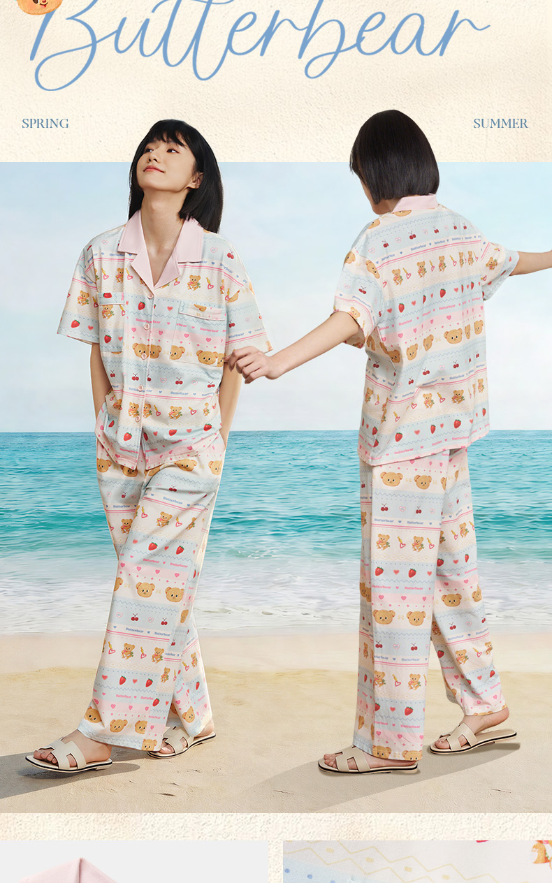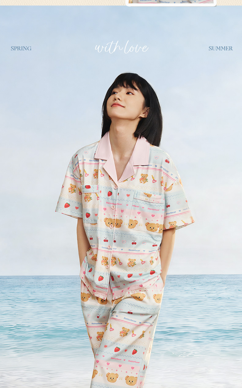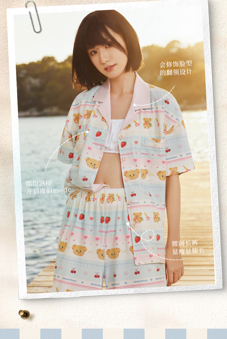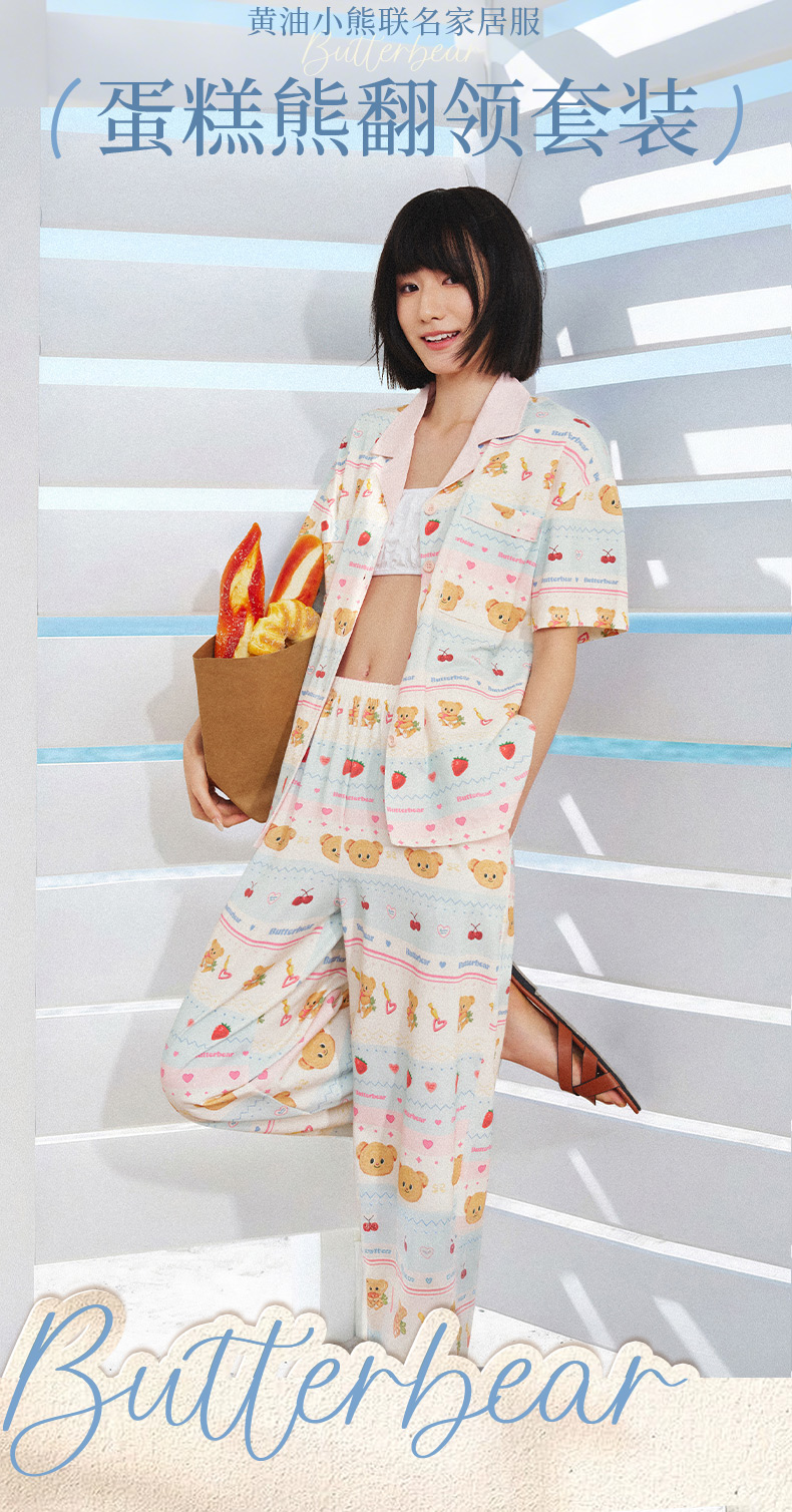 奶糖派夏季睡衣女短袖黄油小熊联名蛋糕熊海边凉感休闲家居服套装