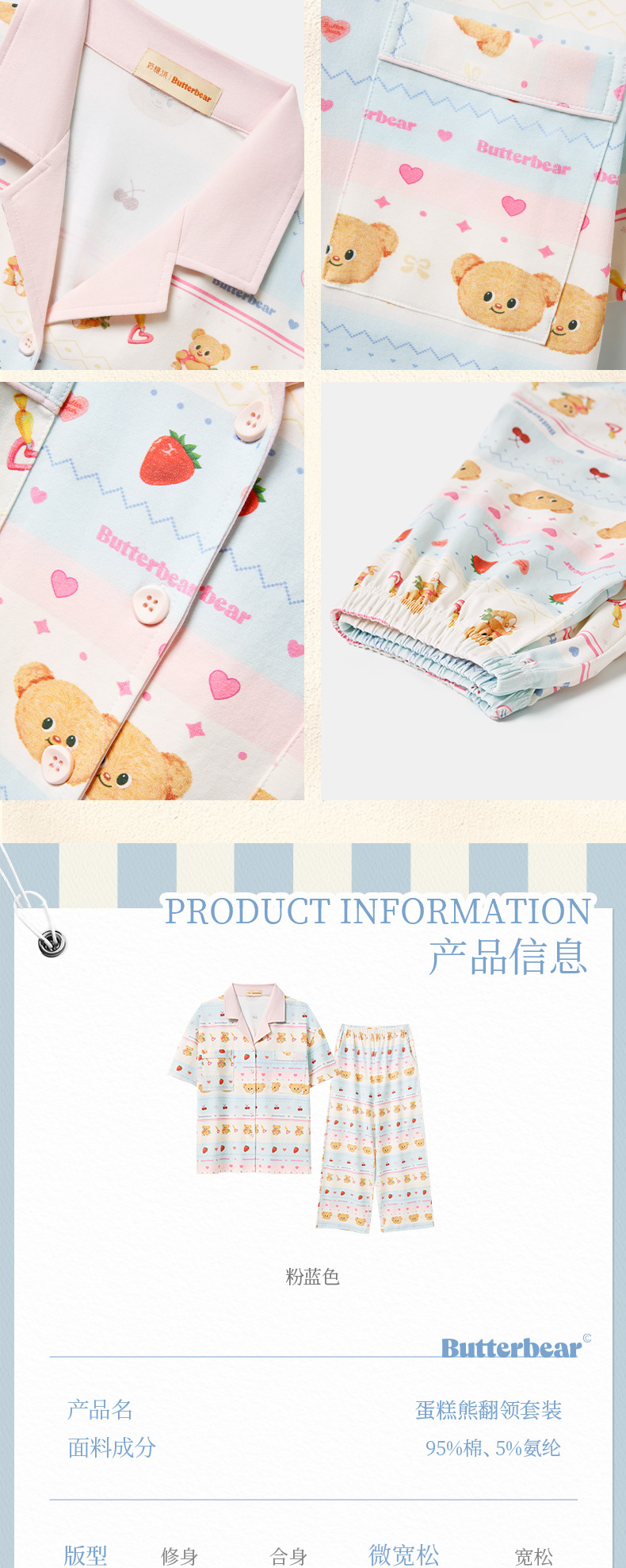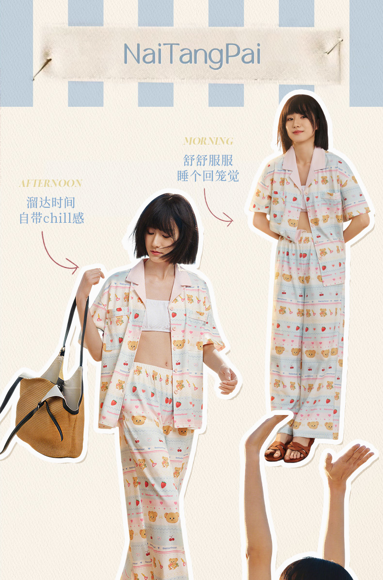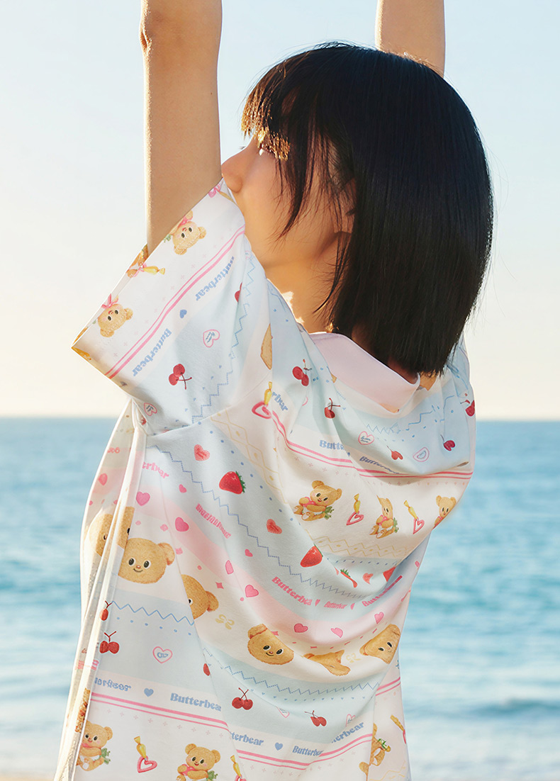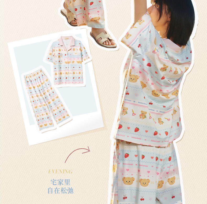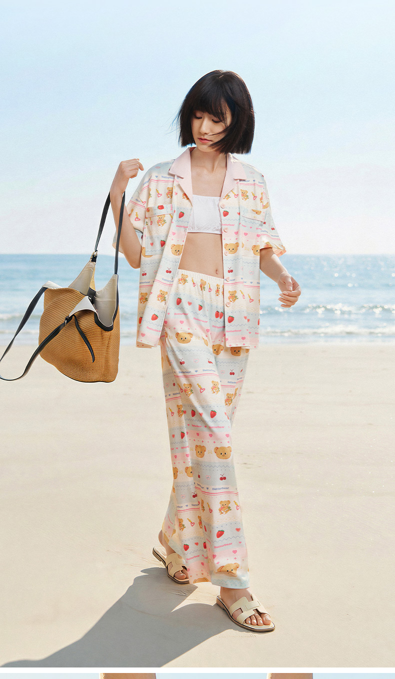 奶糖派夏季睡衣女短袖黄油小熊联名蛋糕熊海边凉感休闲家居服套装