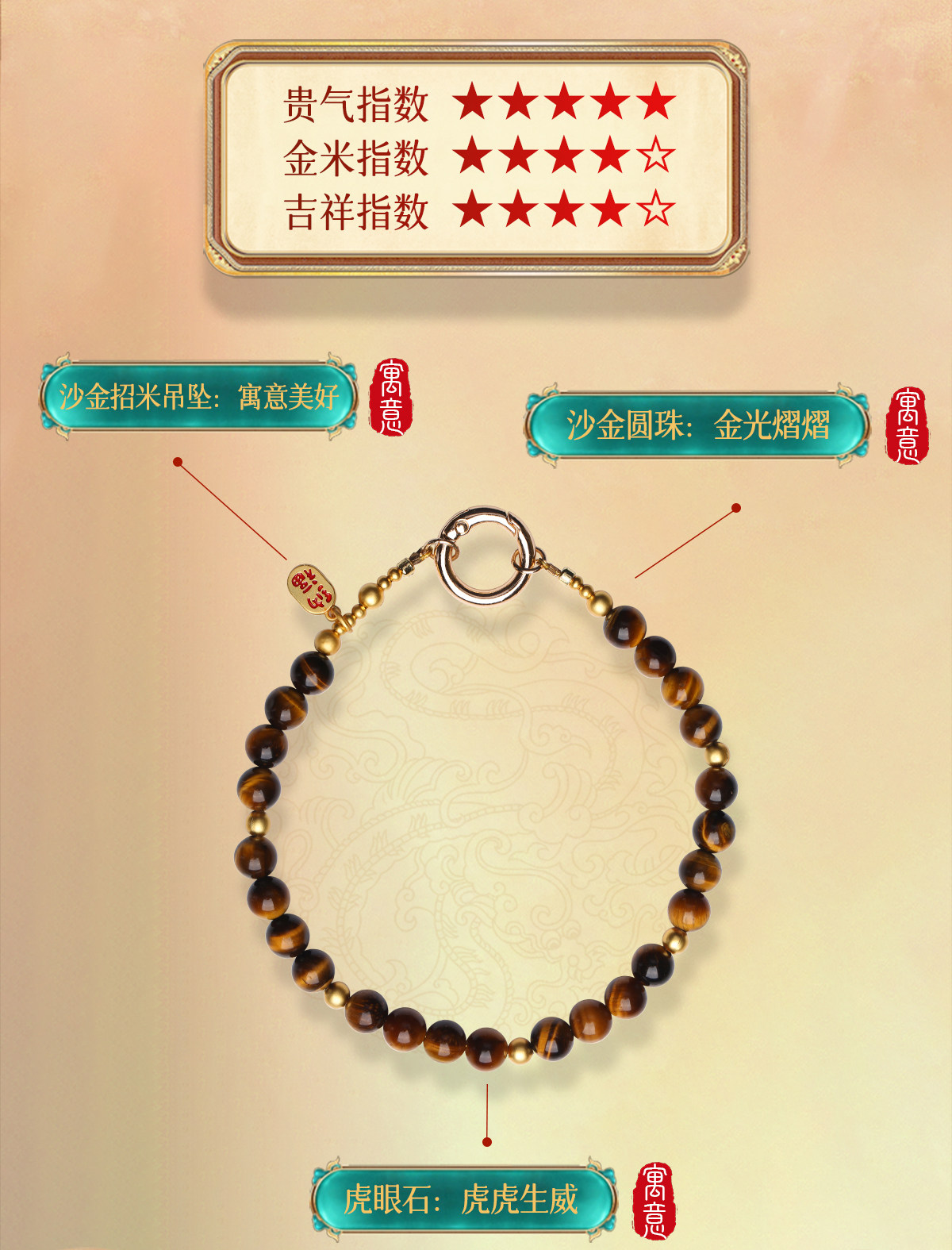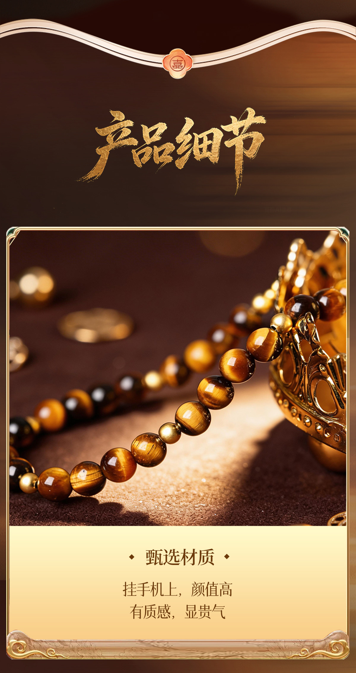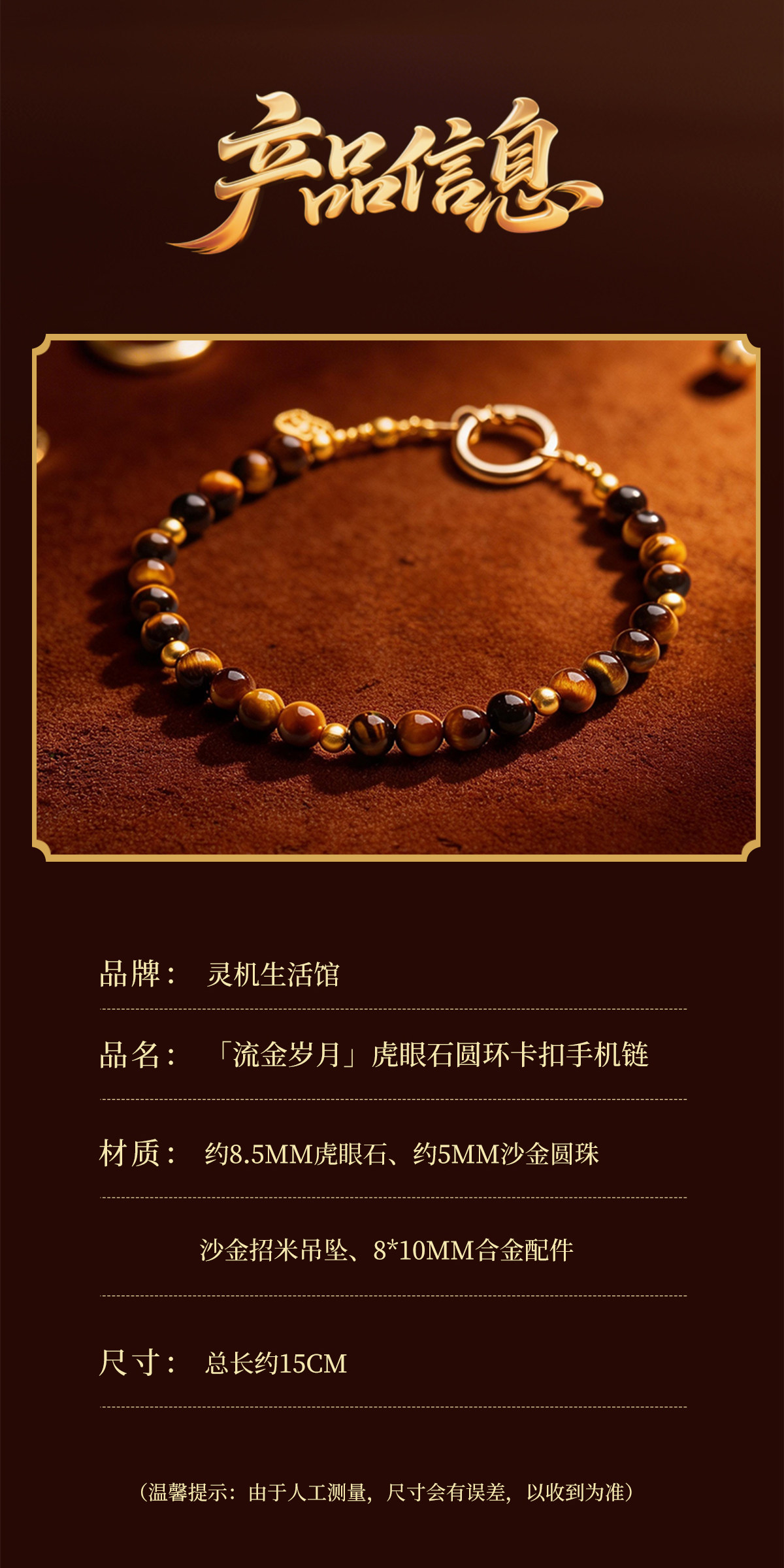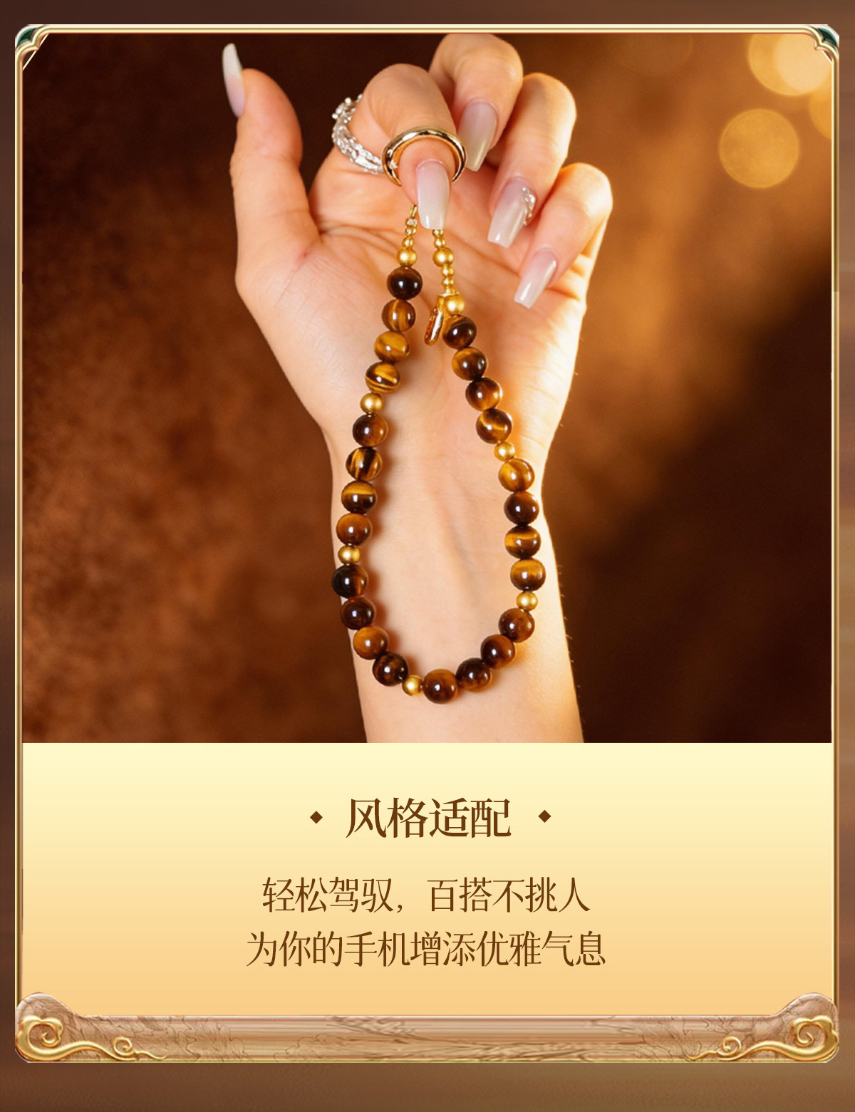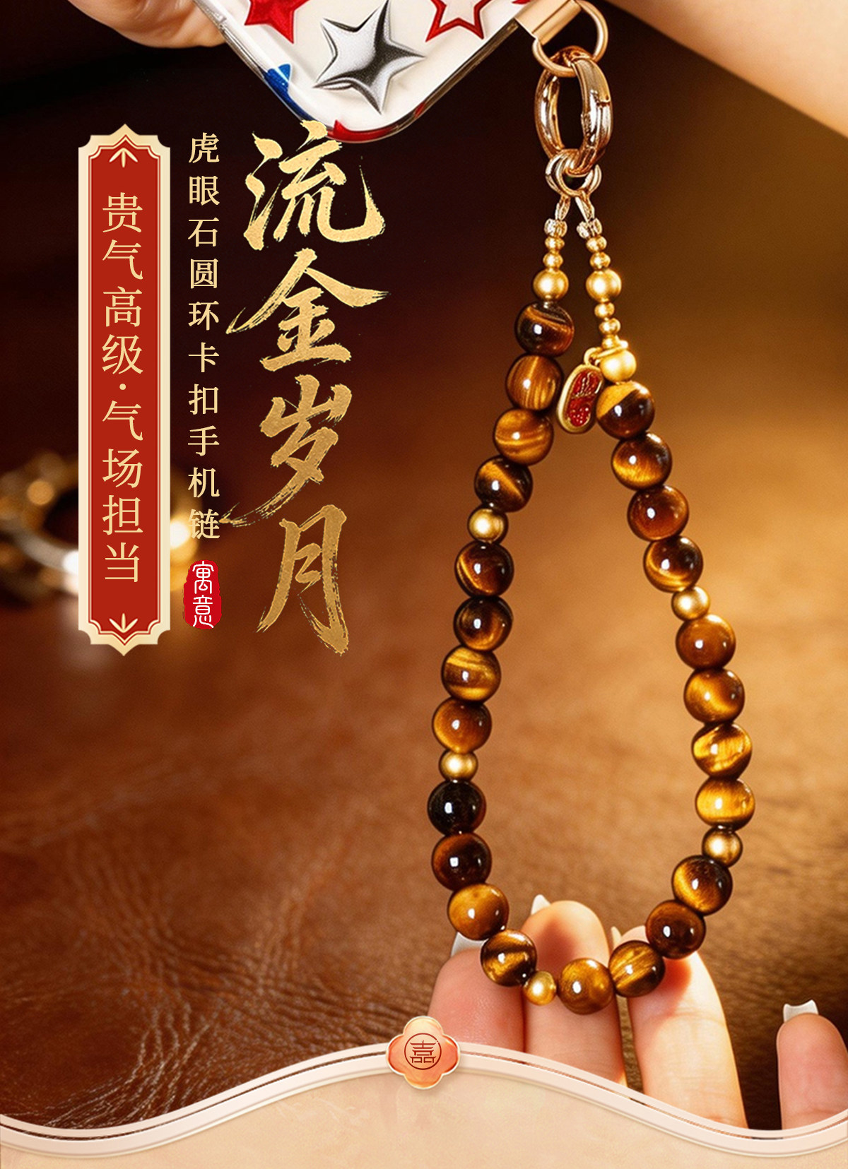 【祈愿吉品】「流金岁月」虎眼石圆环卡扣手机链相机防丢挂饰安全绳
