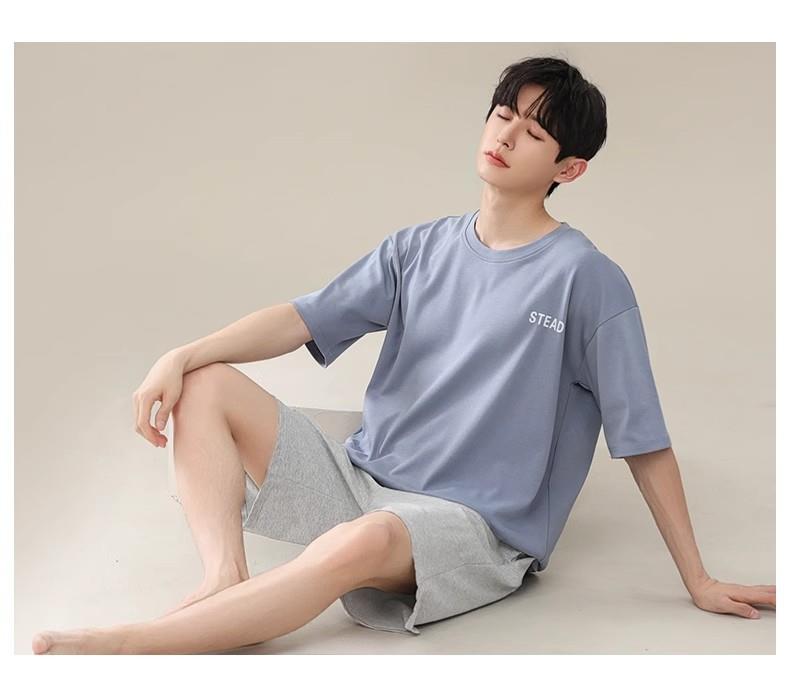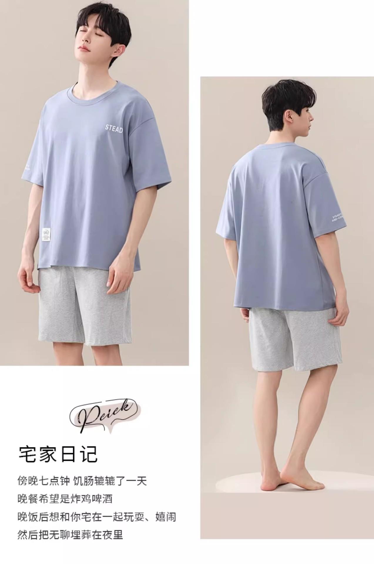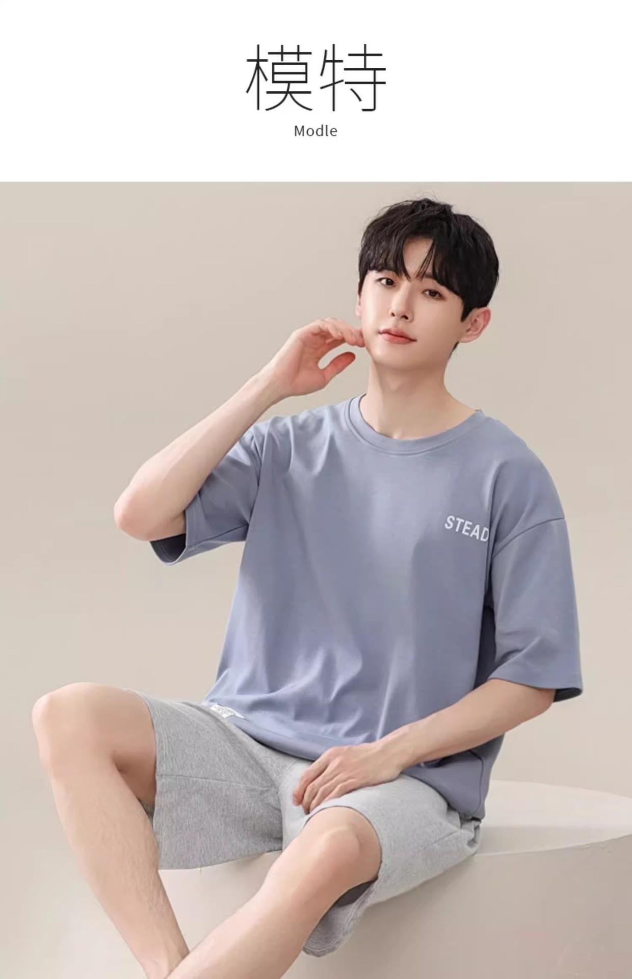 凉感睡衣男款夏薄款冰丝夏天圆领简约纯色短袖短裤男士家居服套装