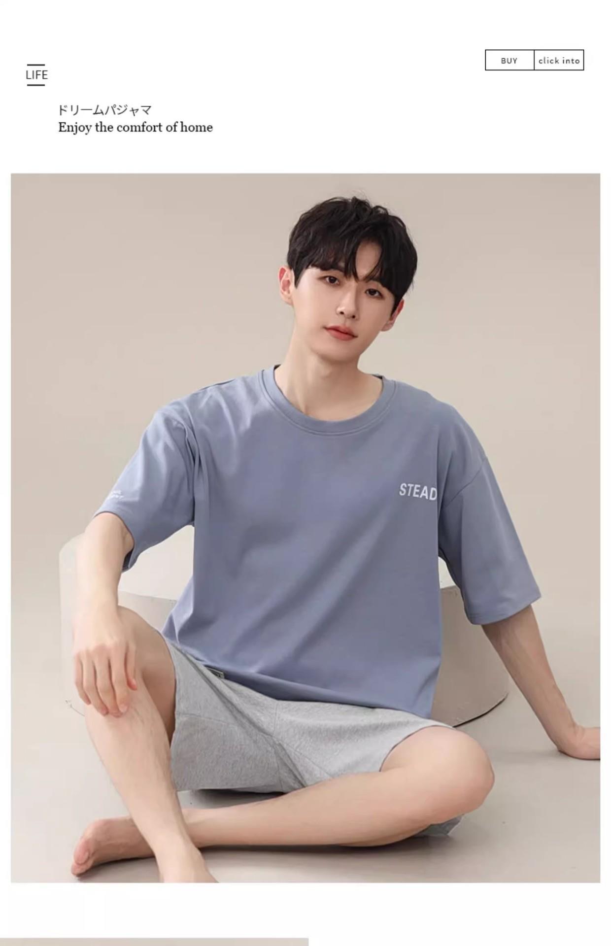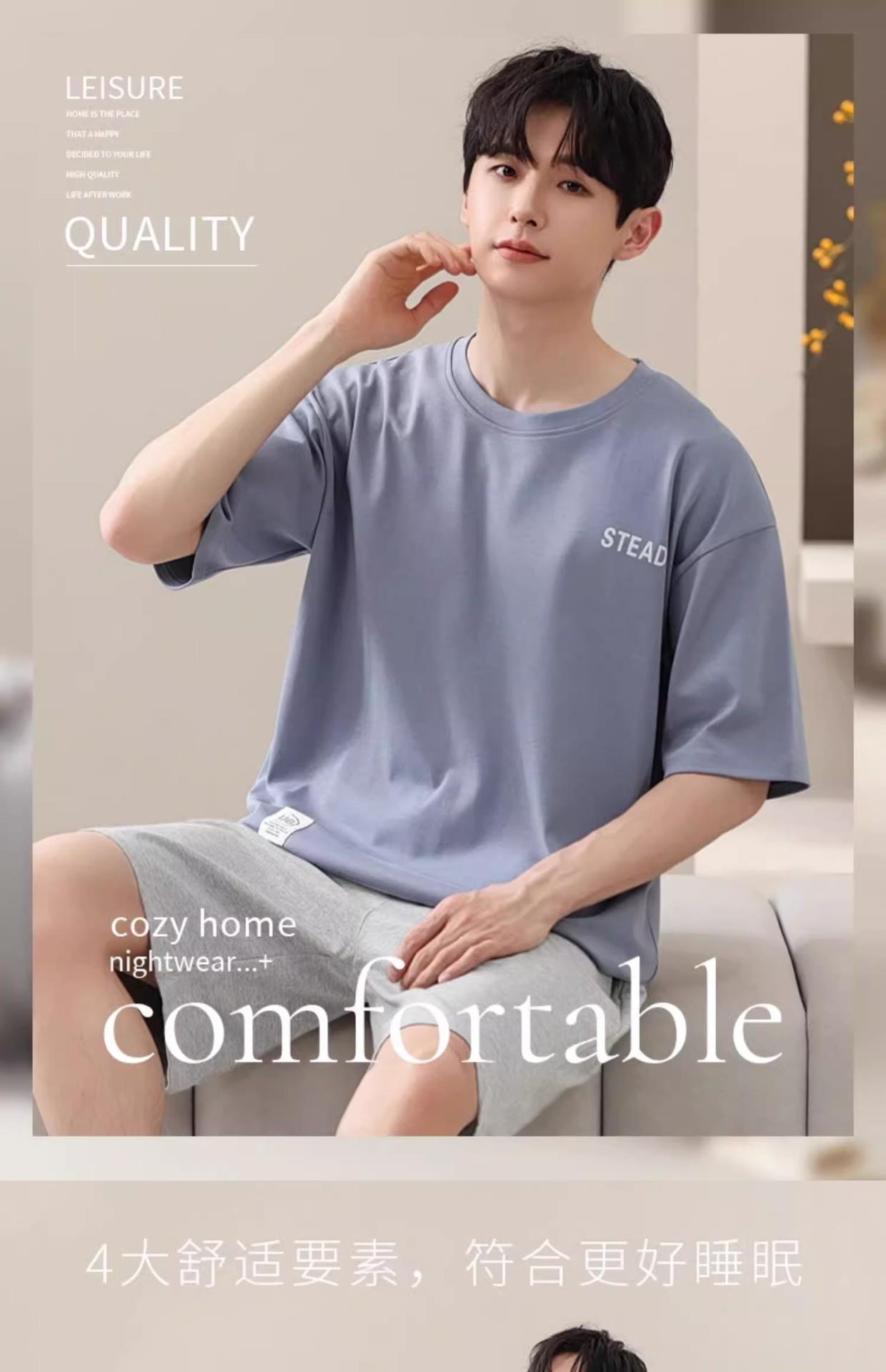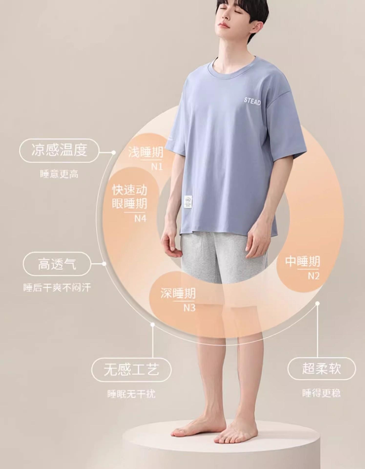 凉感睡衣男款夏薄款冰丝夏天圆领简约纯色短袖短裤男士家居服套装