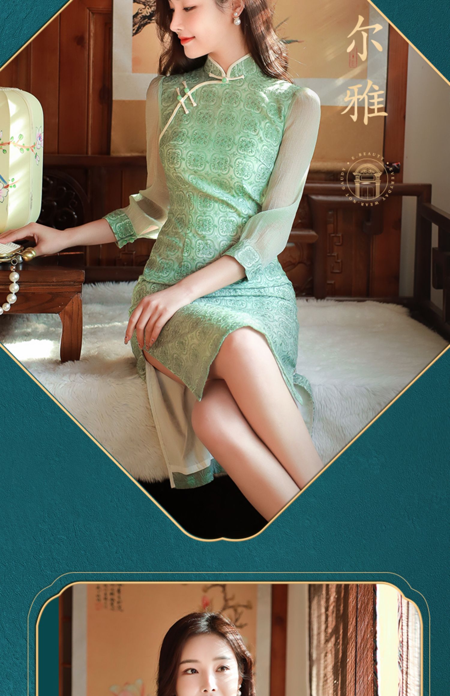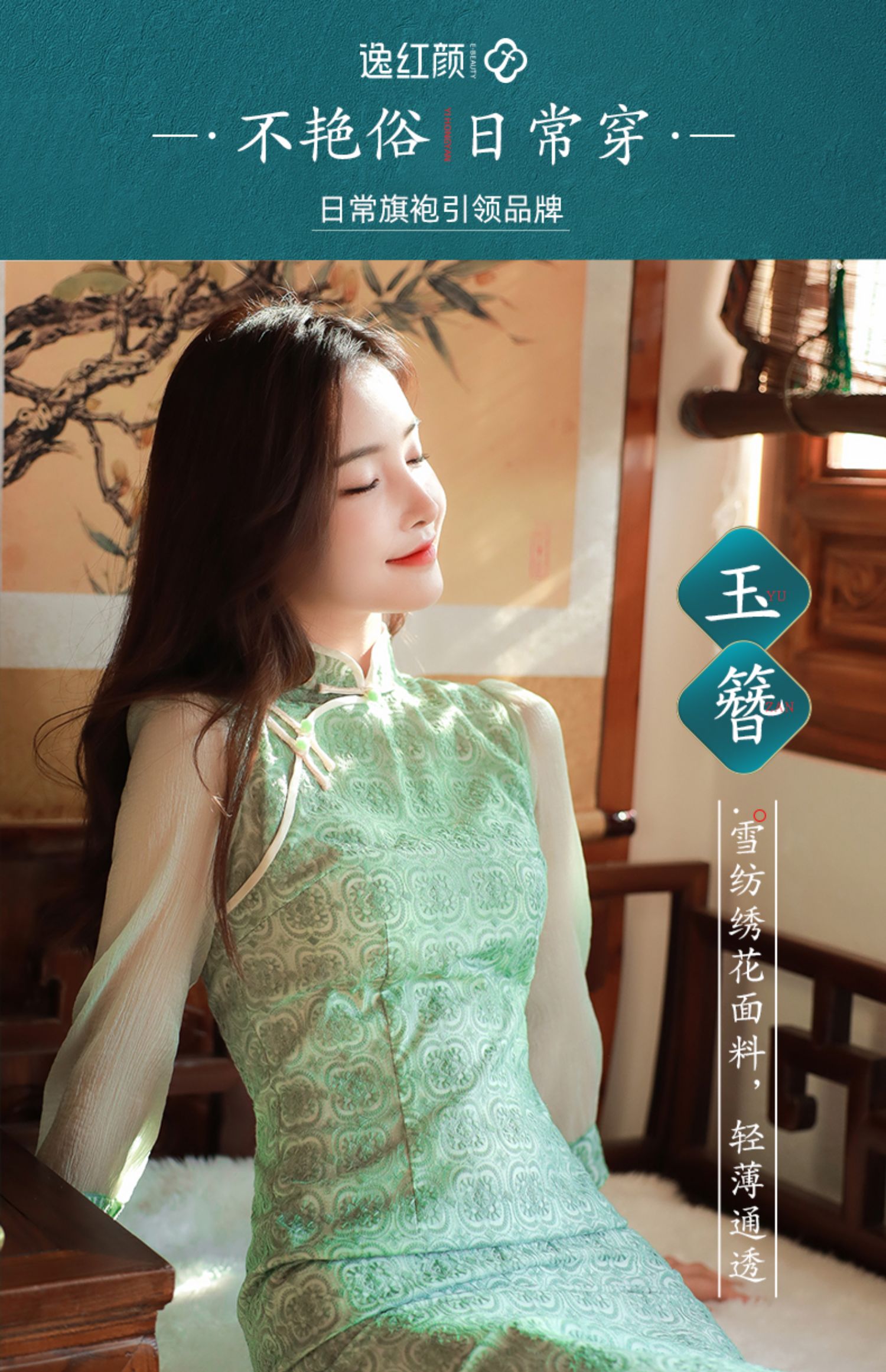 逸红颜旗袍女春2025年新款 玉簪 雪纺轻薄通透紧致有型温文尔雅风
