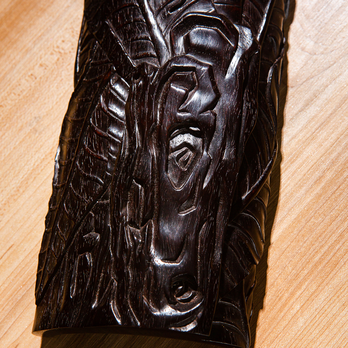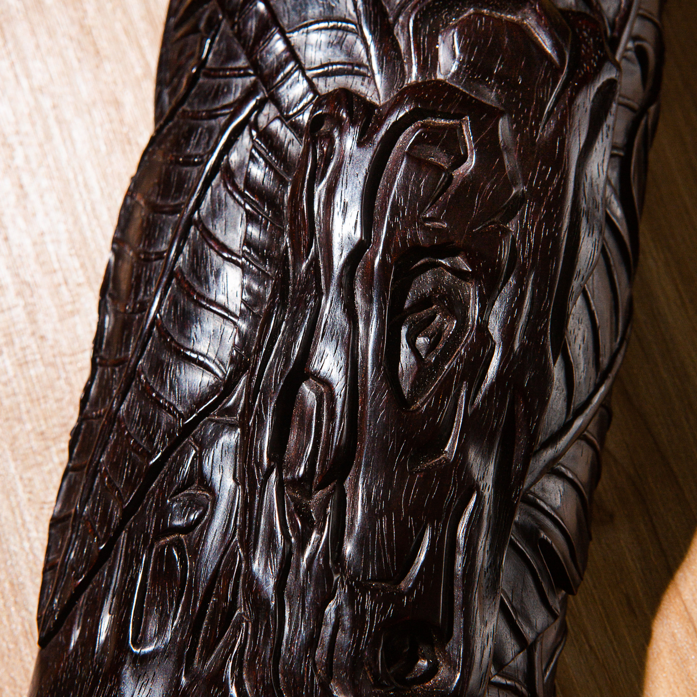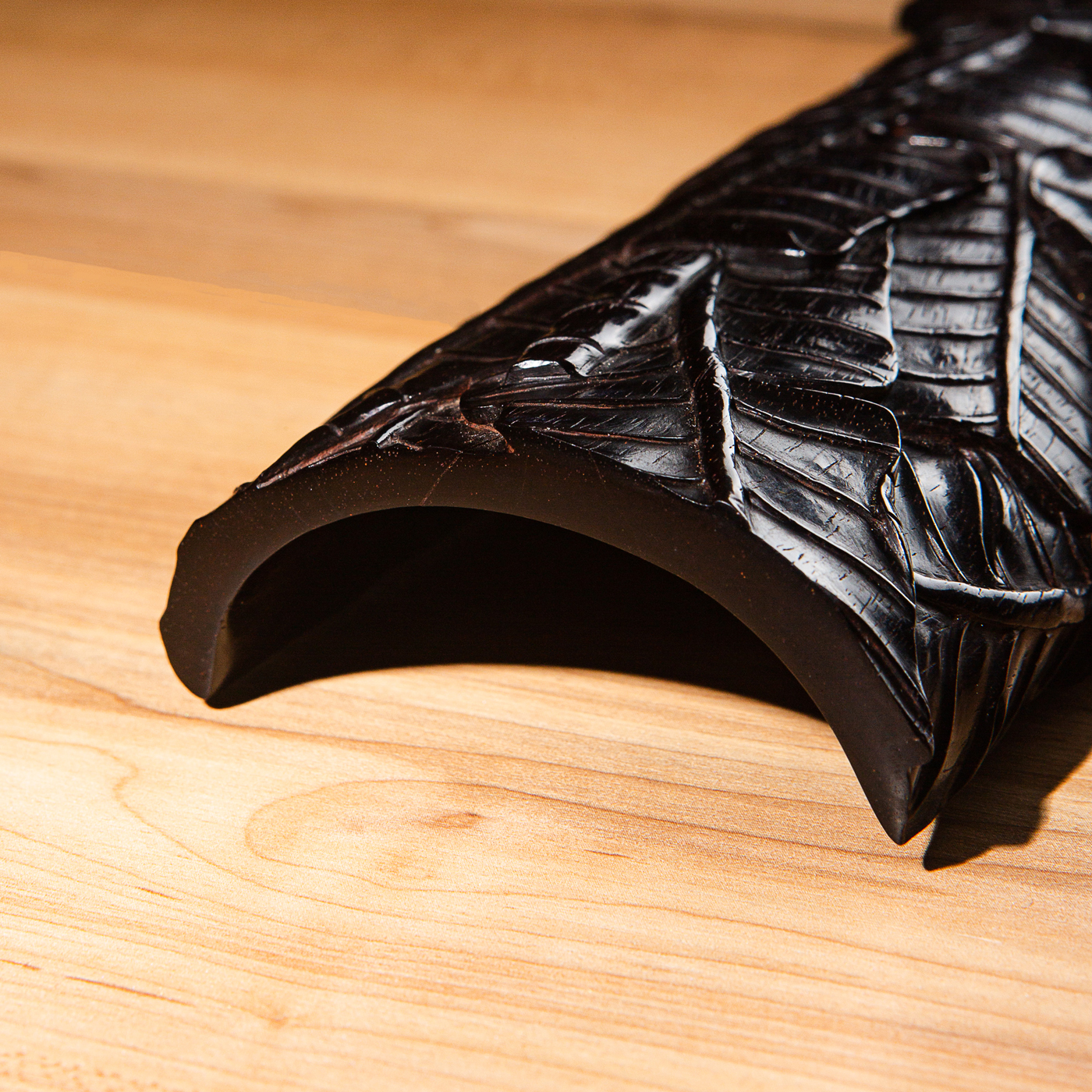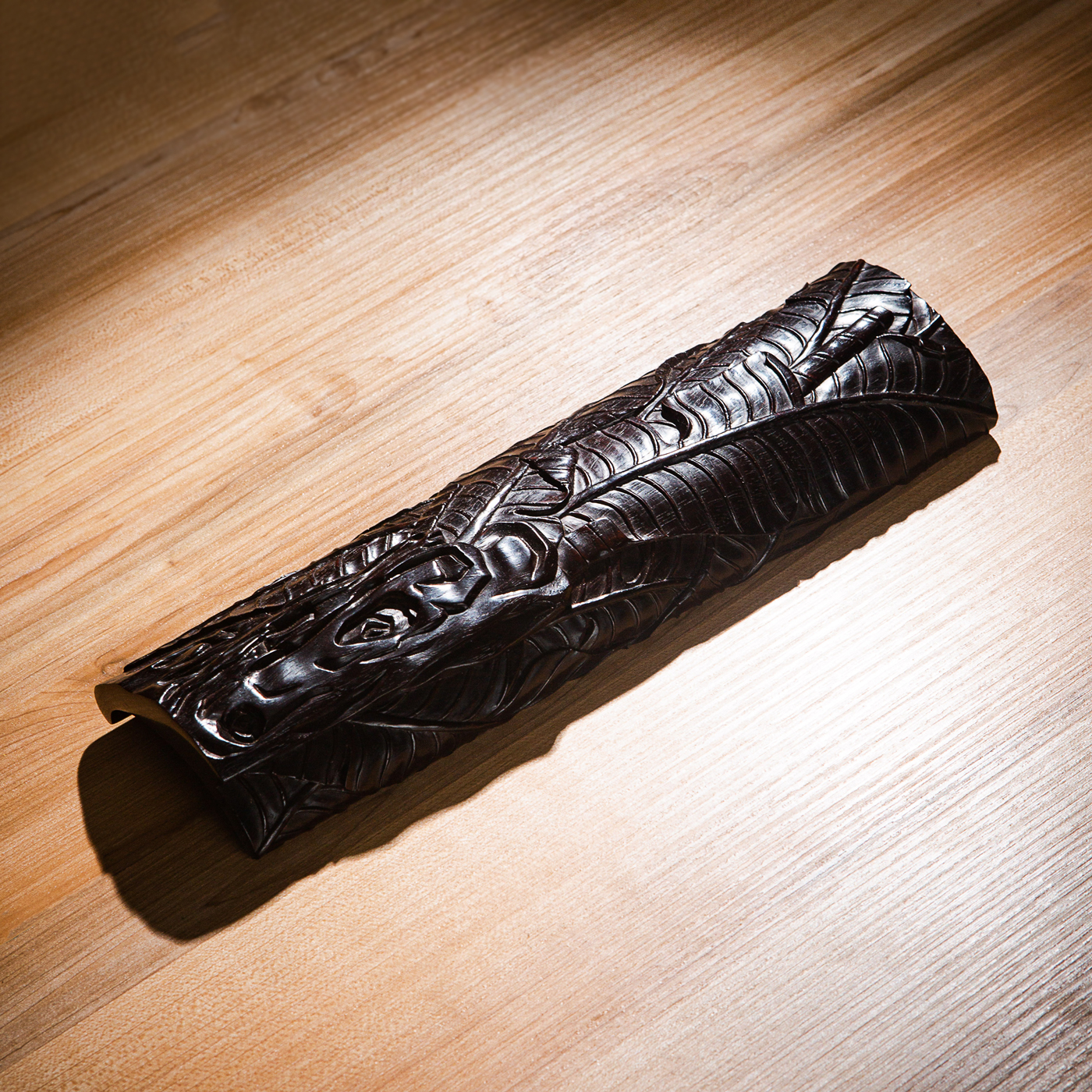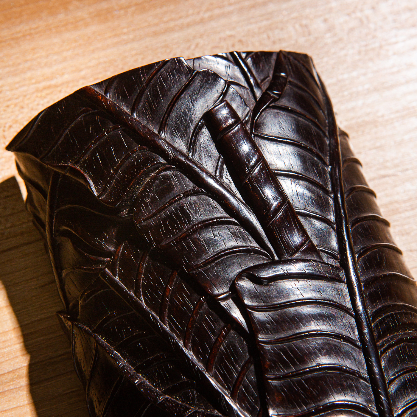 紫檀雕“蕉叶怪石”大臂搁,雕工精细繁复,构图精妙,老料颜色沉稳古穆,包浆莹润,器型典雅,为不可多得之佳品。