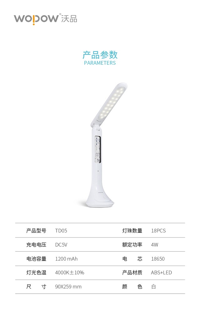 沃品万年历LED护眼台灯TD05