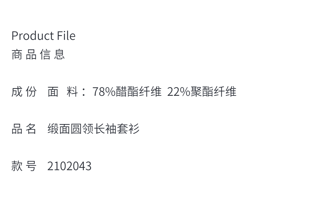 春夏时尚-醋酸面圆领长袖-修身纯色气质通勤薄款显瘦上衣 2102043