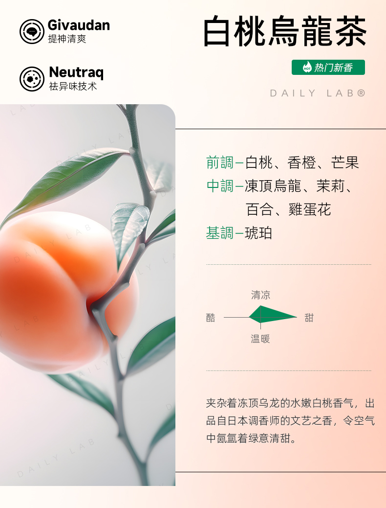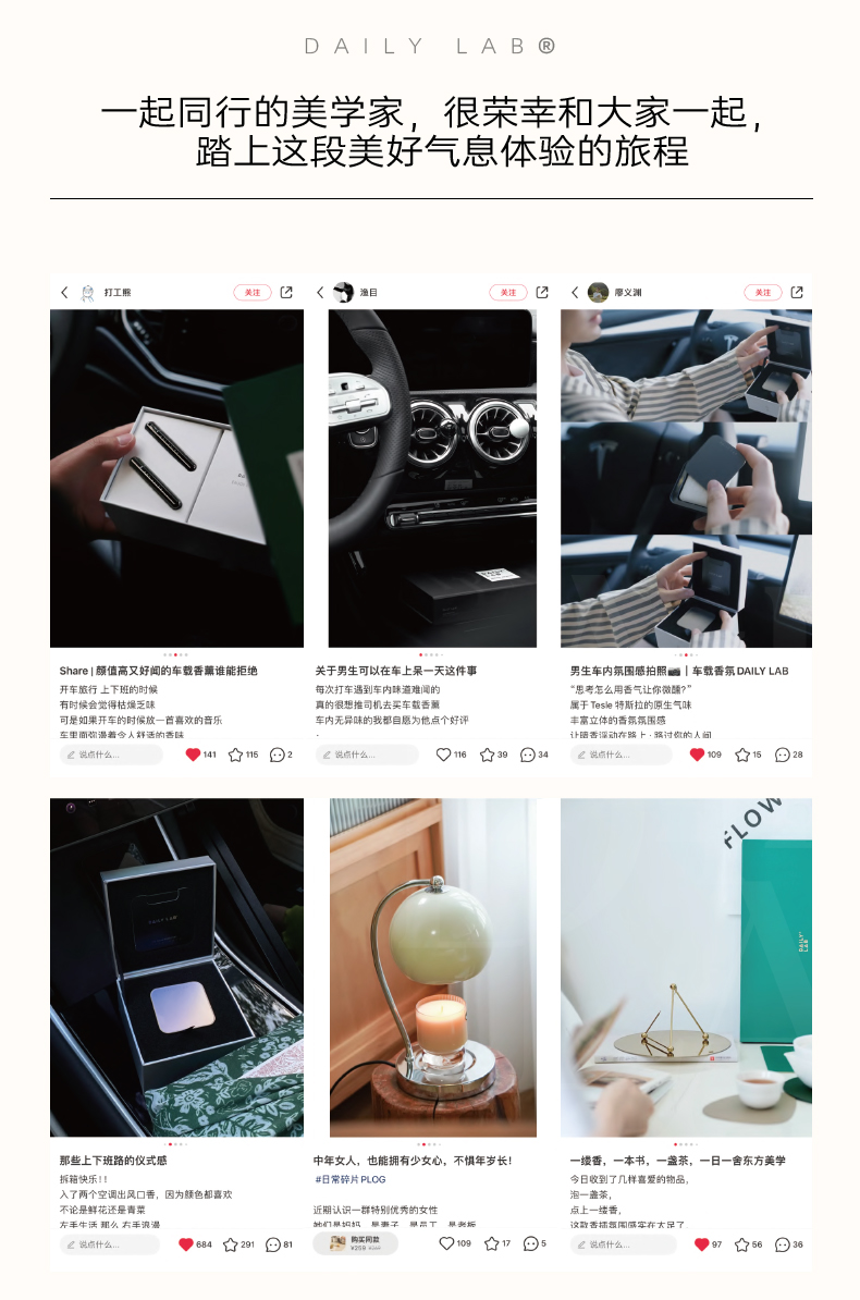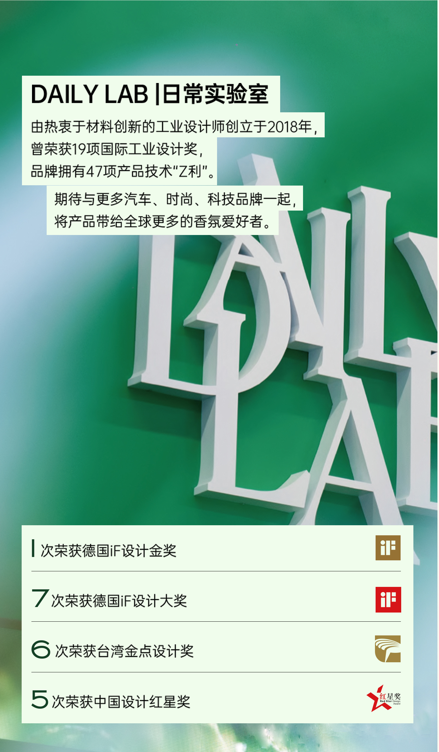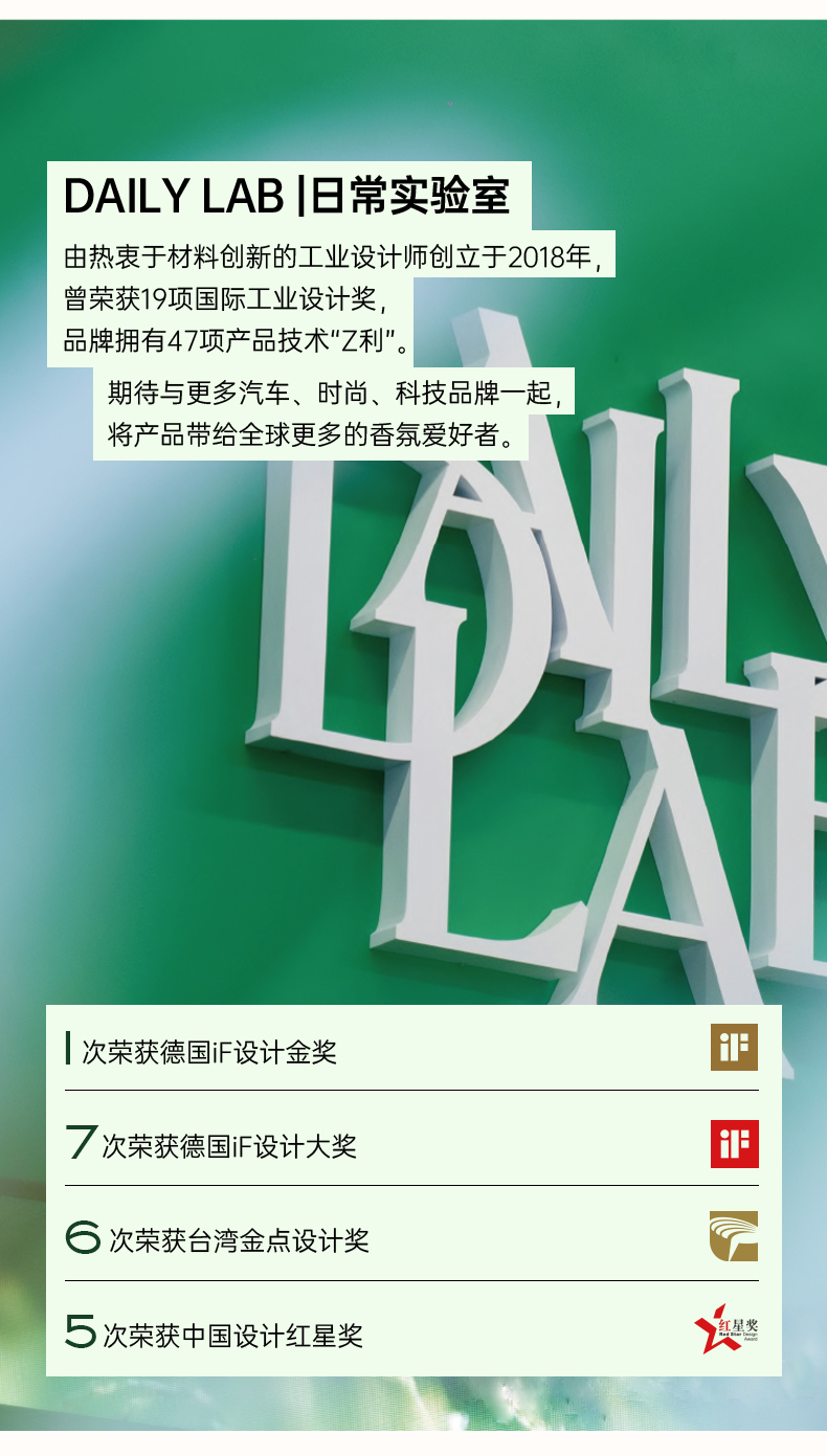- DAILY LAB|日常实验室,立足东方美学,是专注于「香气可视化」的轻奢空气交互品牌。
