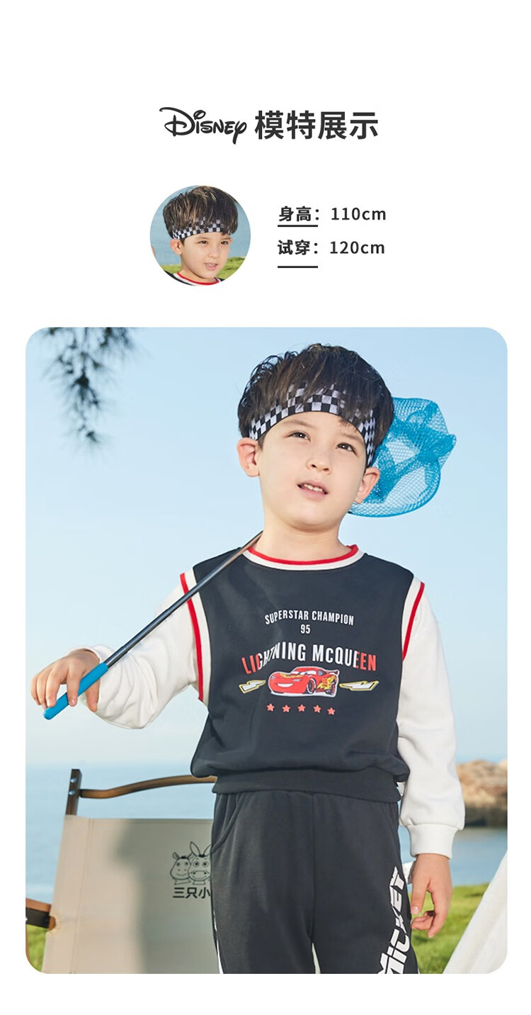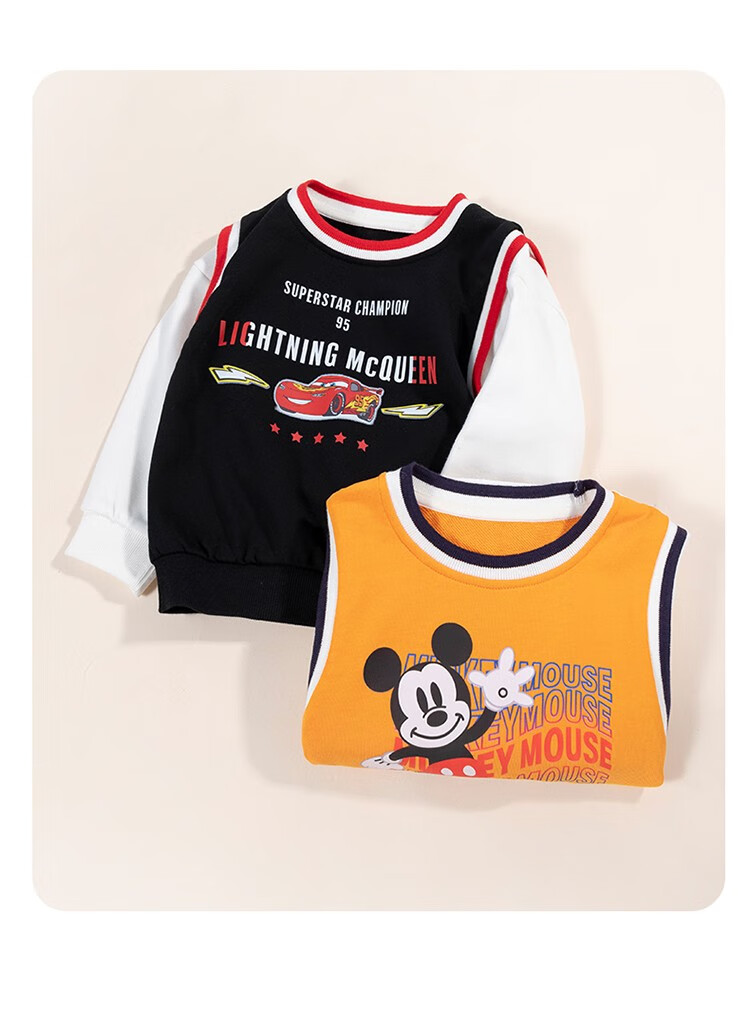 【商场同款】迪士尼童装男童假两件套头卫衣闪电麦昆米奇玩具总动员卡通休闲衣221DS0393