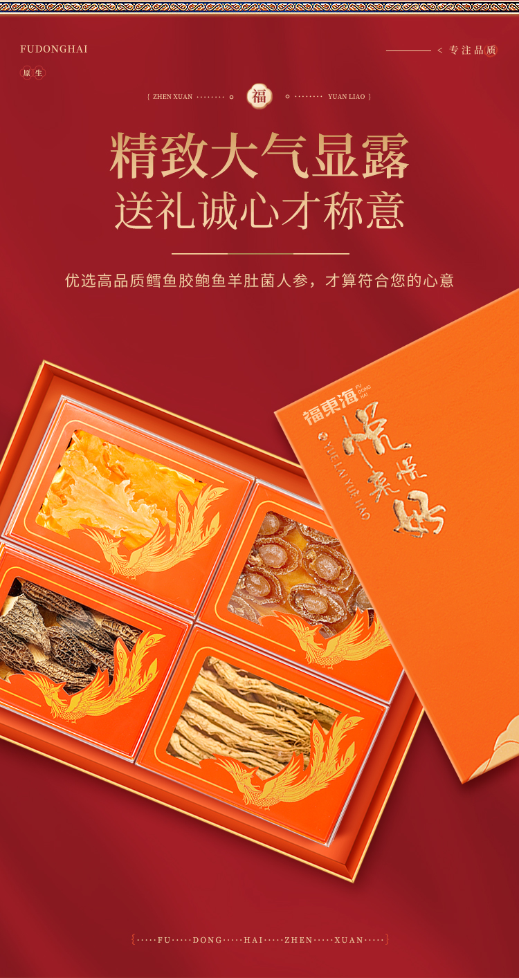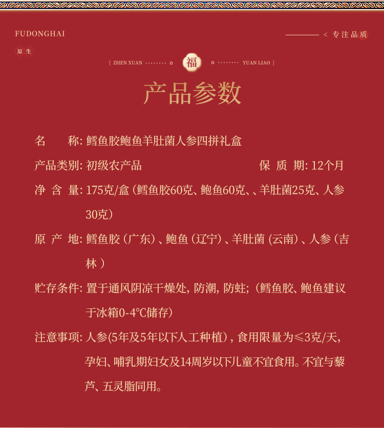 福东海 鳕鱼胶鲍鱼羊肚菌人参四拼175克 【春节年货】花胶山珍海味海鲜特产干货礼盒 滋补营养品送长辈佳品