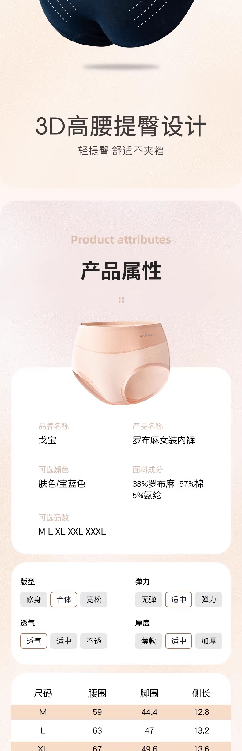 女士内裤高腰收腹塑身 远红外暖宫透气腹部加厚面料