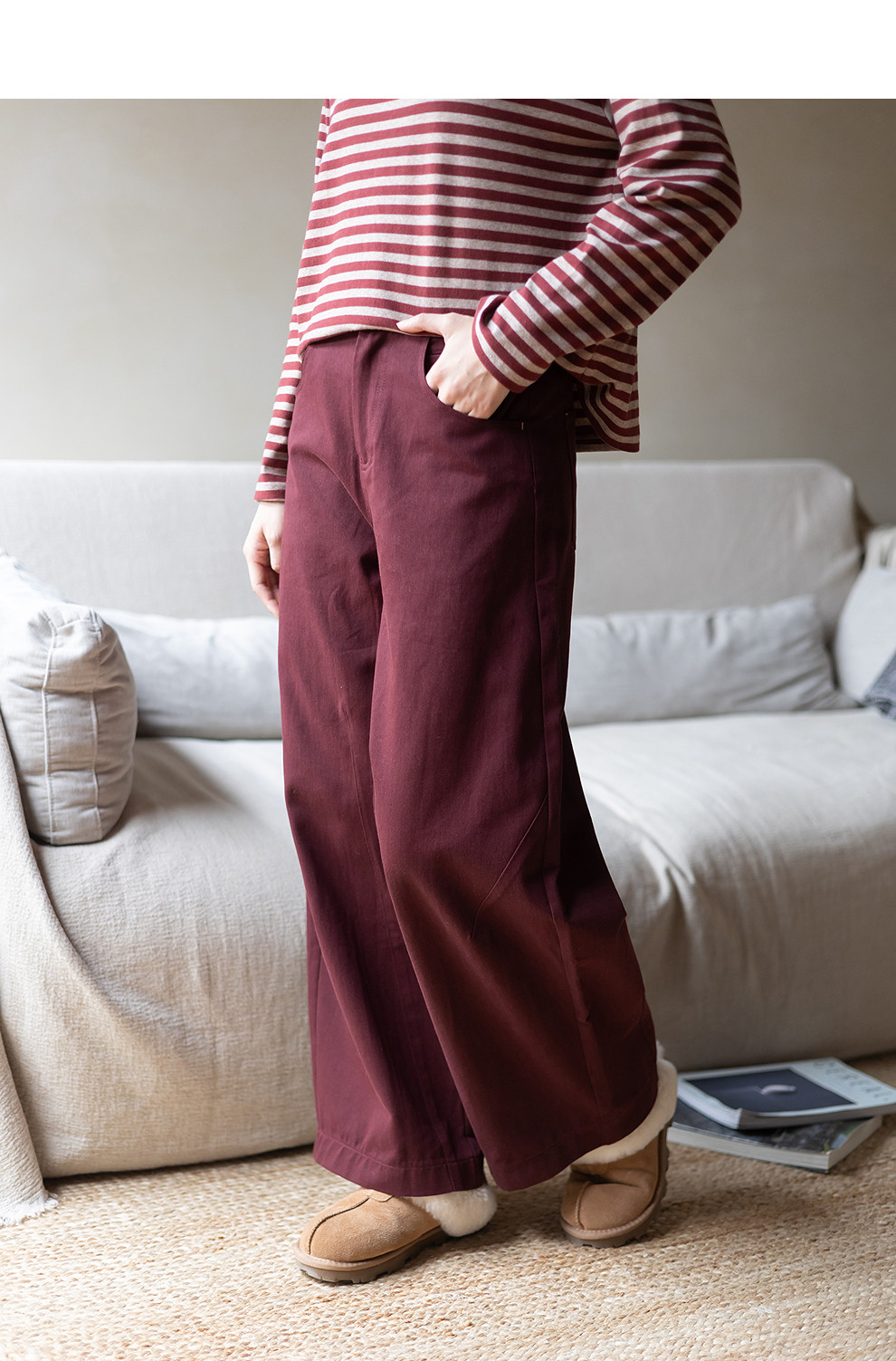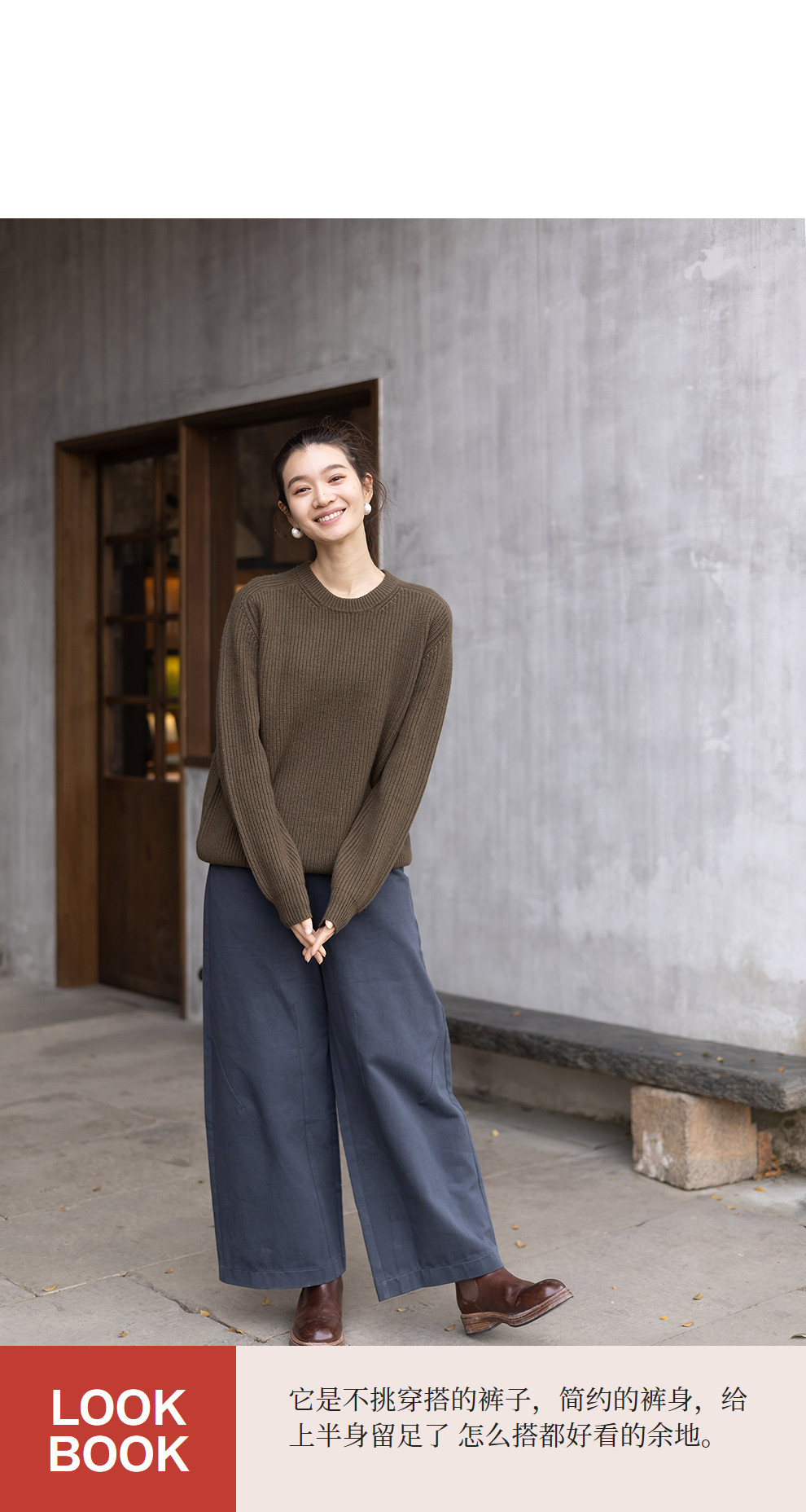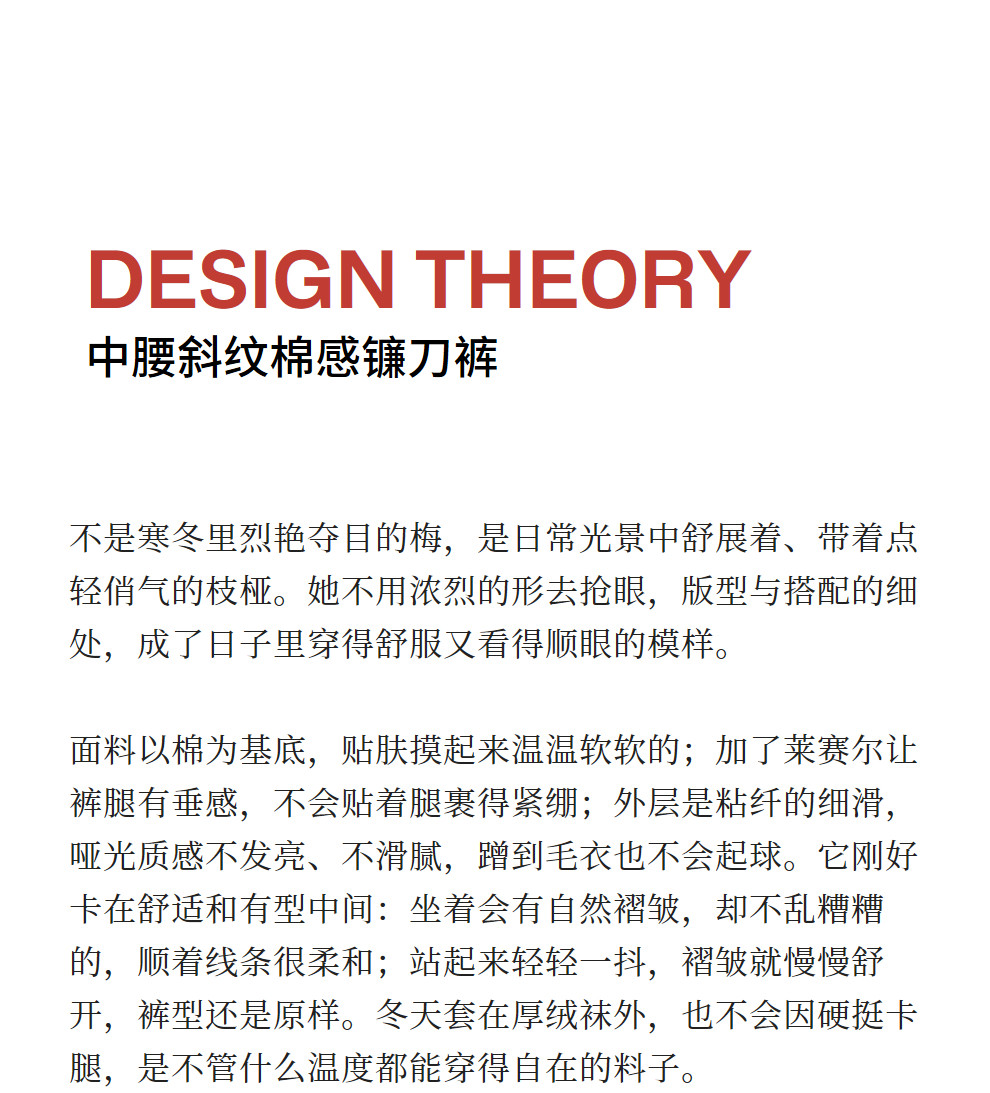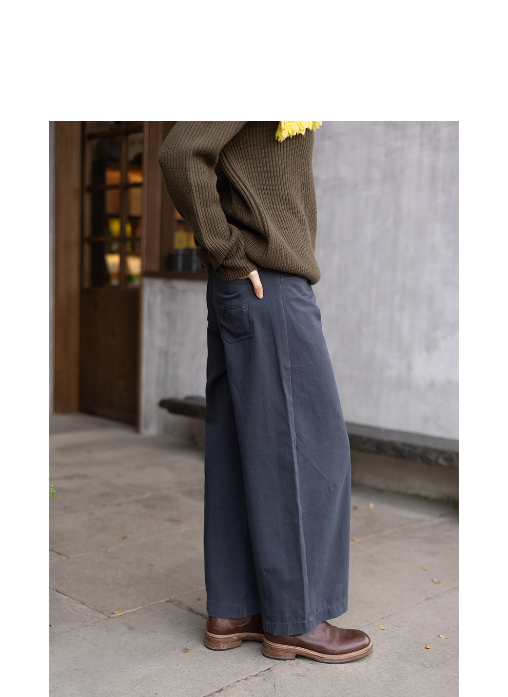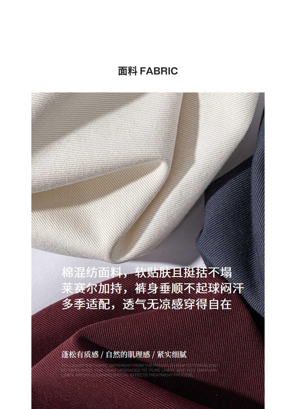 特绽放534朵/棉混纺中腰斜纹棉感镰刀裤垂感简约休闲裤女春季新款