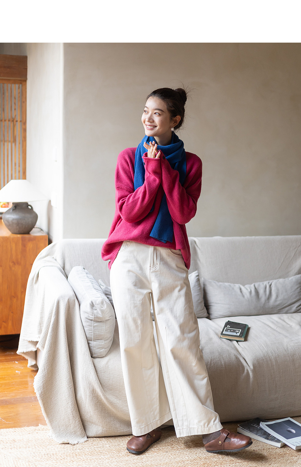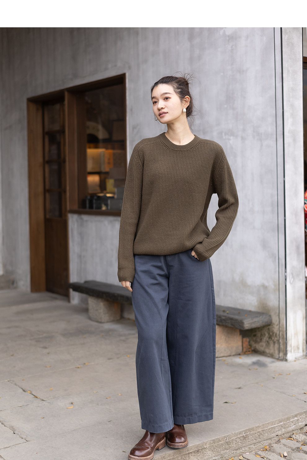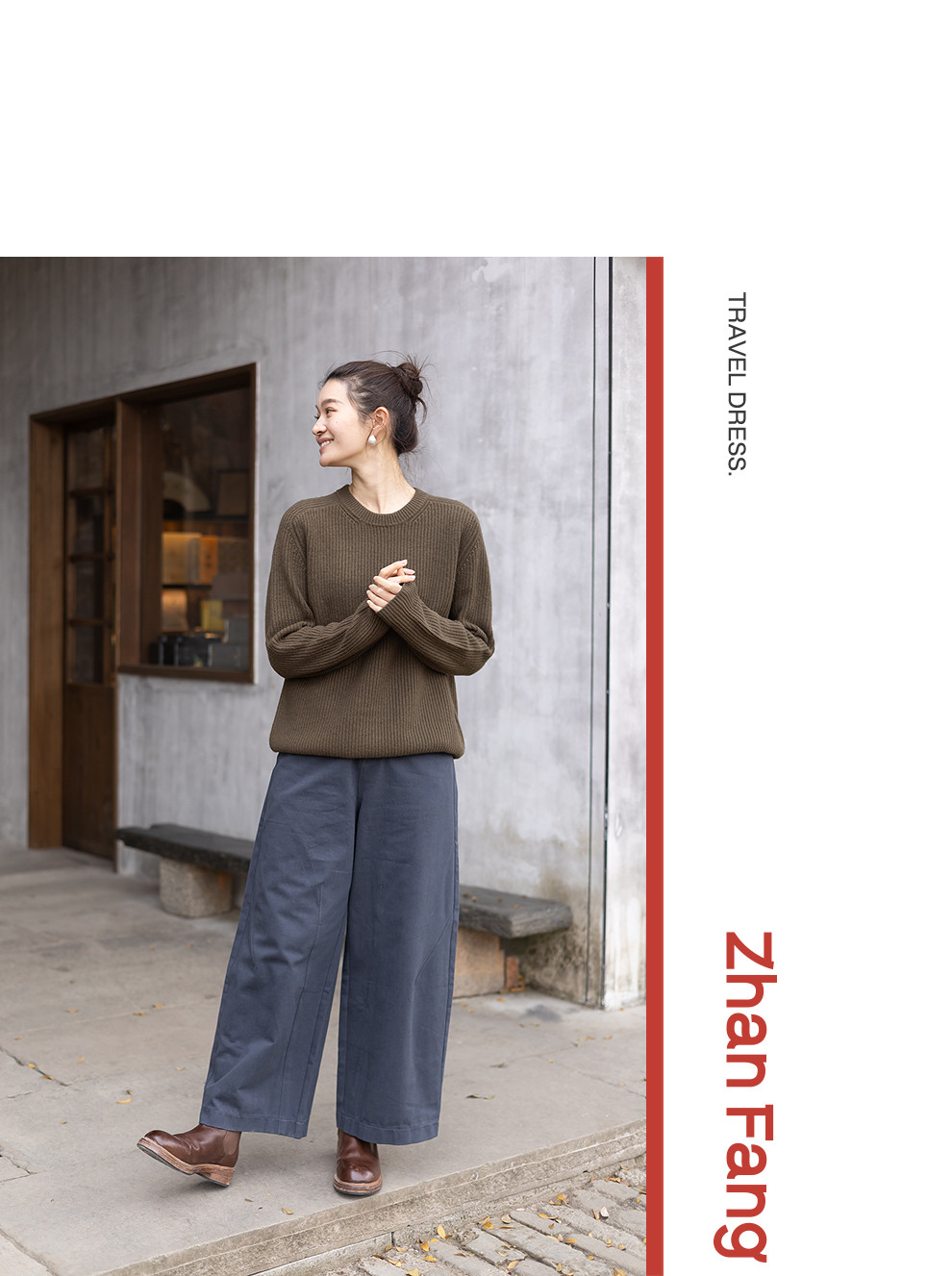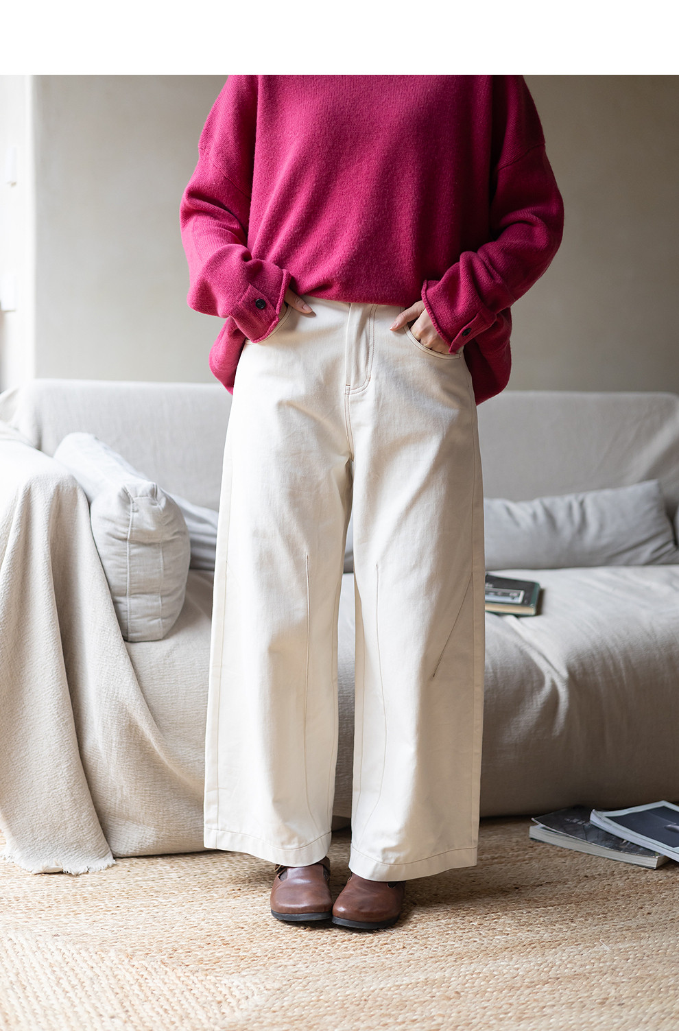 特绽放534朵/棉混纺中腰斜纹棉感镰刀裤垂感简约休闲裤女春季新款