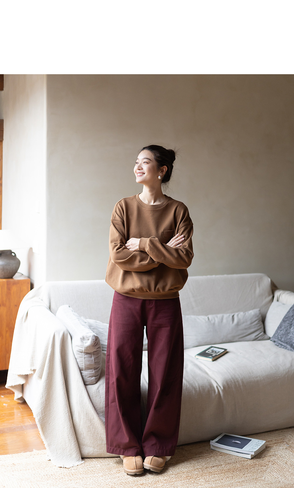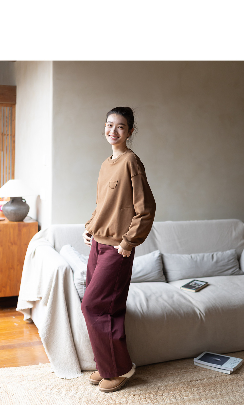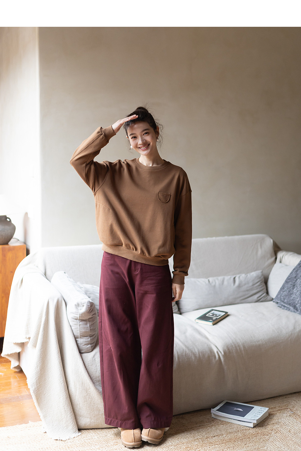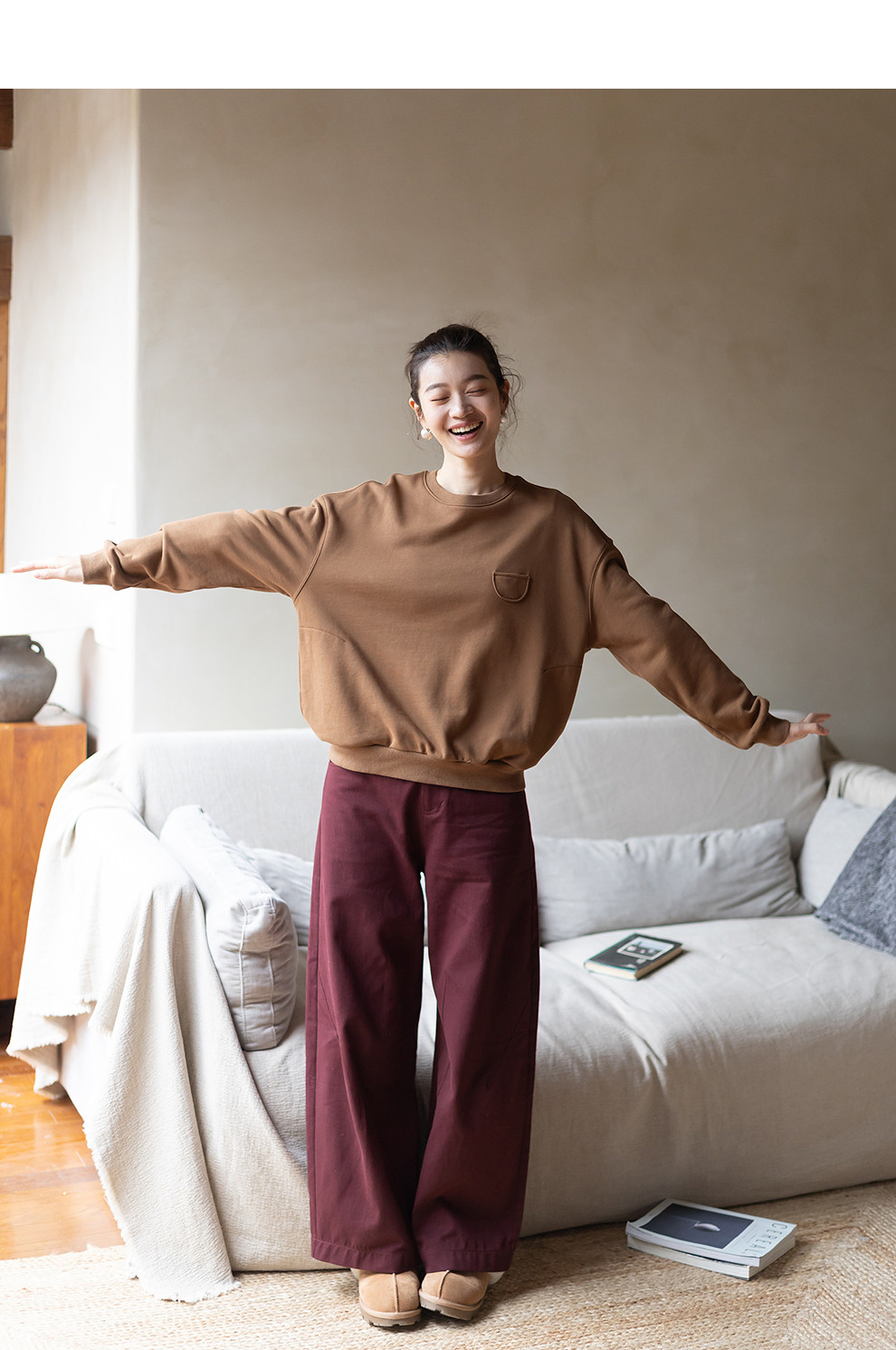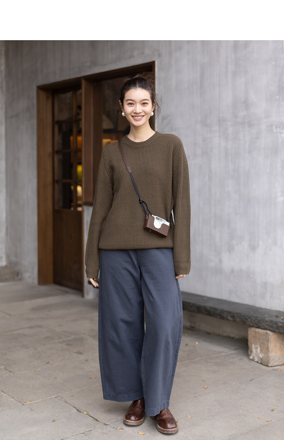 特绽放534朵/棉混纺中腰斜纹棉感镰刀裤垂感简约休闲裤女春季新款