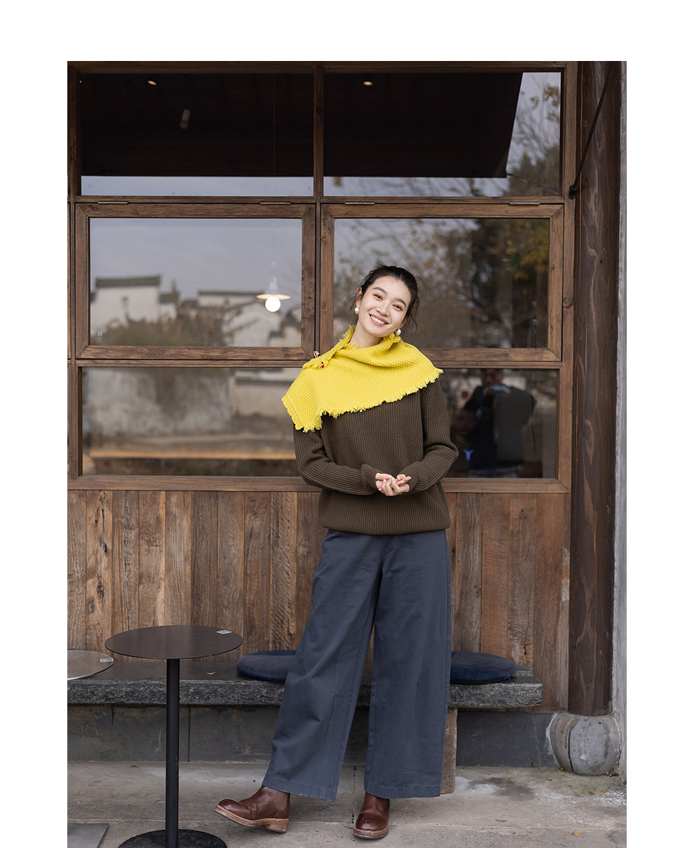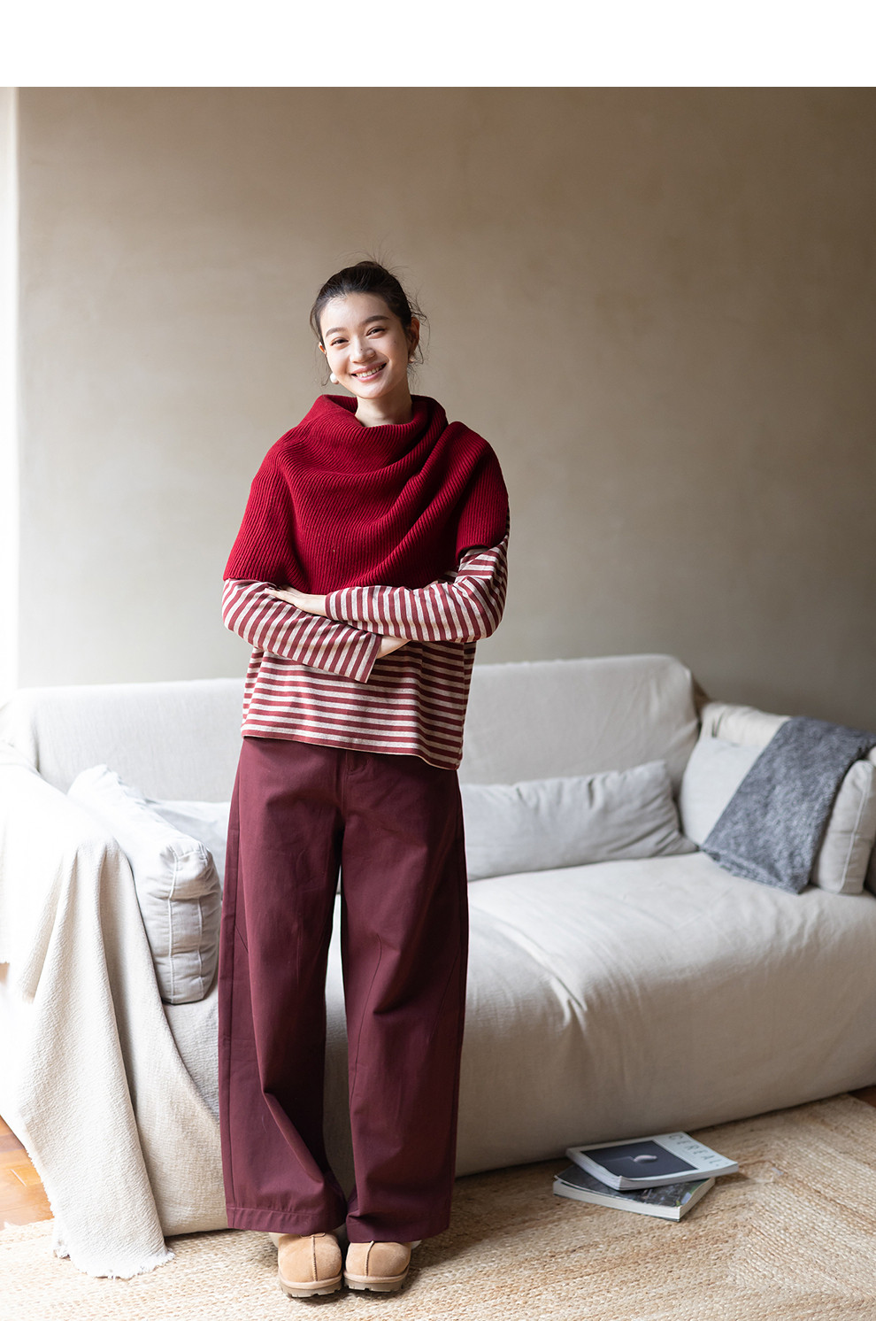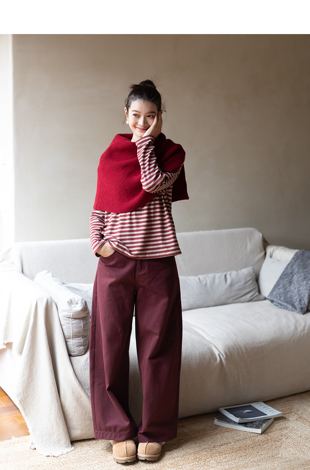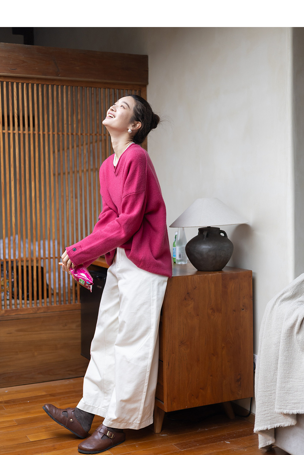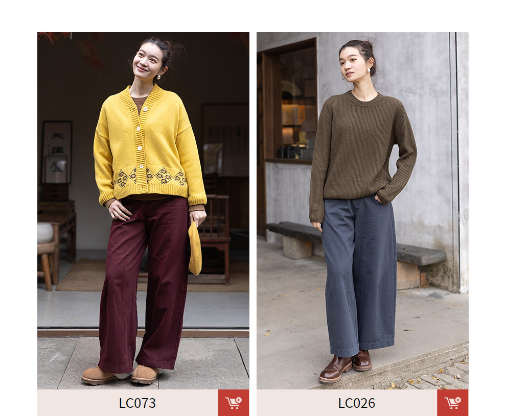 特绽放534朵/棉混纺中腰斜纹棉感镰刀裤垂感简约休闲裤女春季新款