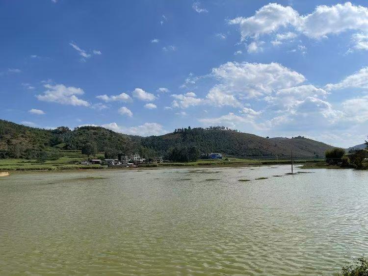 山上的泉水汇聚到坝子水塘里,水塘边上就是我们的甘蔗种植基地,真正饮山泉水长大的甘蔗