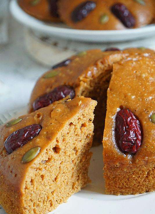 红糖蒸糕。在面粉中加入适量的红糖,做成蒸糕,好吃又饱腹。