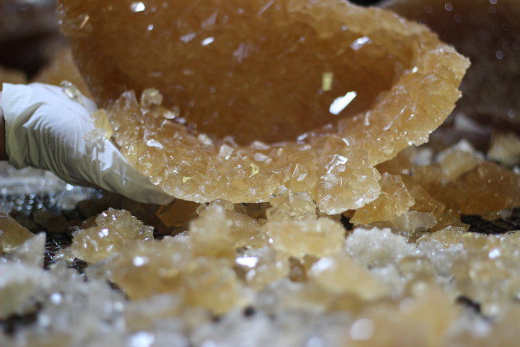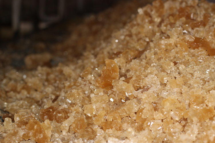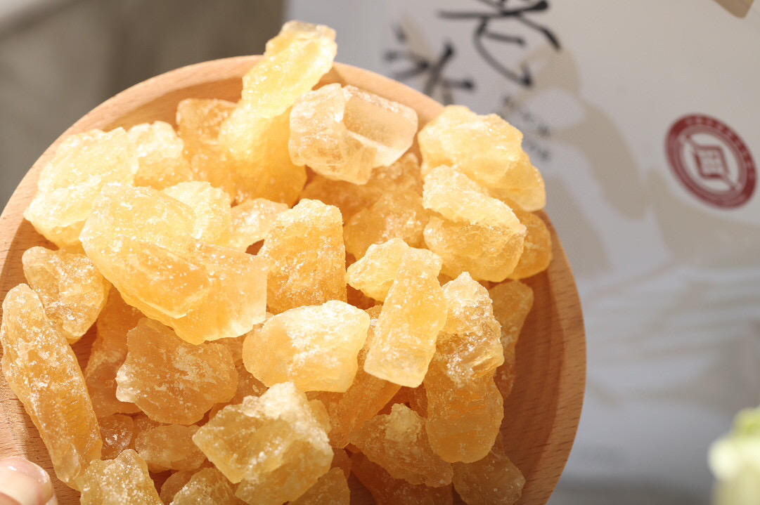 老冰糖全采用人工破碎,相比机器破碎能更好的保留老冰糖晶面的完整性