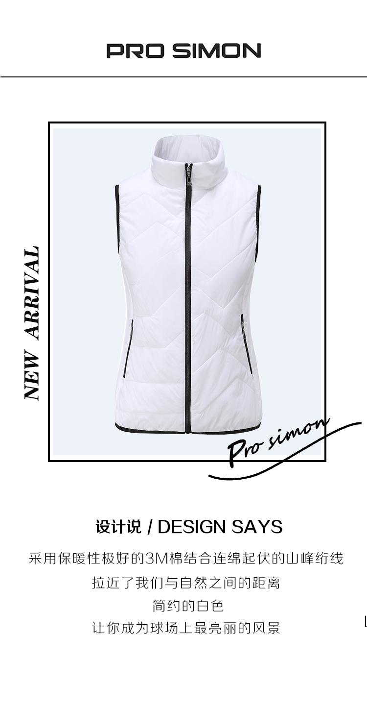 BLW-306A(PROSIMON高尔夫秋冬女清新色不对称绗线棉马夹)