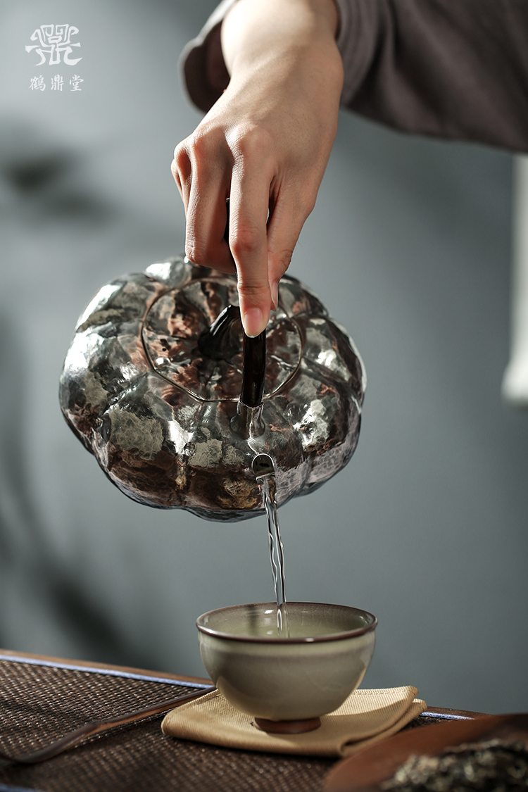 鹤鼎堂银壶闻天系列月皓汤沸槌目纹 (银色)(缺货)