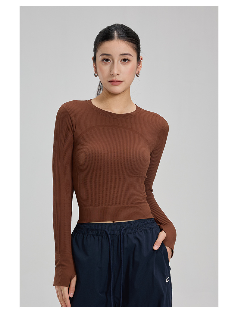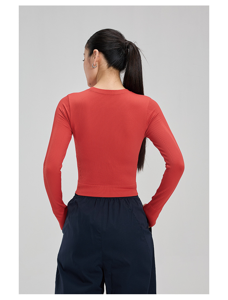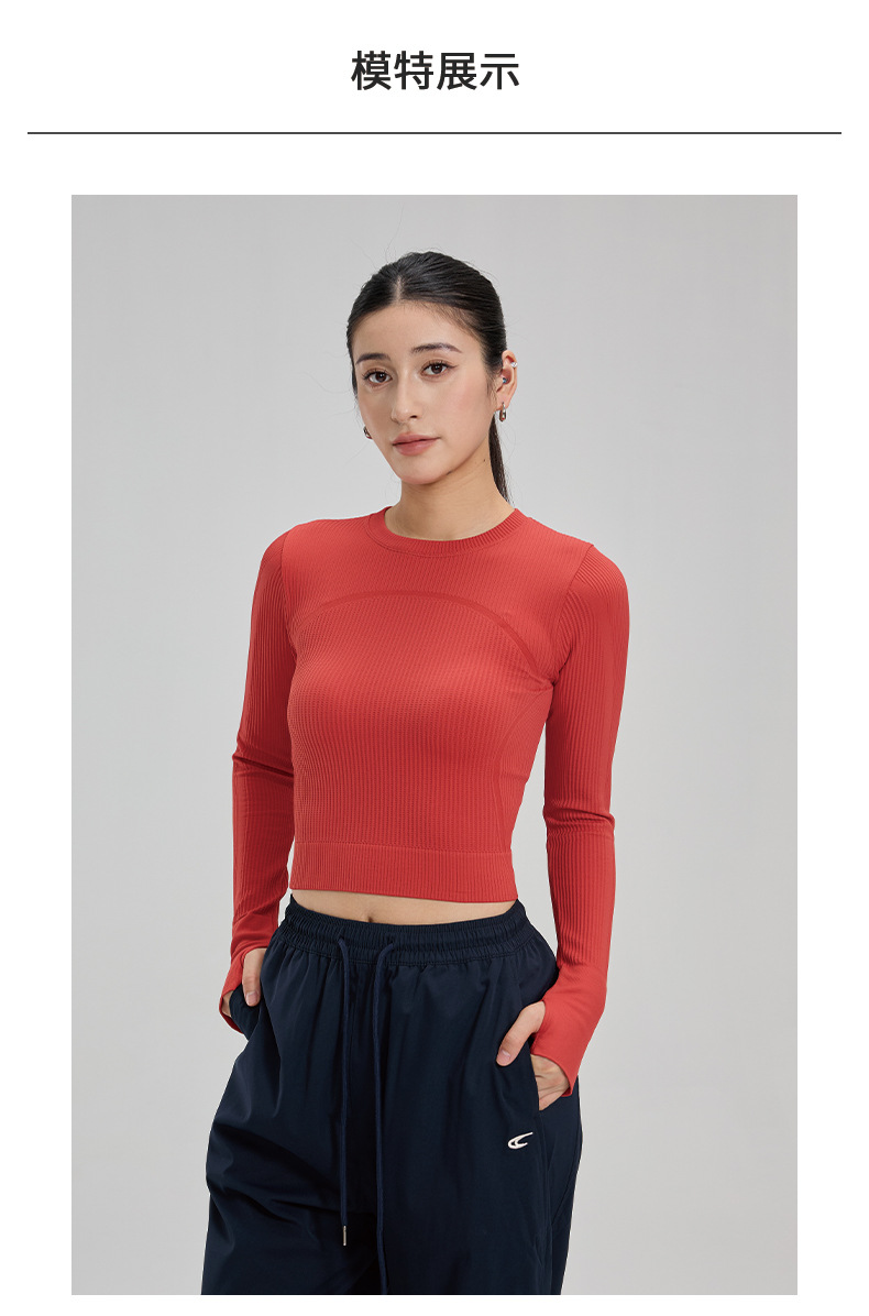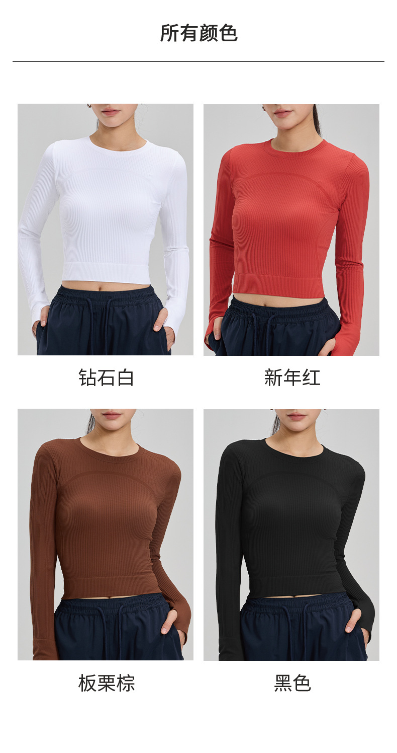 【路路精选】瑜伽上衣健身服女长袖运动背心修身速干瑜伽服户外华夫格紧身无胸垫