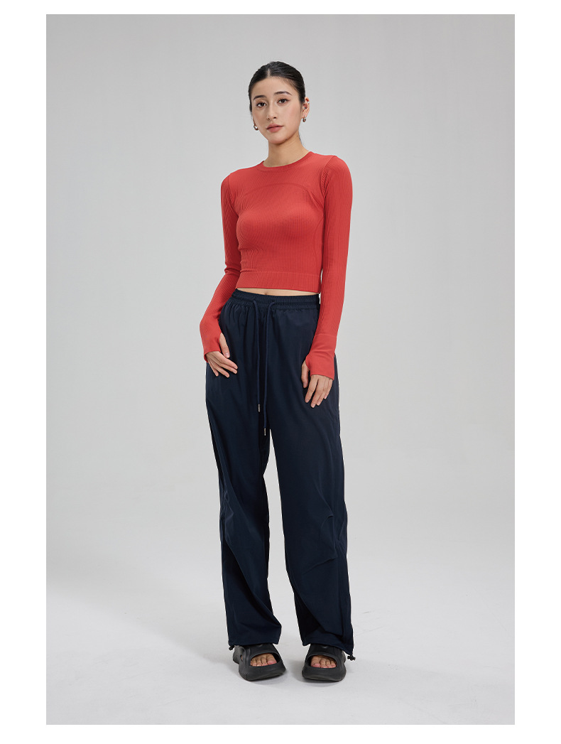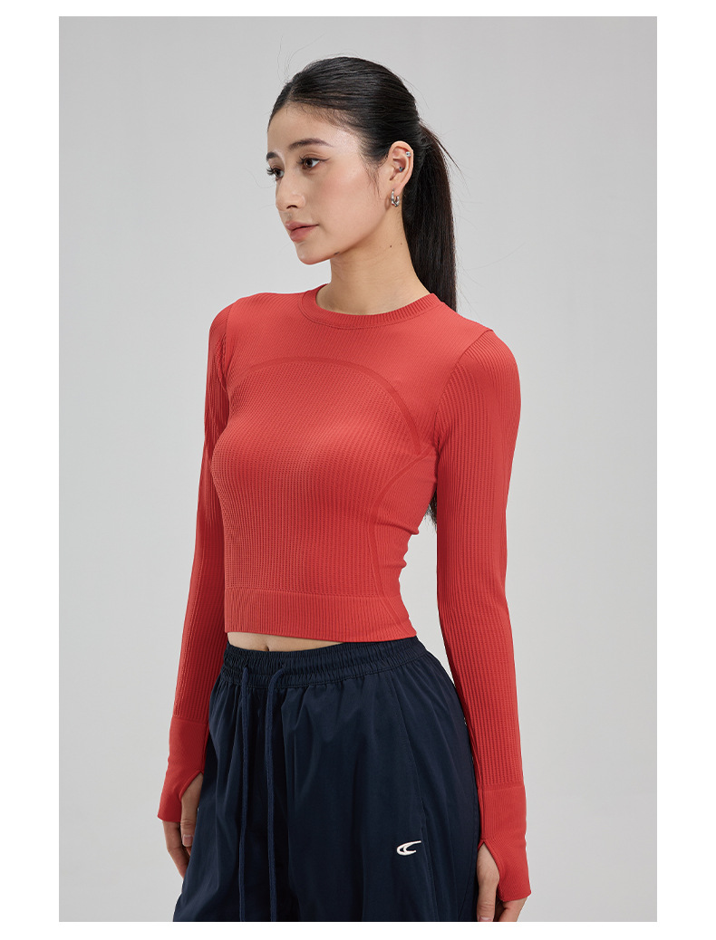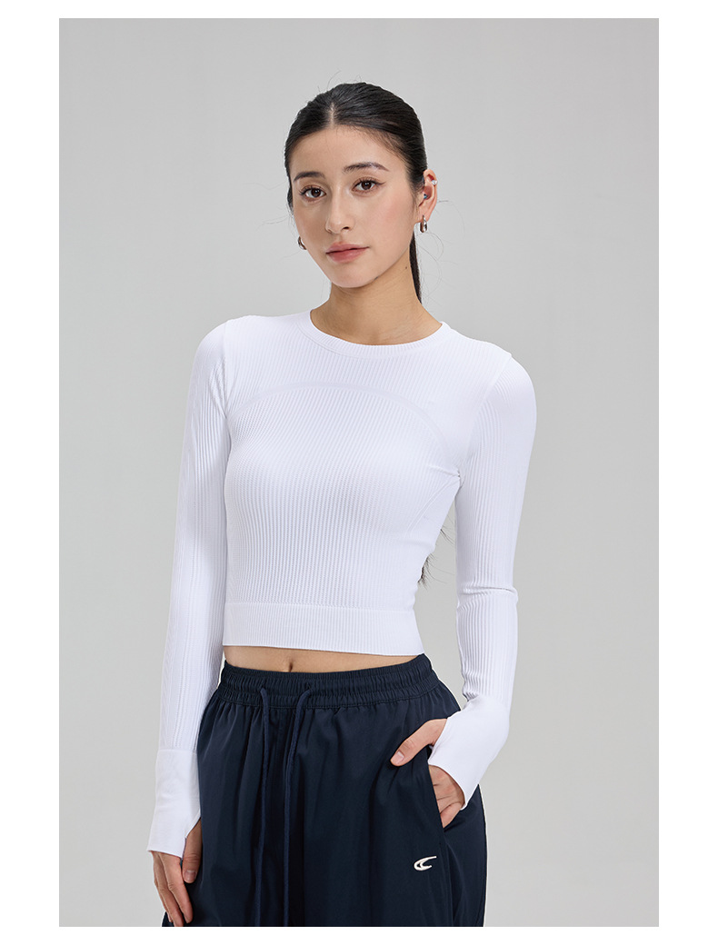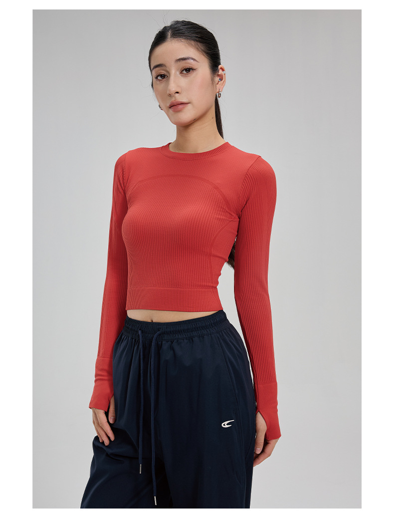 【路路精选】瑜伽上衣健身服女长袖运动背心修身速干瑜伽服户外华夫格紧身无胸垫