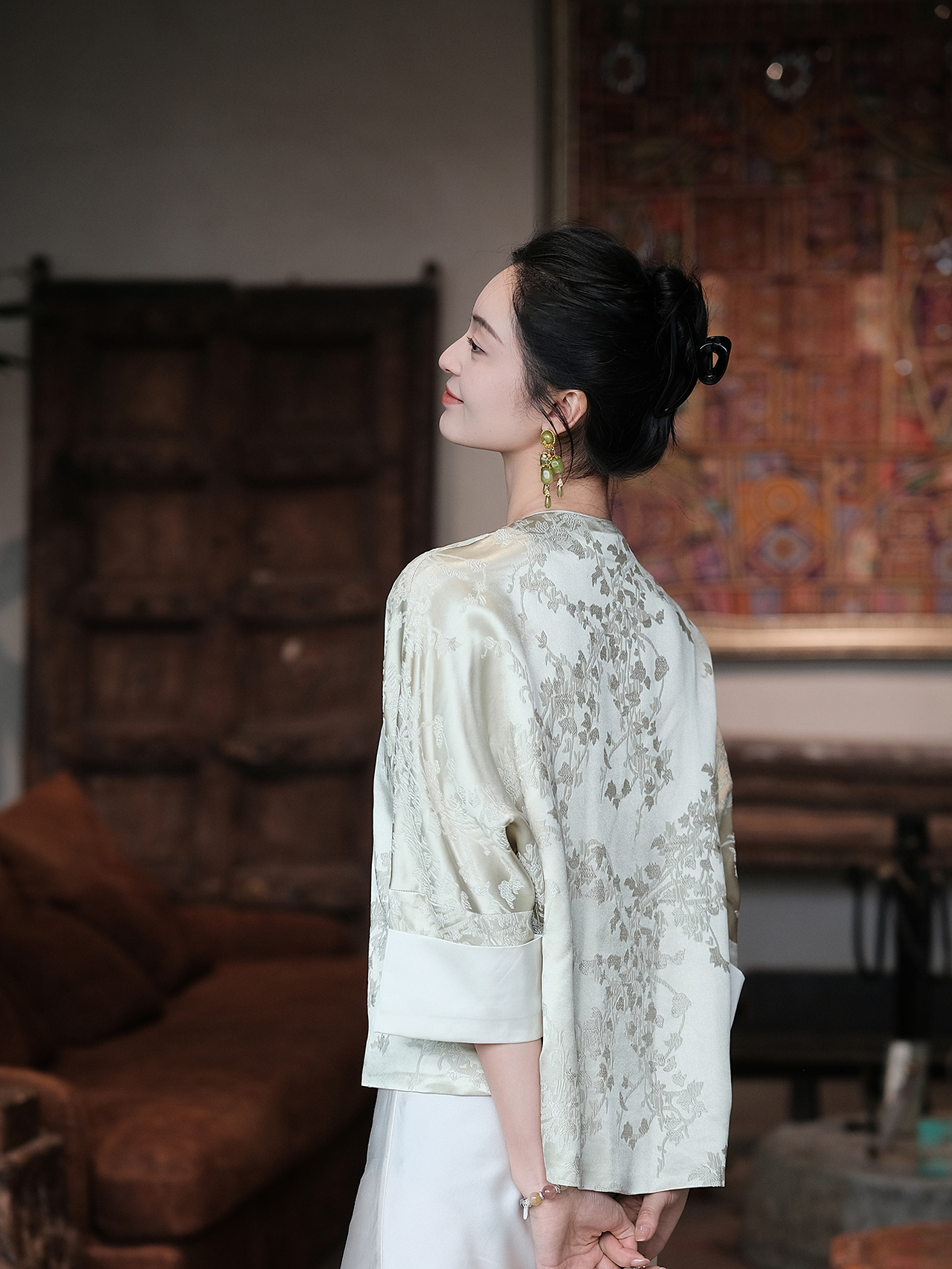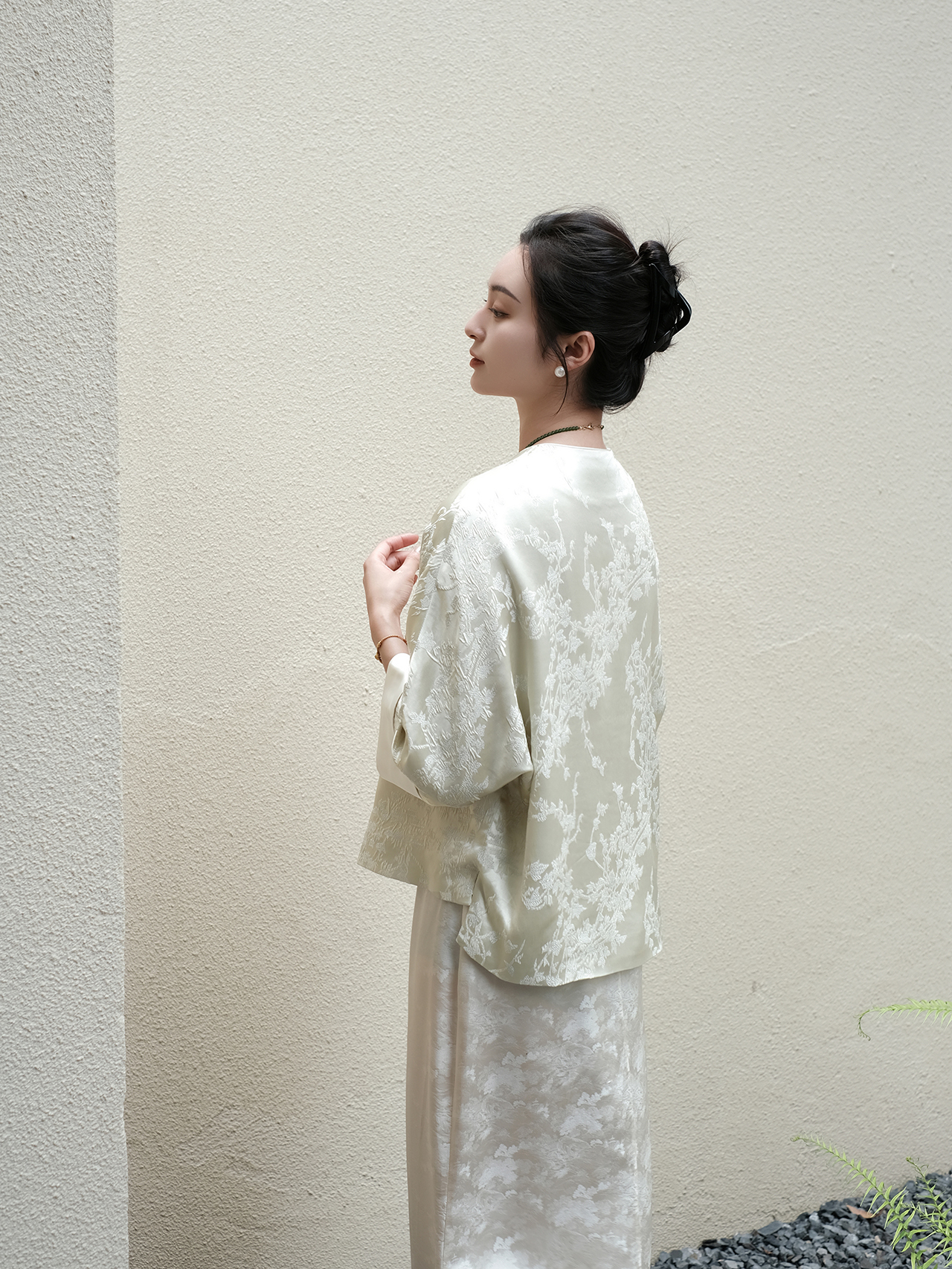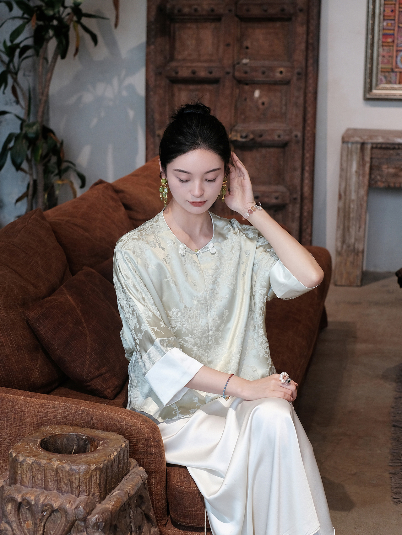 盛唐婧 |淡翠绿国风提花上衣[特价品]