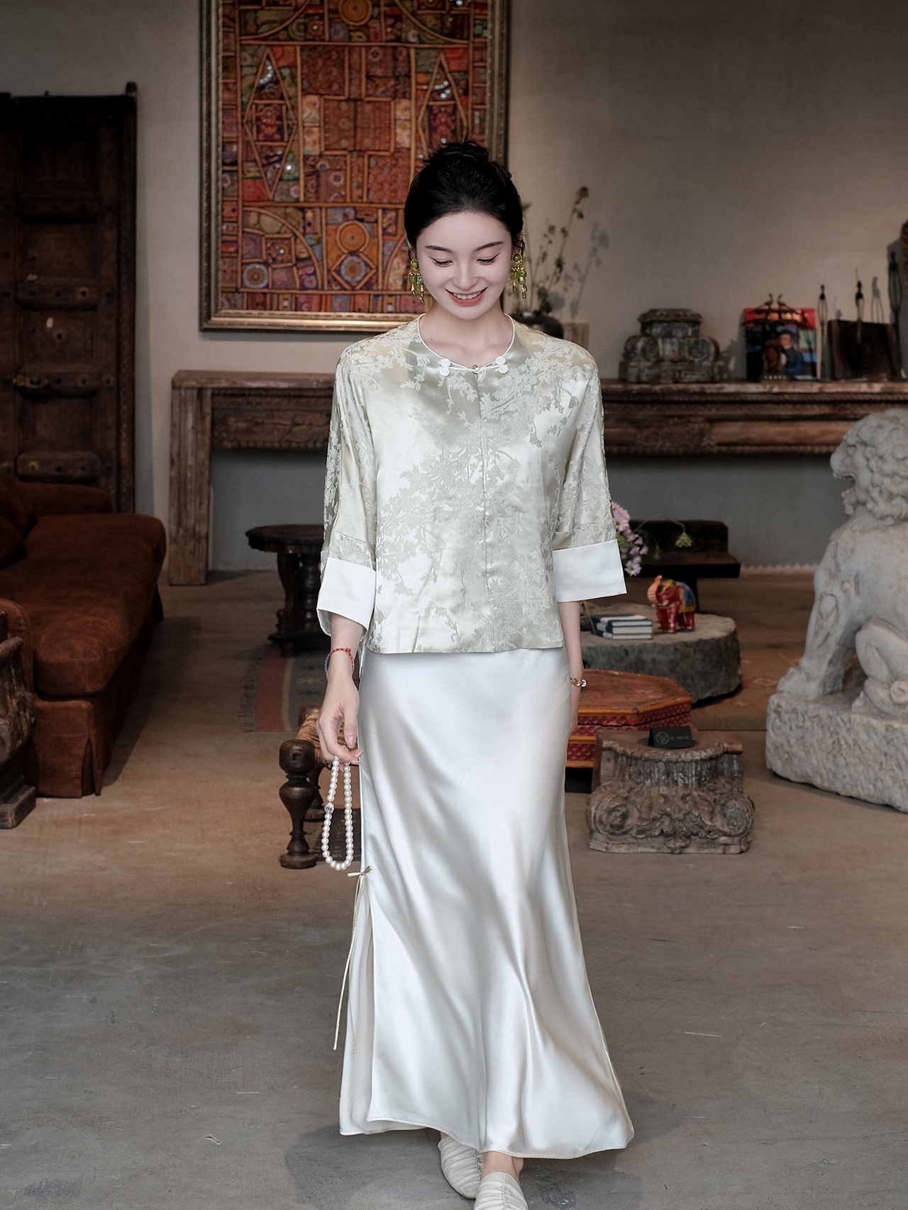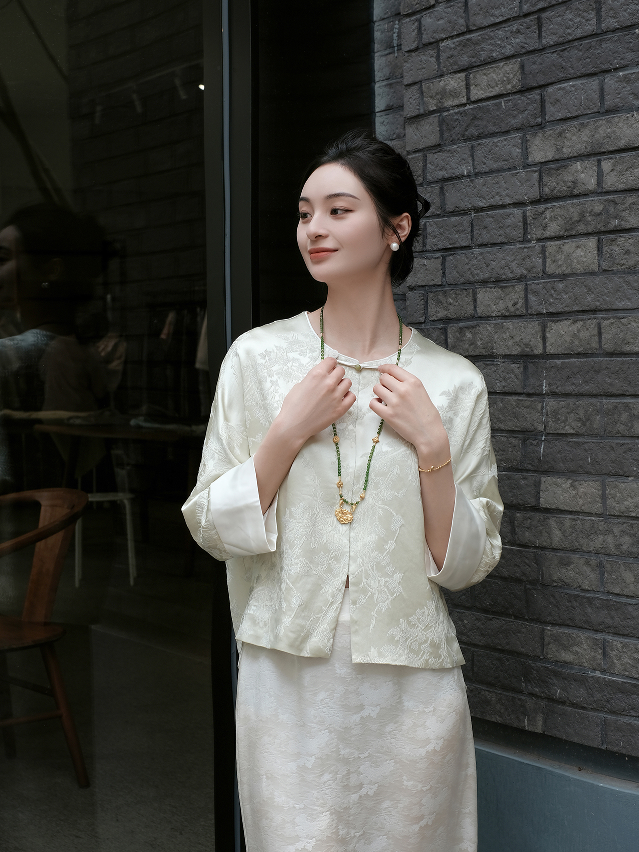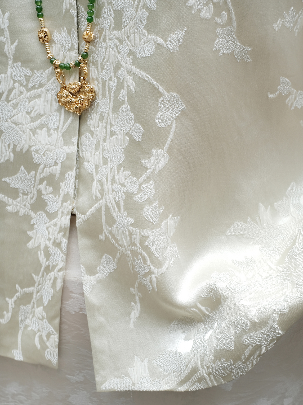 盛唐婧 |淡翠绿国风提花上衣[特价品]