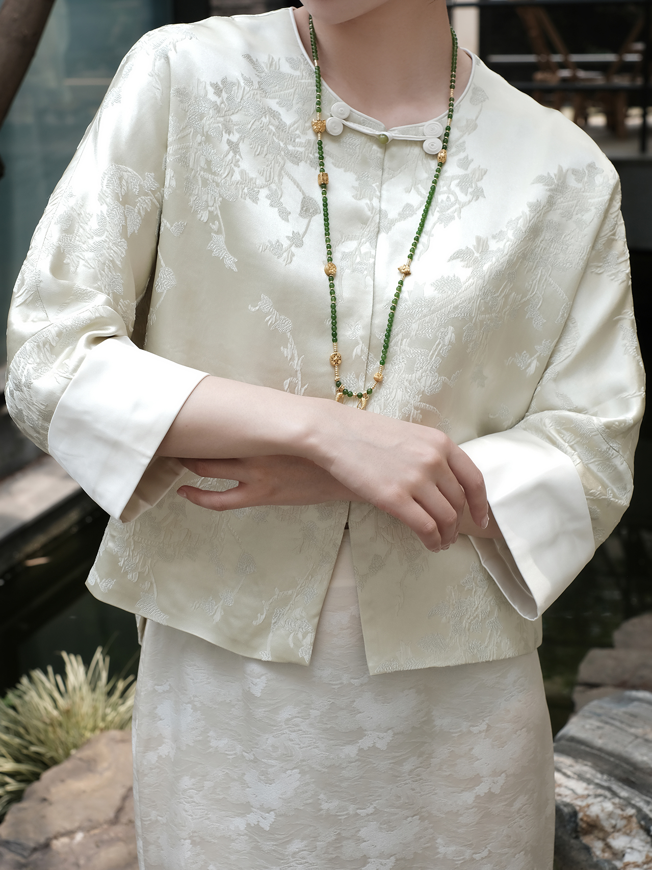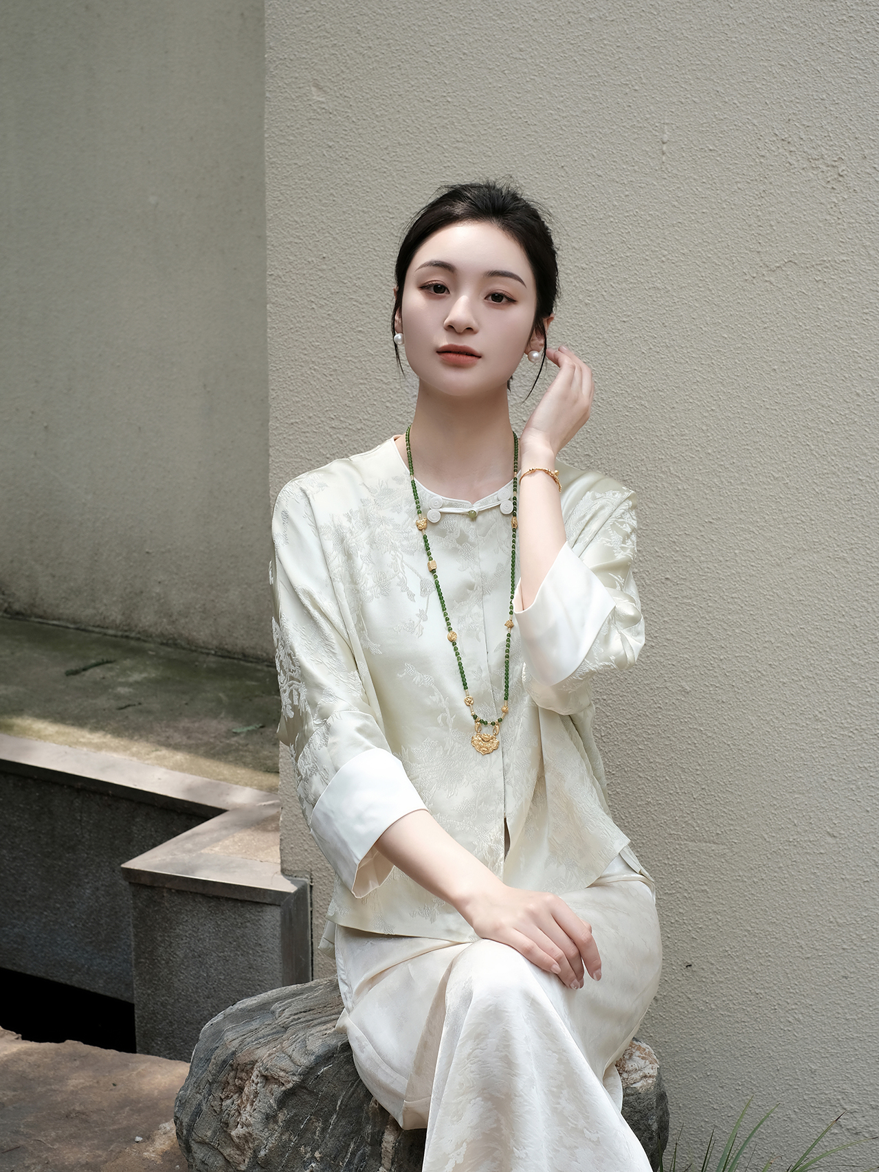 盛唐牡丹 | 真丝绸缎圆领上衣