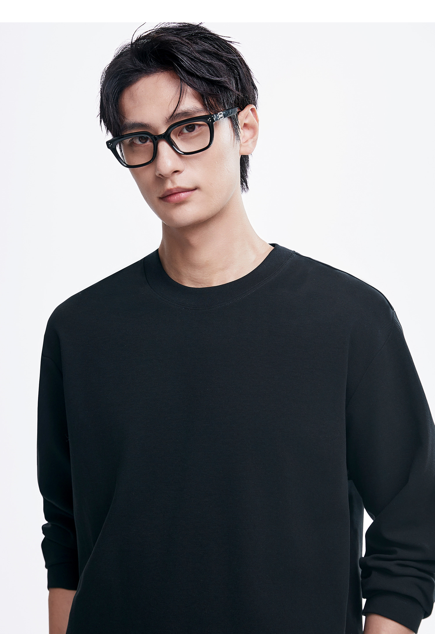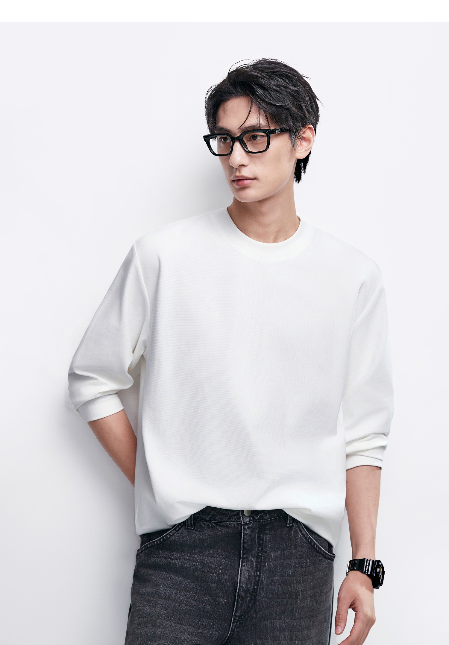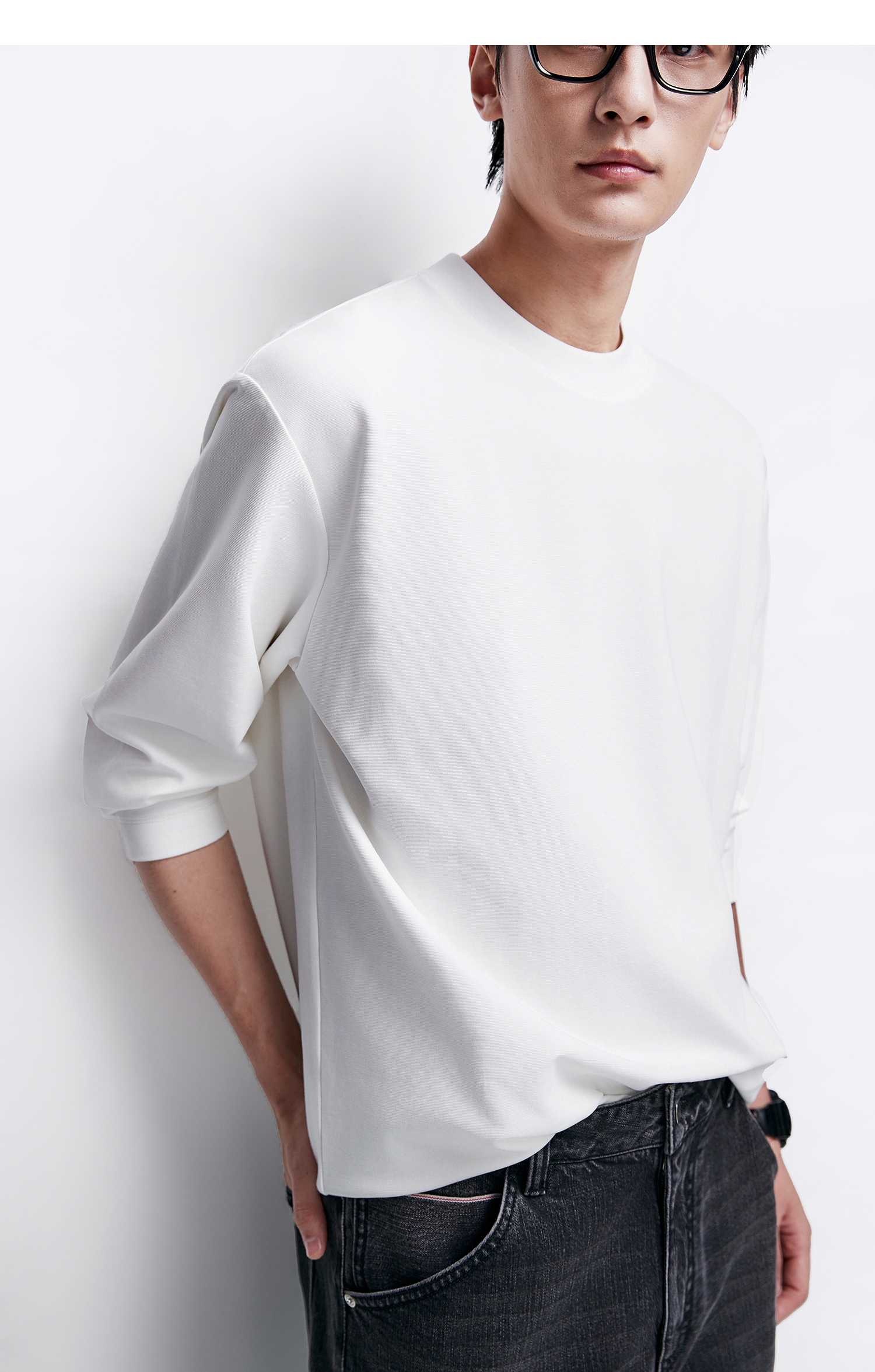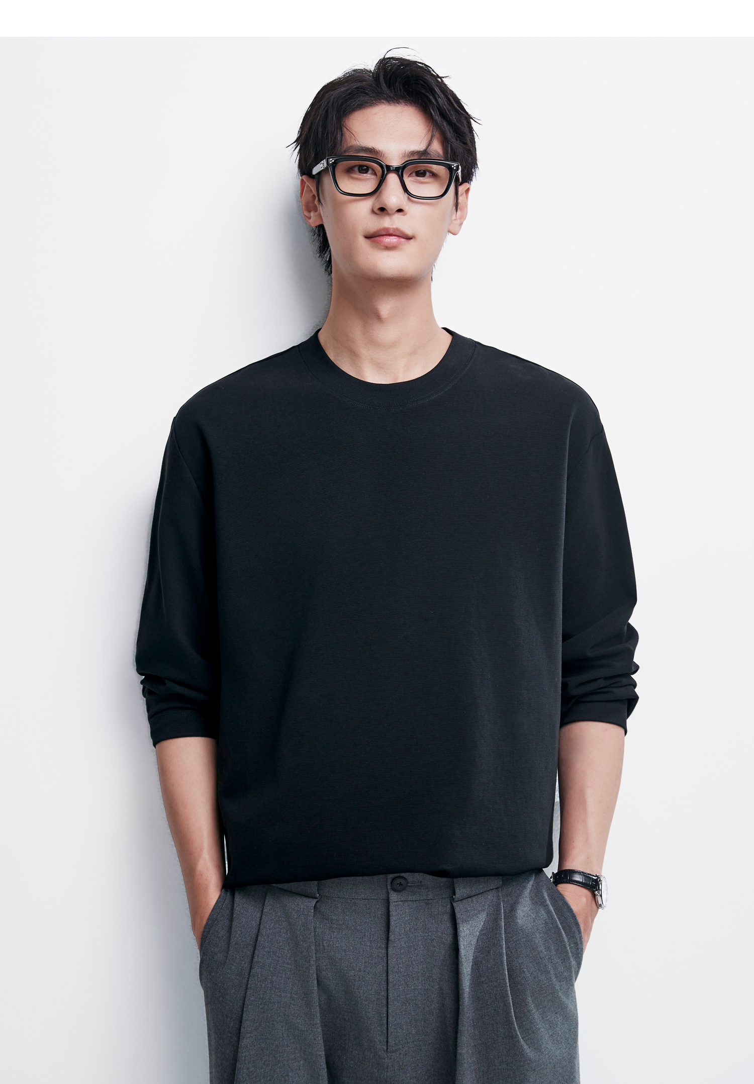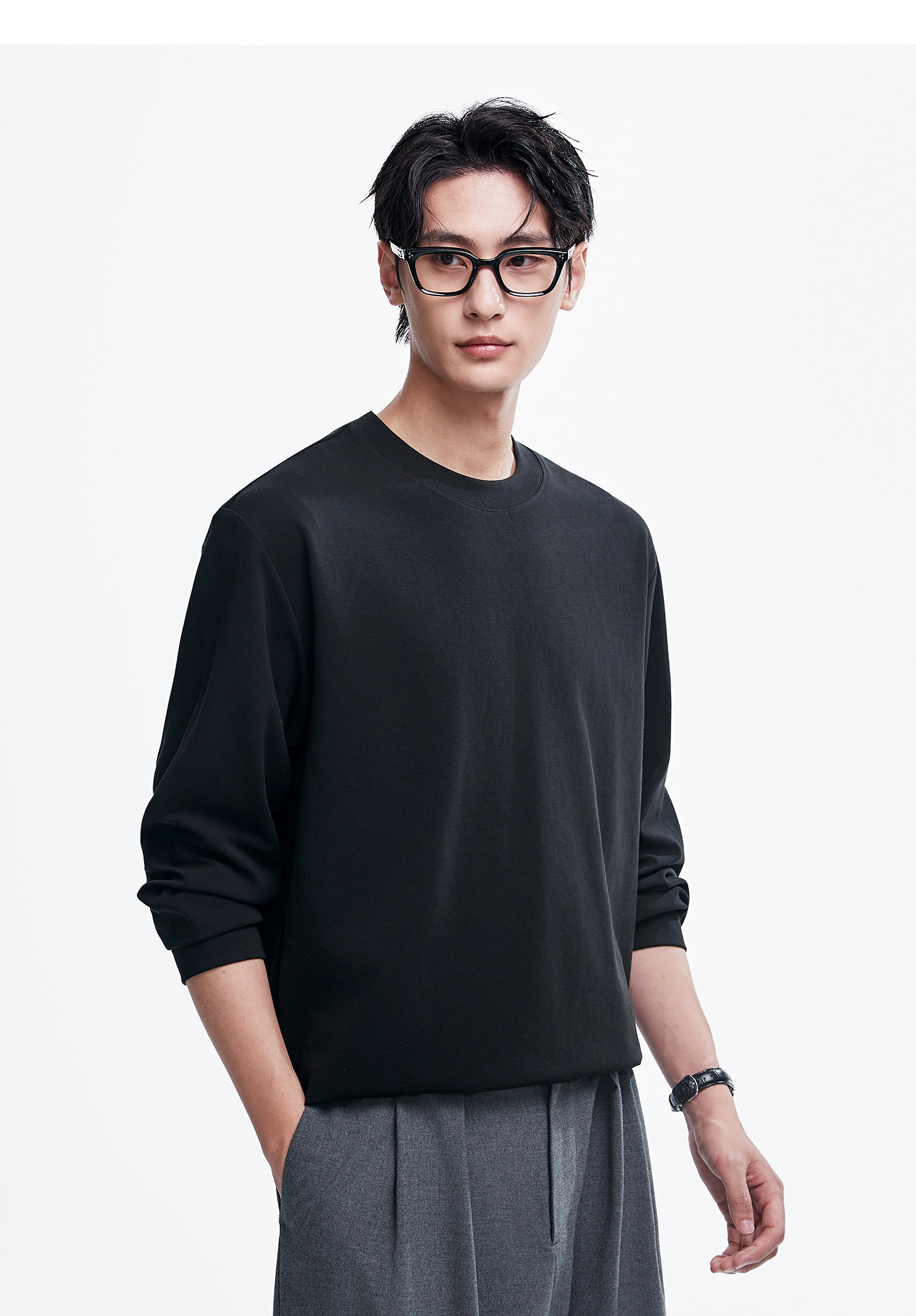 棉仓366801009-重磅波谷纹微宽松长袖T恤