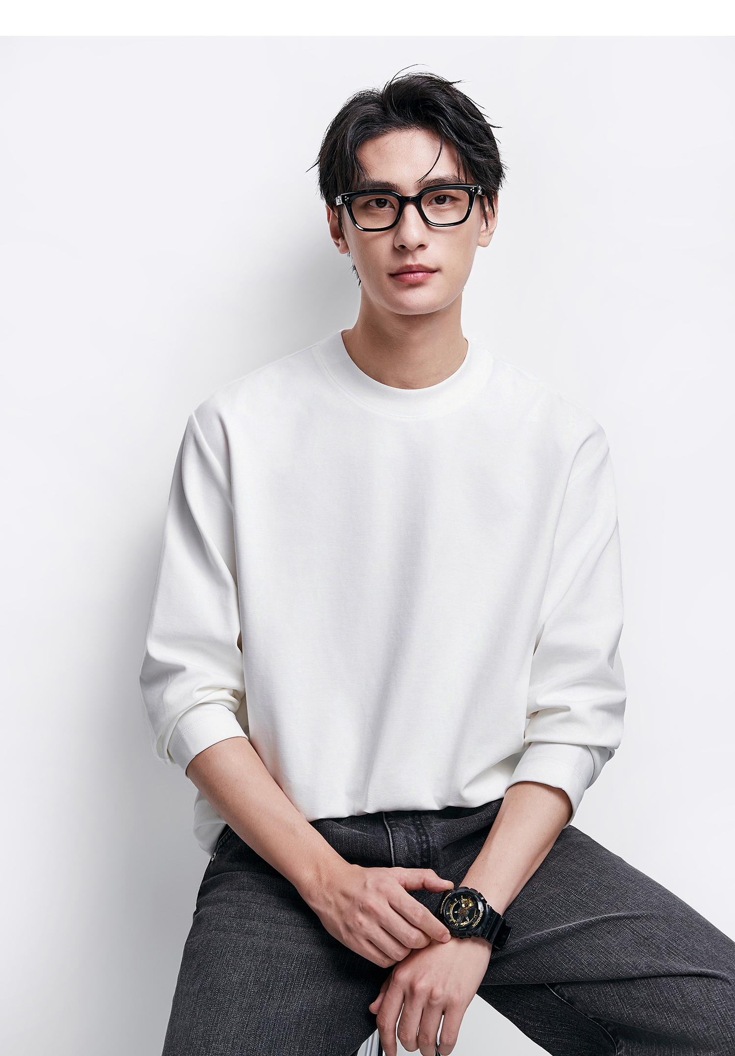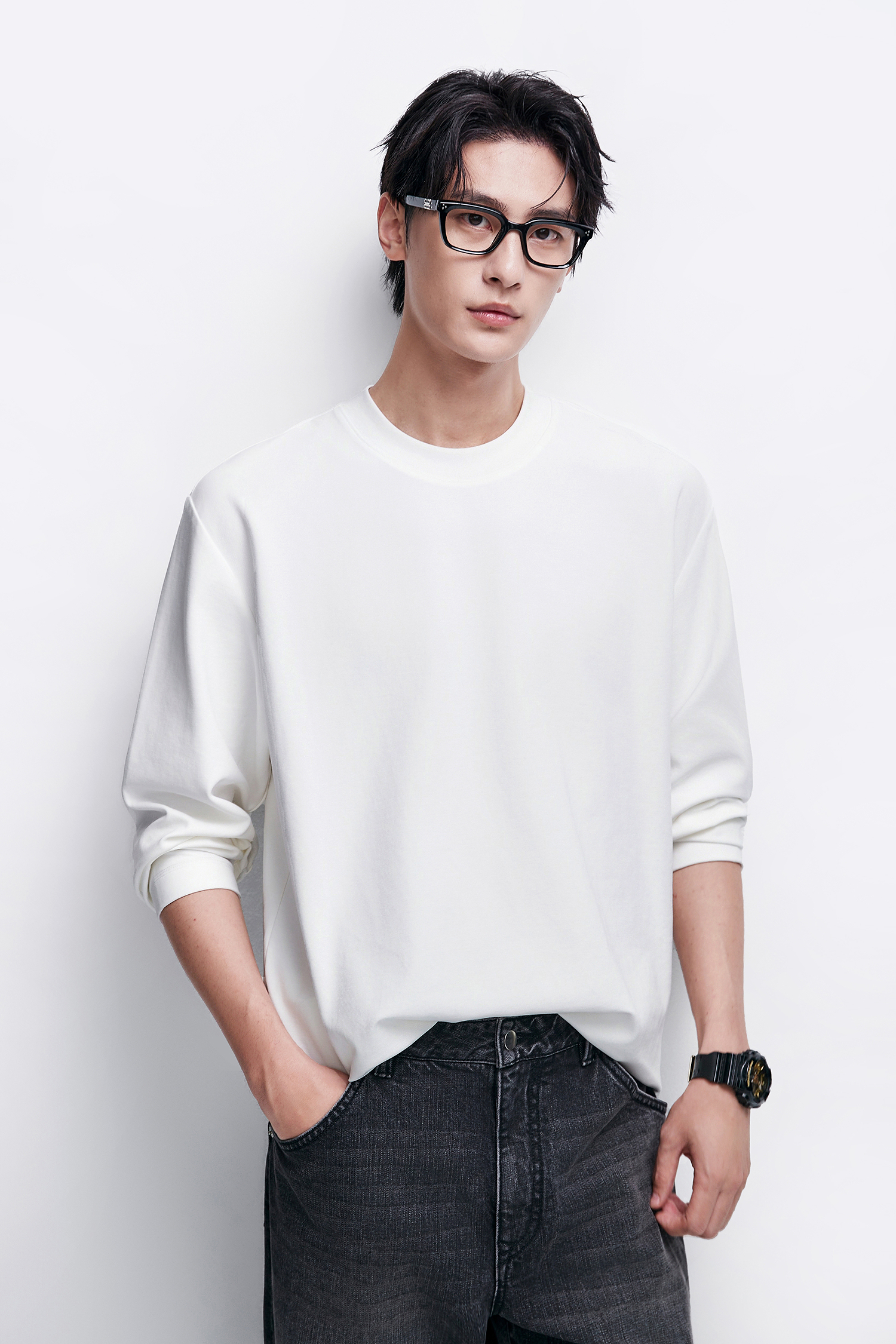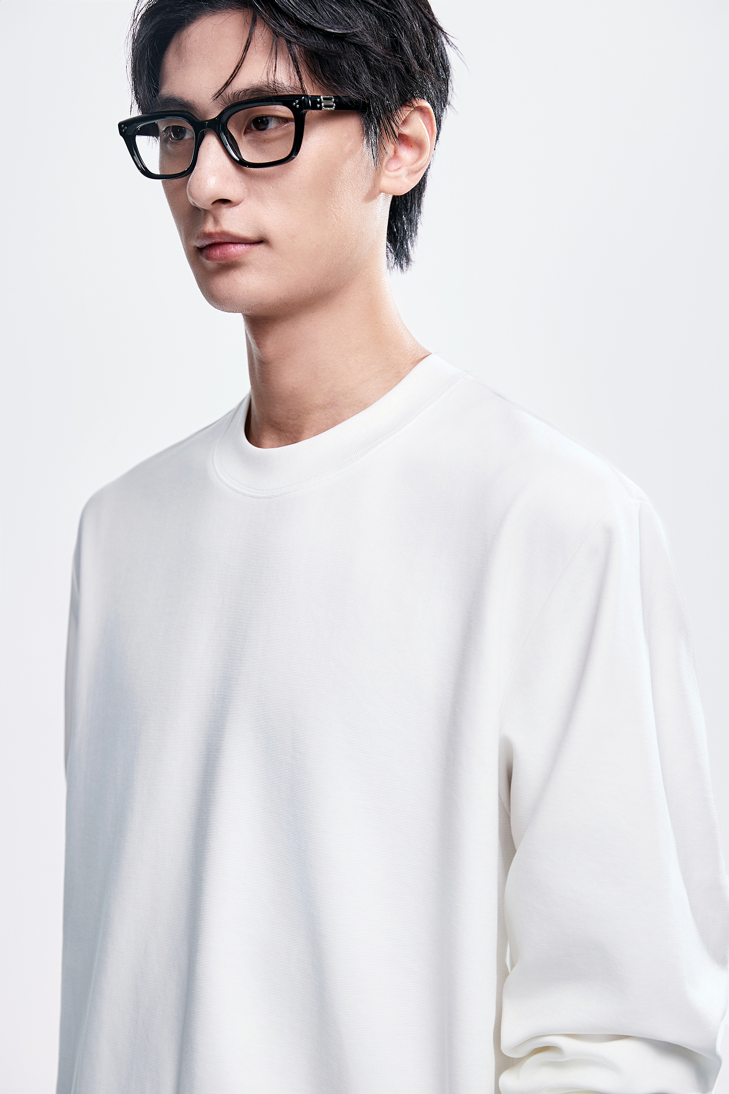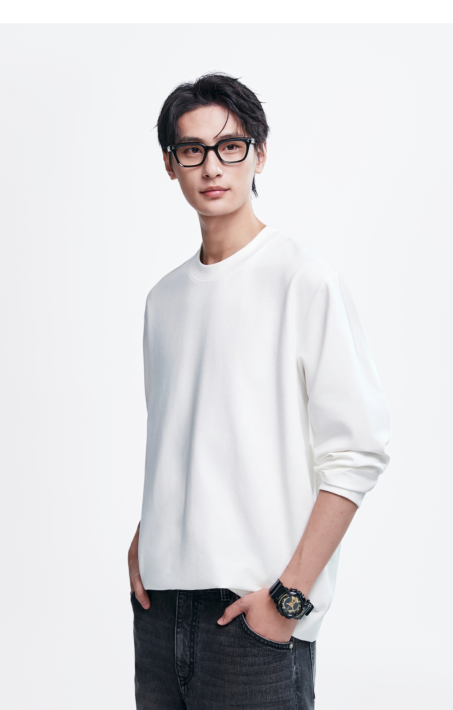 棉仓366801009-重磅波谷纹微宽松长袖T恤