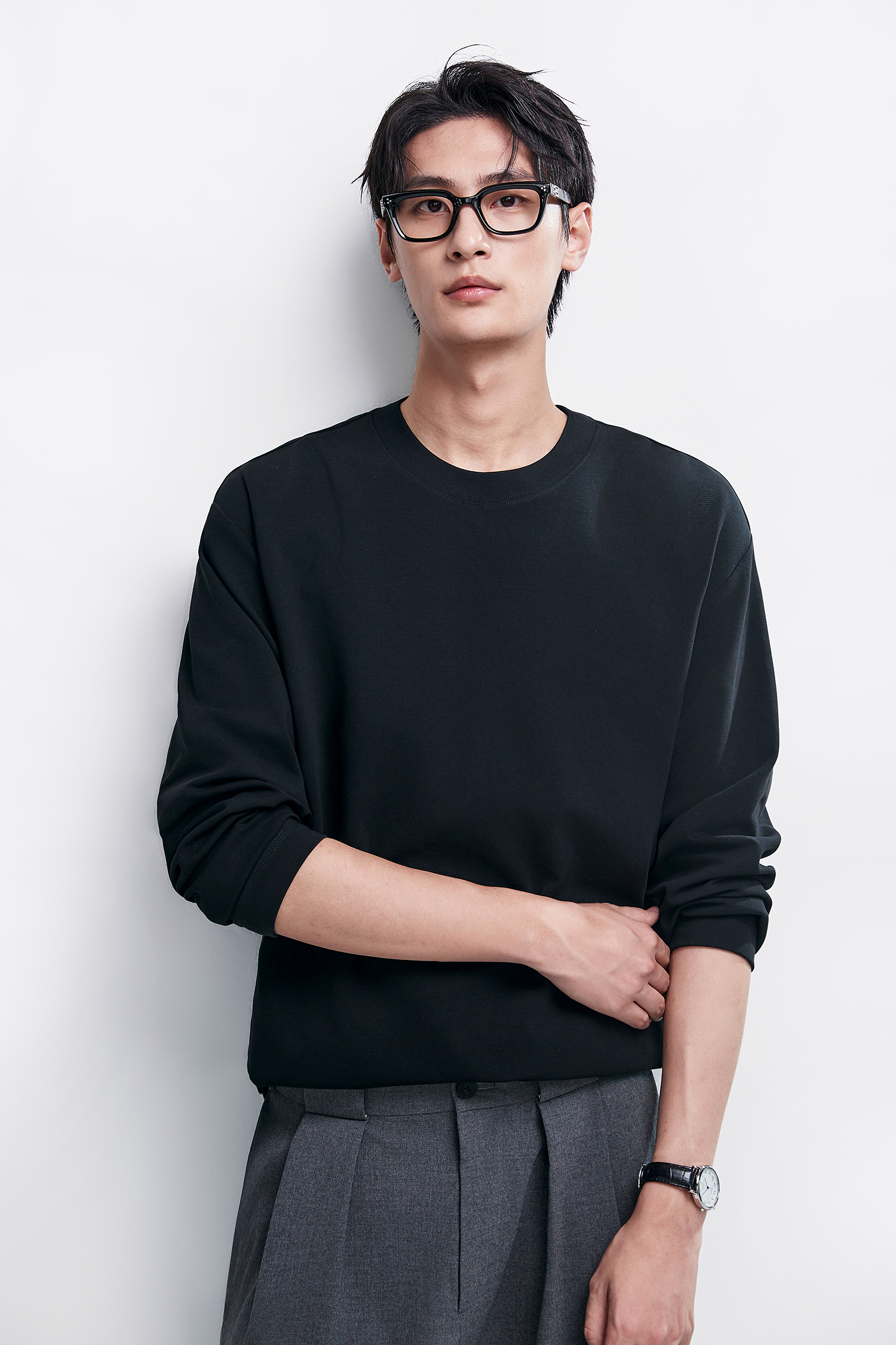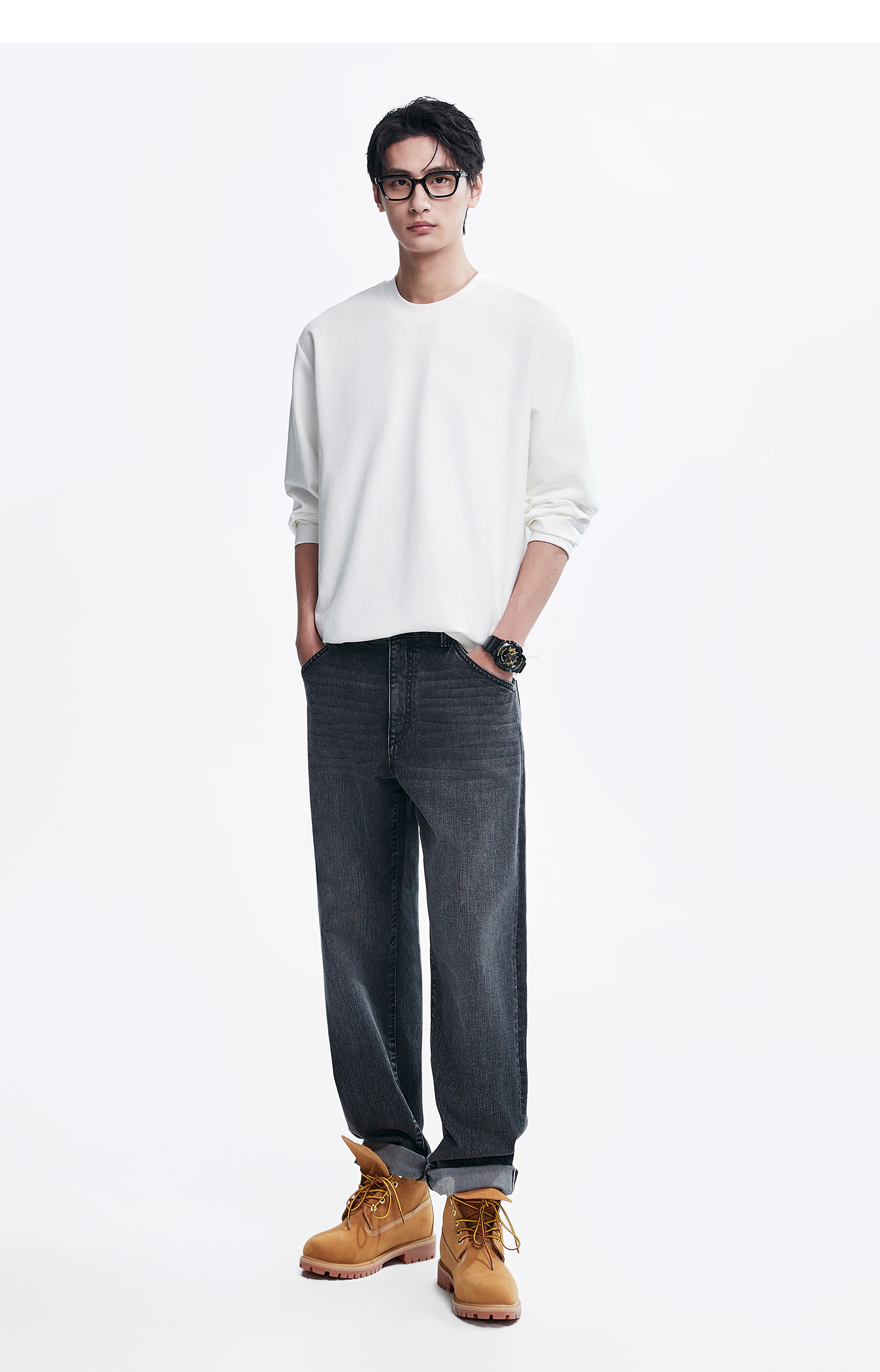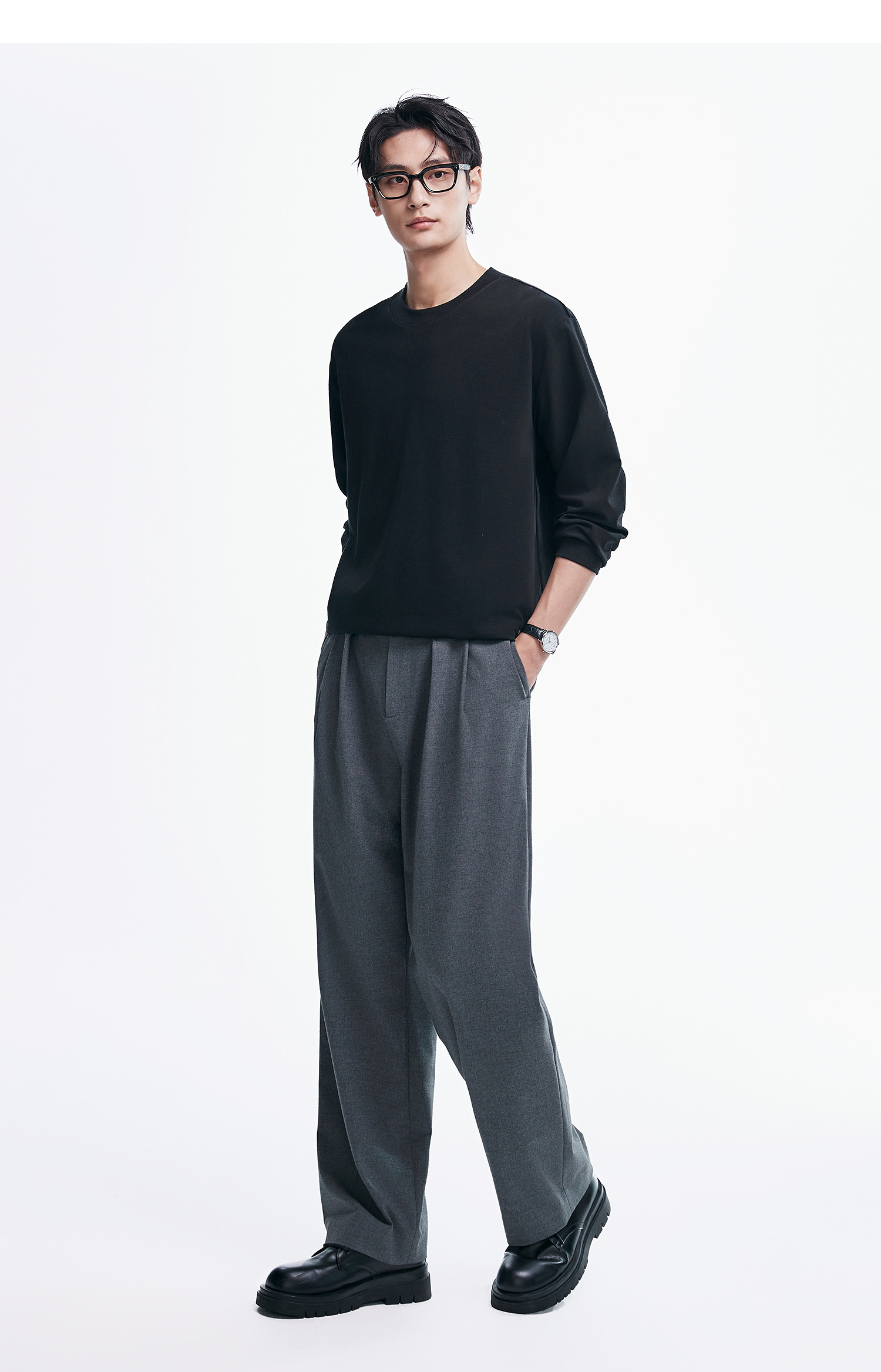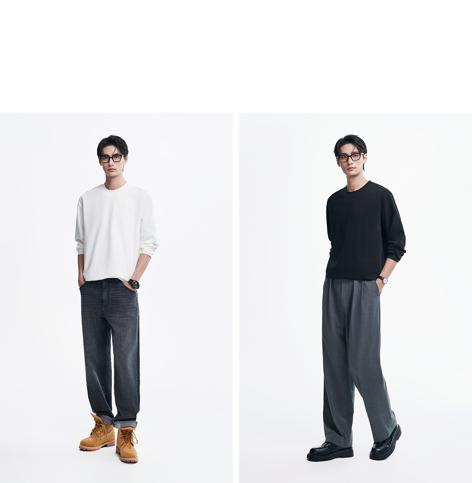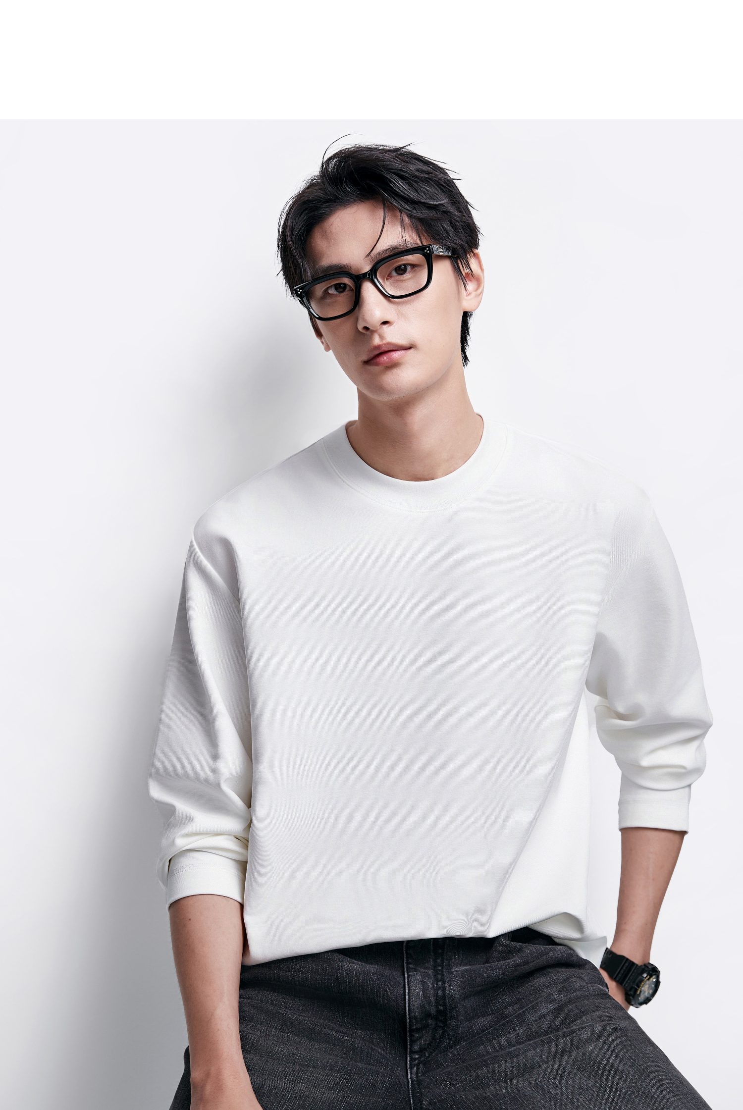 棉仓366801009-重磅波谷纹微宽松长袖T恤