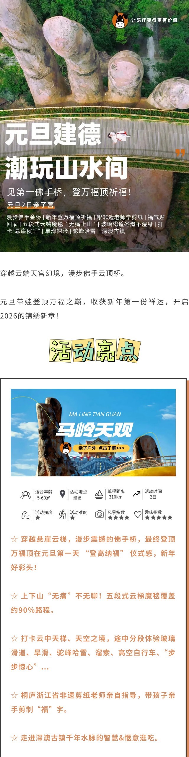 【亲子营】元旦迎新,赴马岭天观云端祈福!佛手托桥,万福顶纳祥福,非遗剪纸贴“福”回家,开启一年好运势!