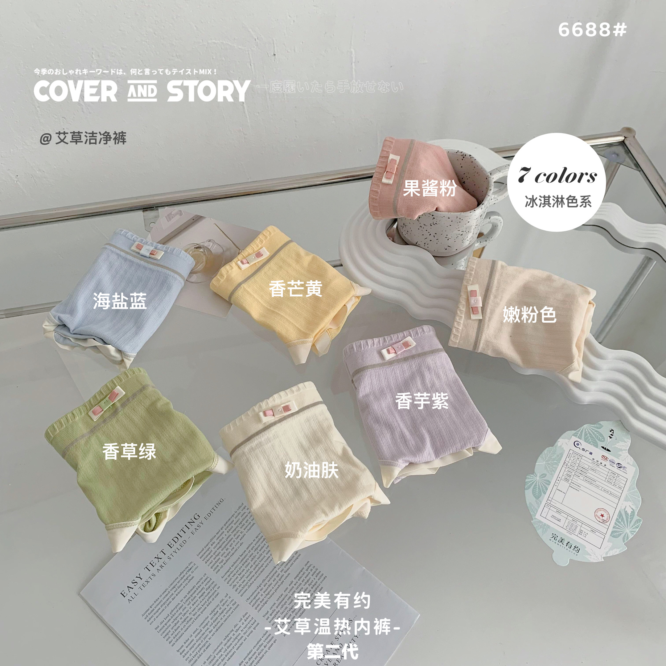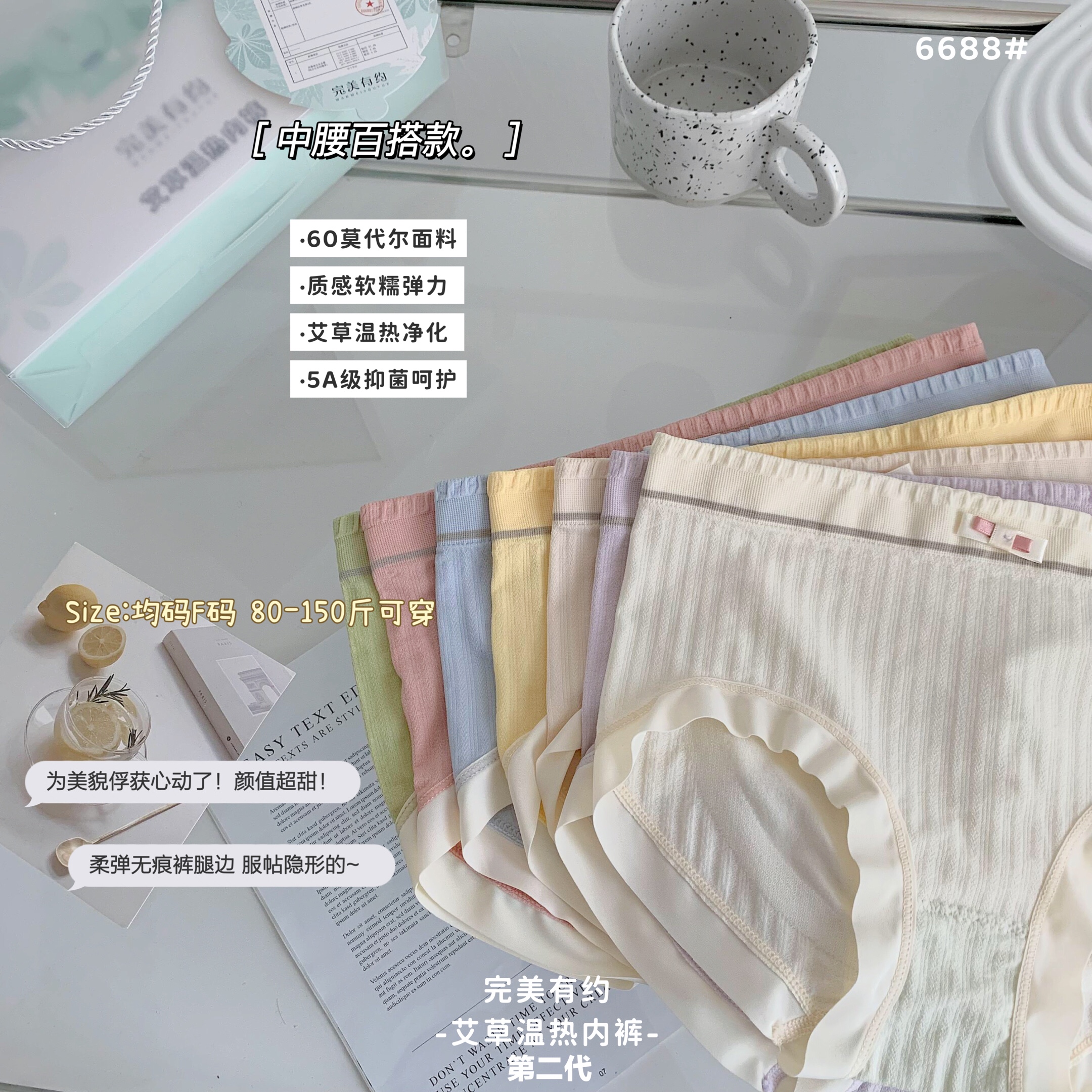 艾草温热内裤高弹性60支莫代尔 5A级抗箘 中腰百搭无痕隐形 甜甜软软の冰淇淋色系7条礼盒装