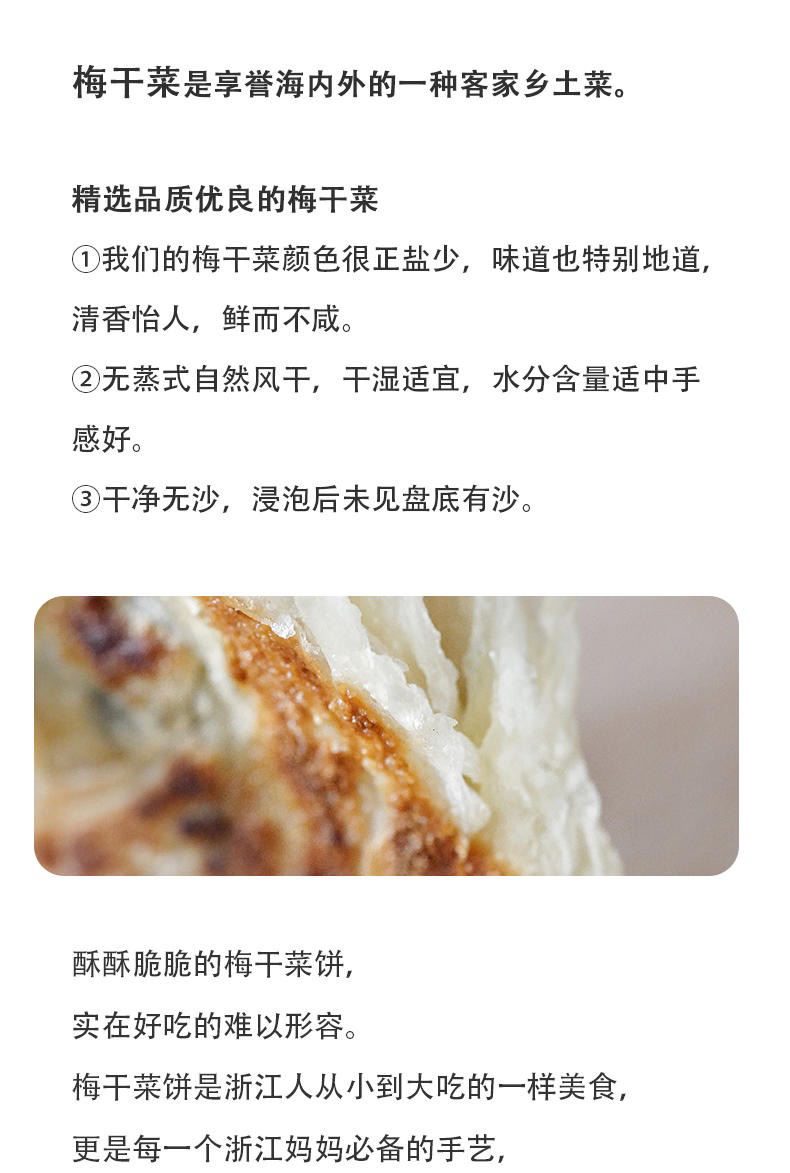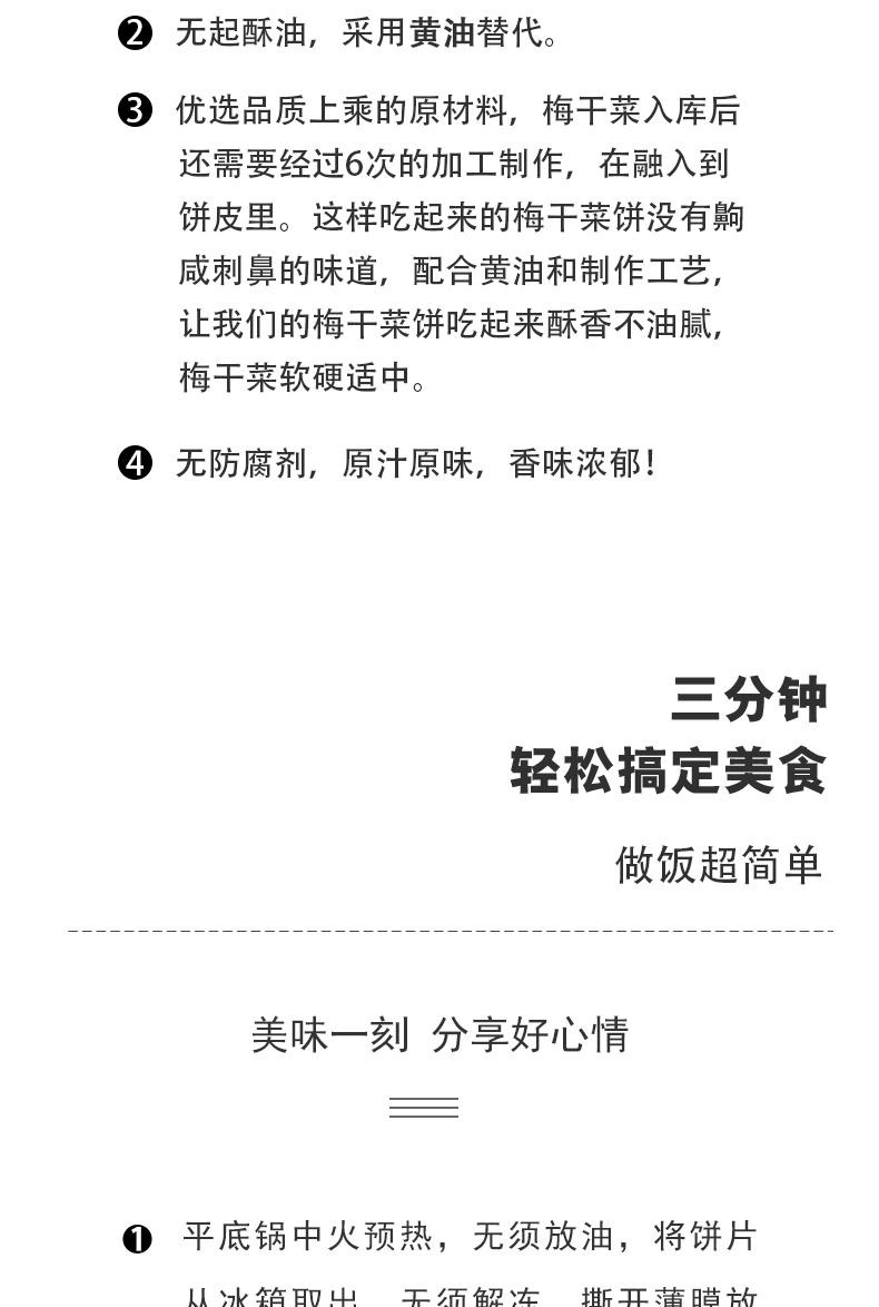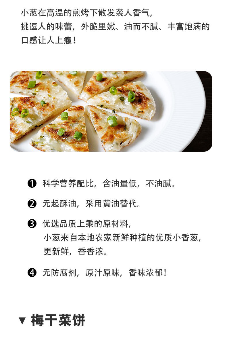 5、葱油饼里的葱,梅干菜里的梅干菜,主要起到调味作用,而非馅料,所以请勿以葱或梅干菜太少为由要求售后,介意者勿拍哦!