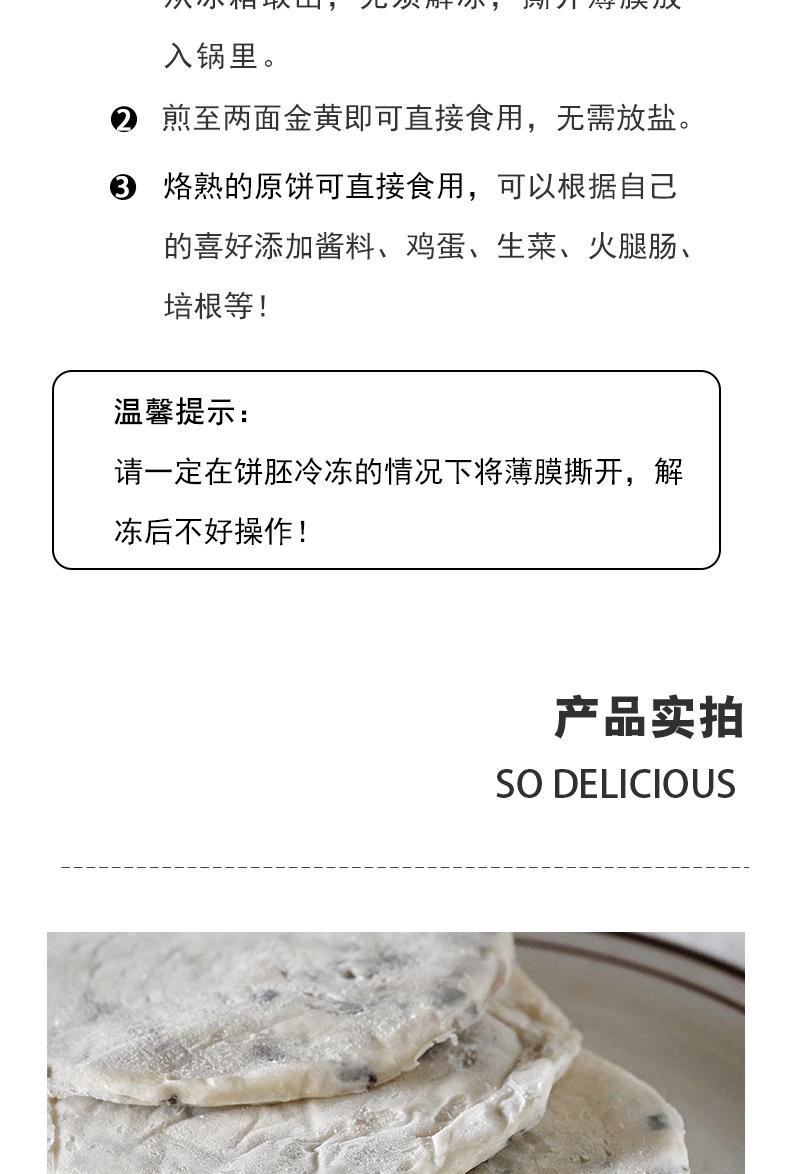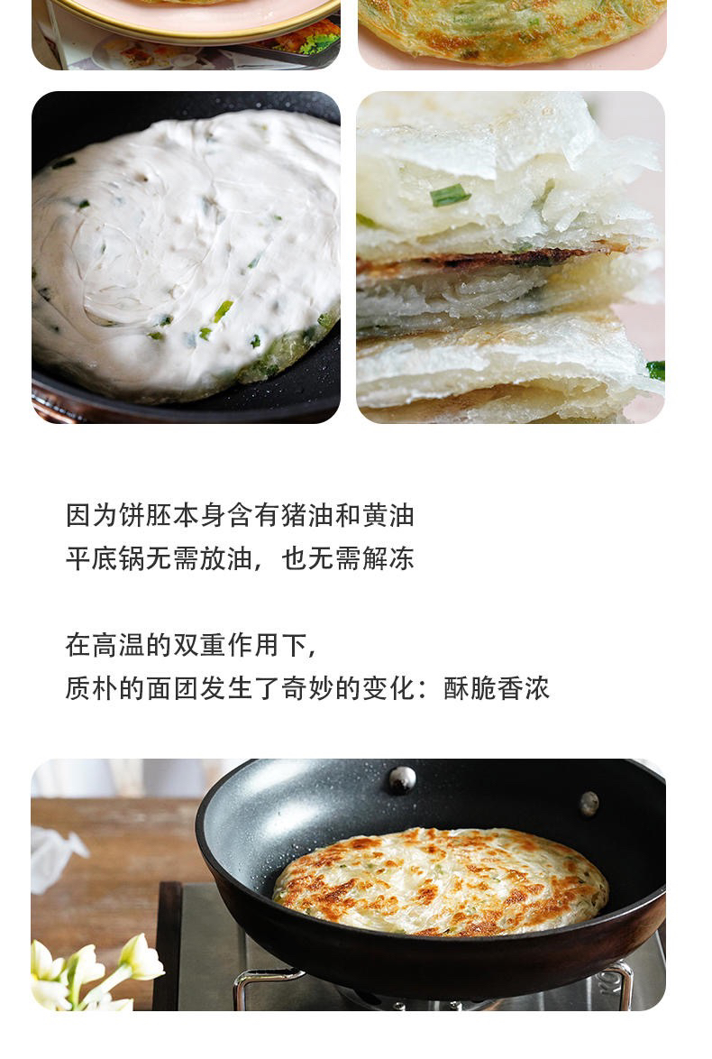 2、葱油饼或梅干菜饼均是生胚制品,需煎熟后食用!从冰箱冷冻室拿出,无需解冻直接撕开膜(若解冻了,那层膜就不好撕),也无需放油(因饼的原材料里有黄油和食用油),放入平底锅煎熟即可。因为比手抓饼厚实一些,所以要稍微煎久一点。
