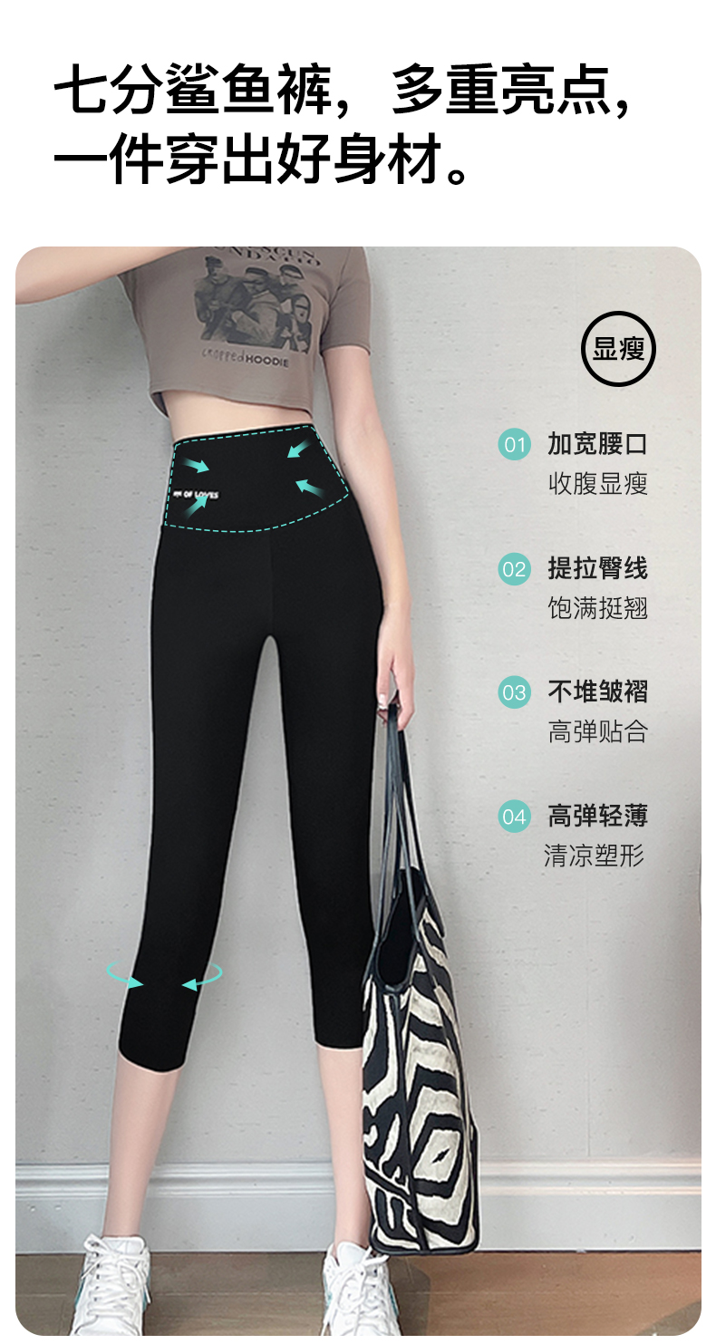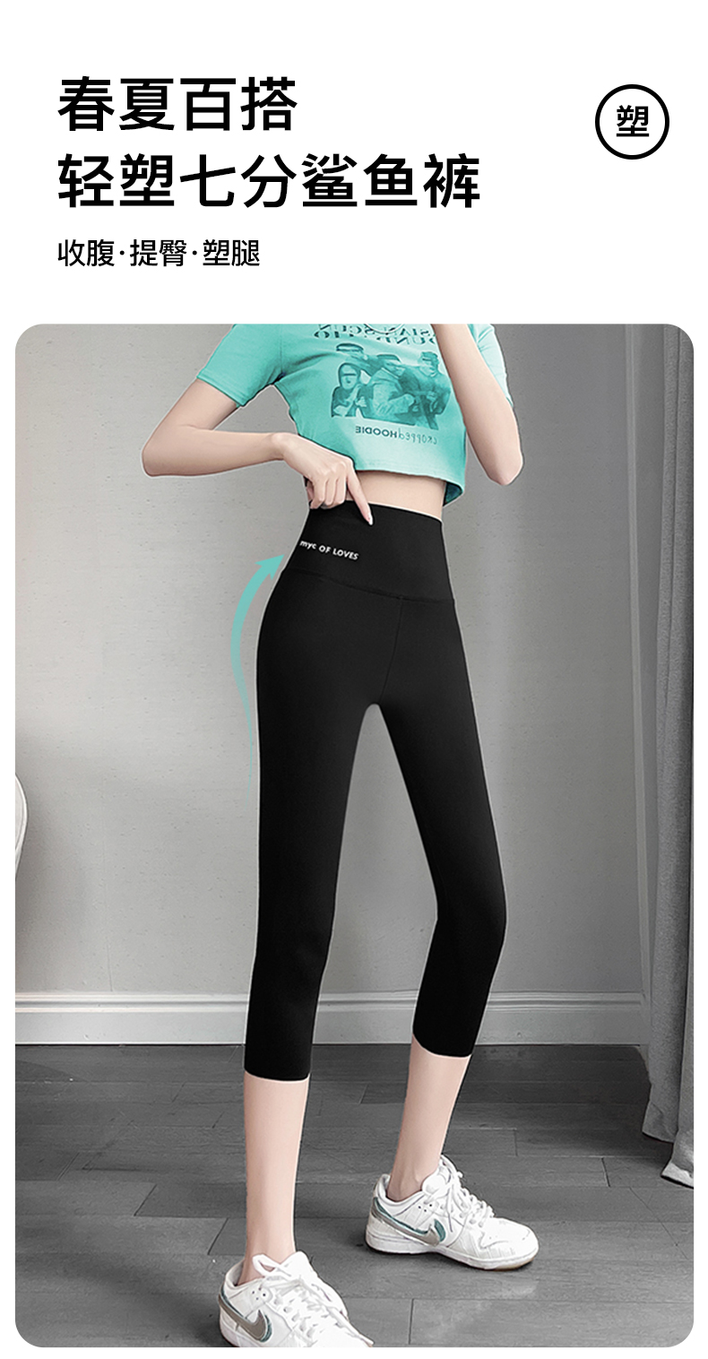 梦芭蒂收腹提臀鲨鱼裤春夏薄款7分打底女裤高腰塑型芭比裤瑜伽裤7分鲨鱼裤7008