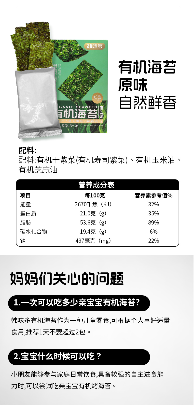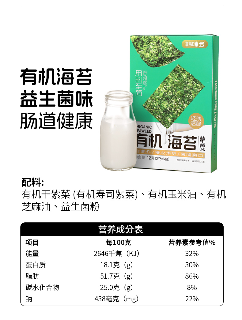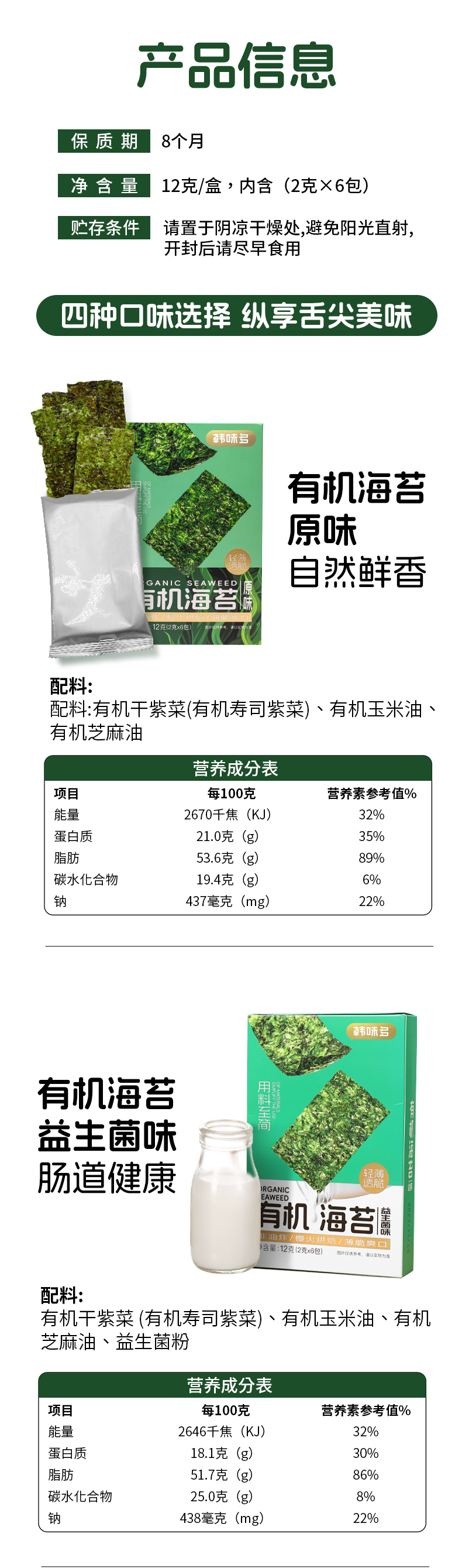 韩味多有机海苔12g*4盒(多口味可选) 厂家直发全国包邮配送(偏远地区除外)
