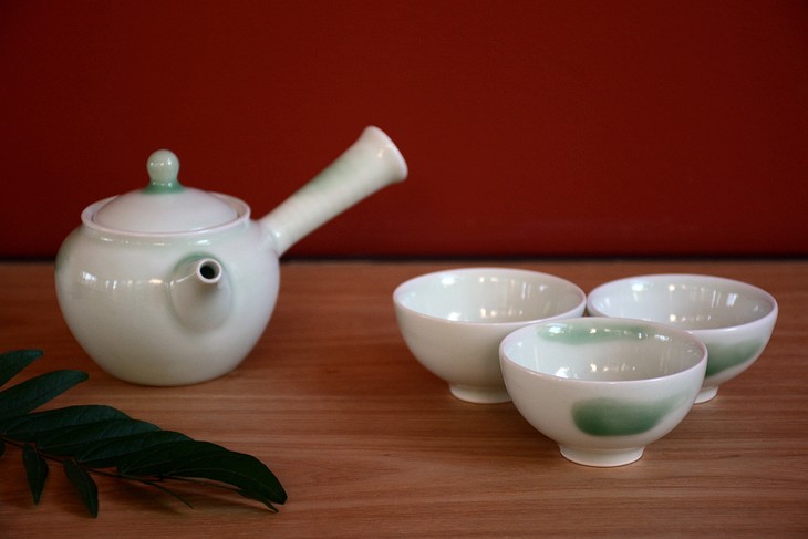2、产品组合:三才盖碗、侧把壶、斗笠杯、碗杯(侧把壶原于唐朝的壶型,原名叫急须壶;斗笠杯源于宋朝,形似斗笠而得名)