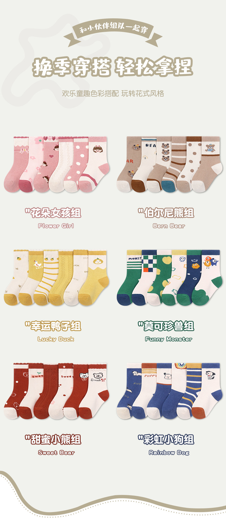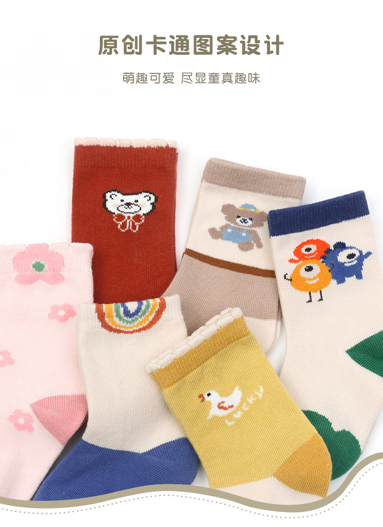 【6双组合装 随心搭配】23秋冬精梳棉男女儿童袜宝宝小中大童潮流袜子批发六双装卡通短袜