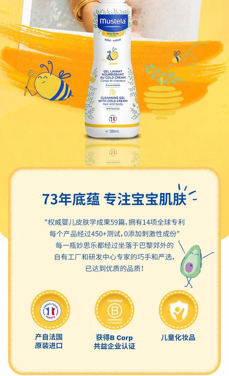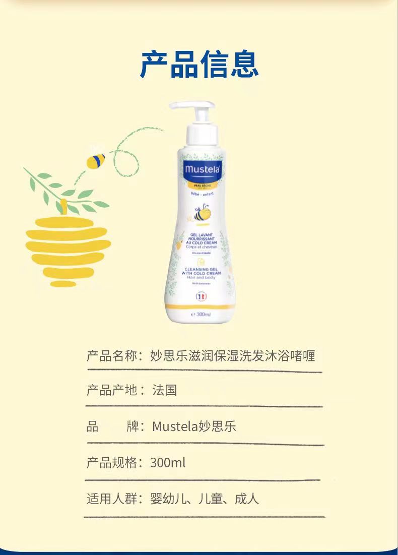 【一般贸易】法国进口妙思乐滋润保湿洗发沐浴二合一啫喱300ml/瓶