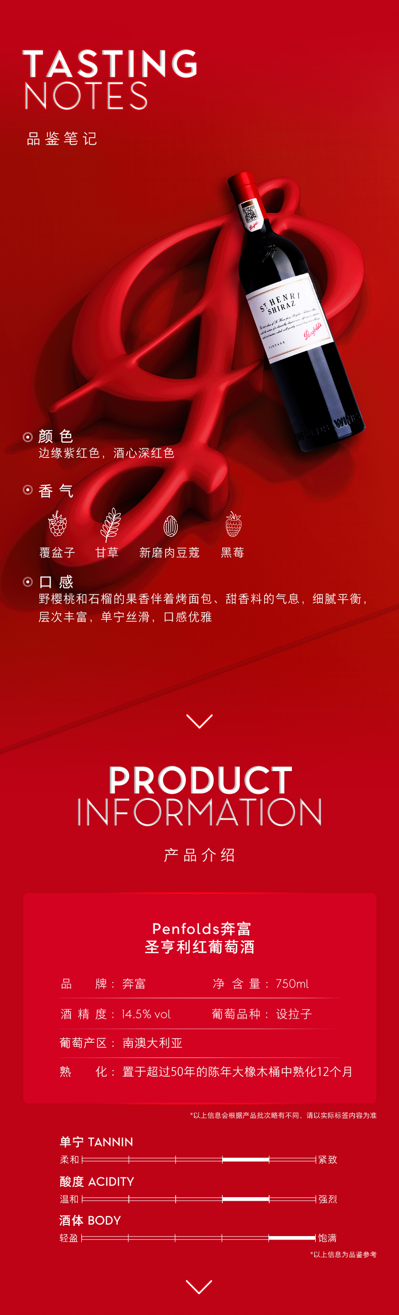 奔富圣亨利设拉子干红葡萄酒750ml 澳洲原瓶进口