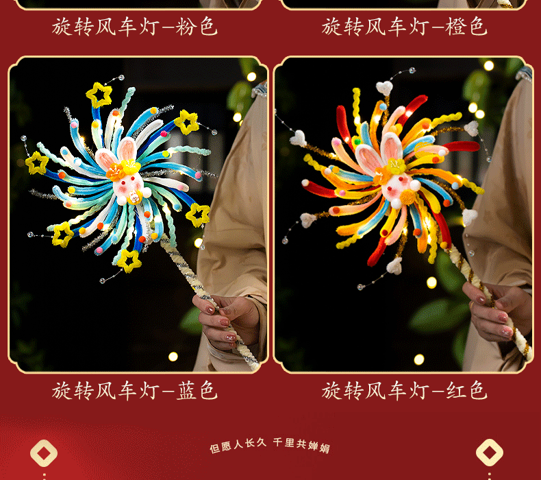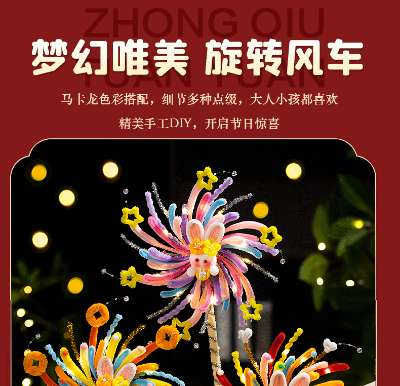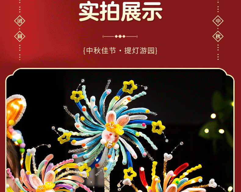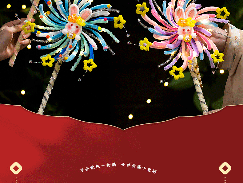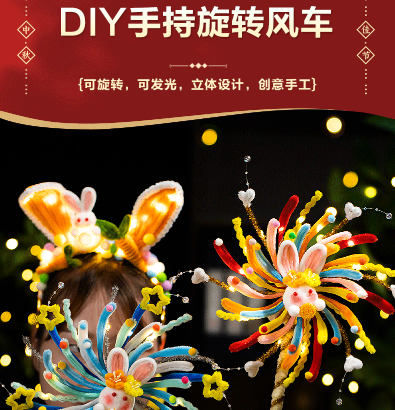 <有书独家>【中秋节灯笼旋转风车】发光灯笼扭扭棒 手工diy材料儿童手提兔子花灯